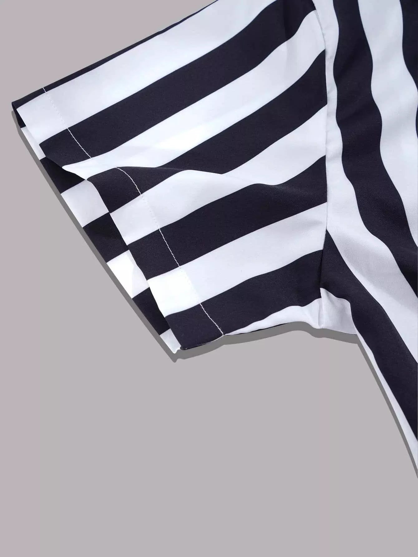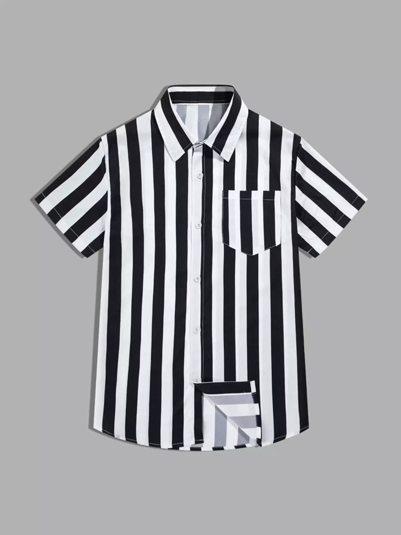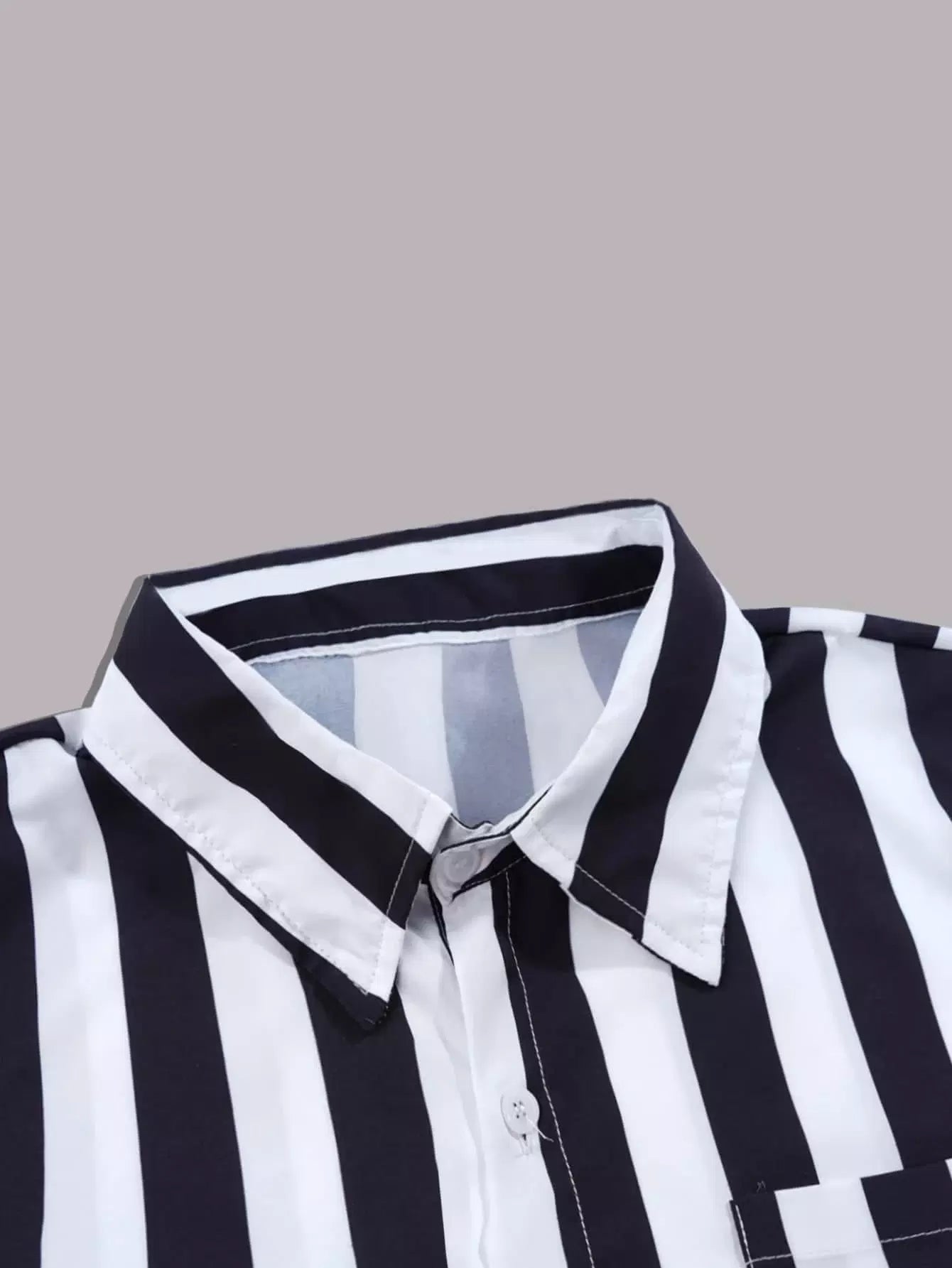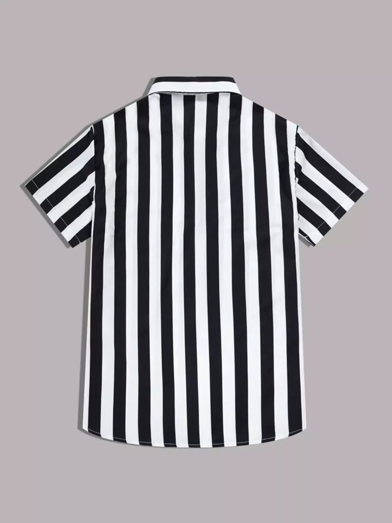 الرجال - قميص رجالي مخطط عموديًا بأزرار