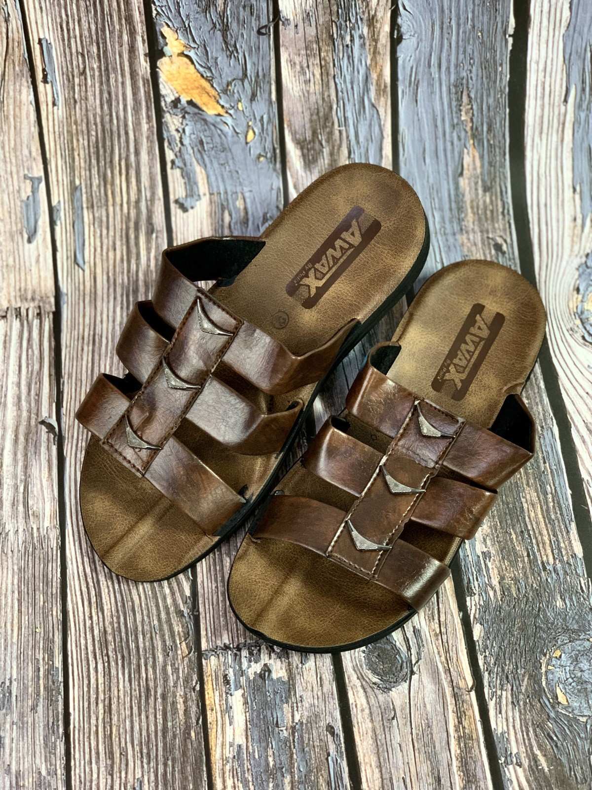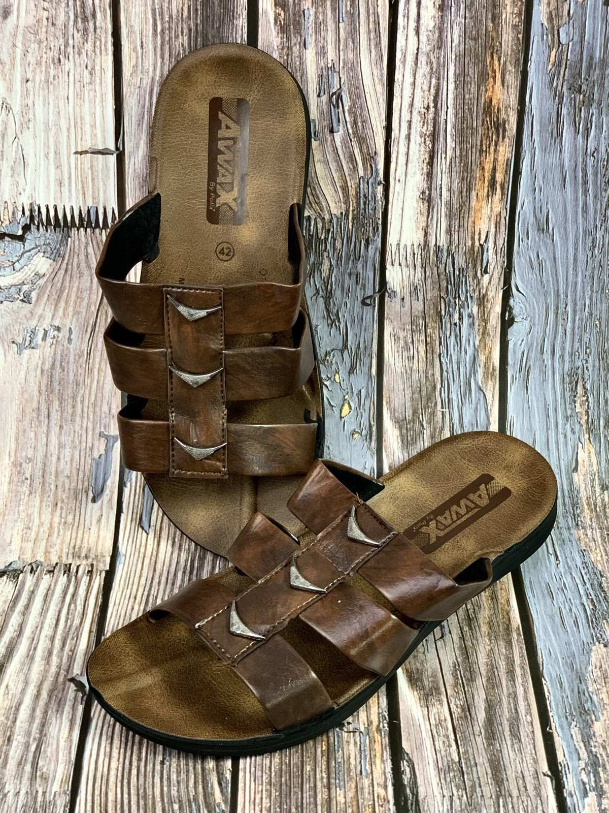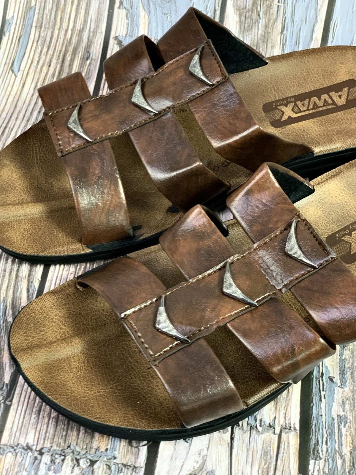 الرجال - شبشب من الجلد باللون البني من شركة أواكس