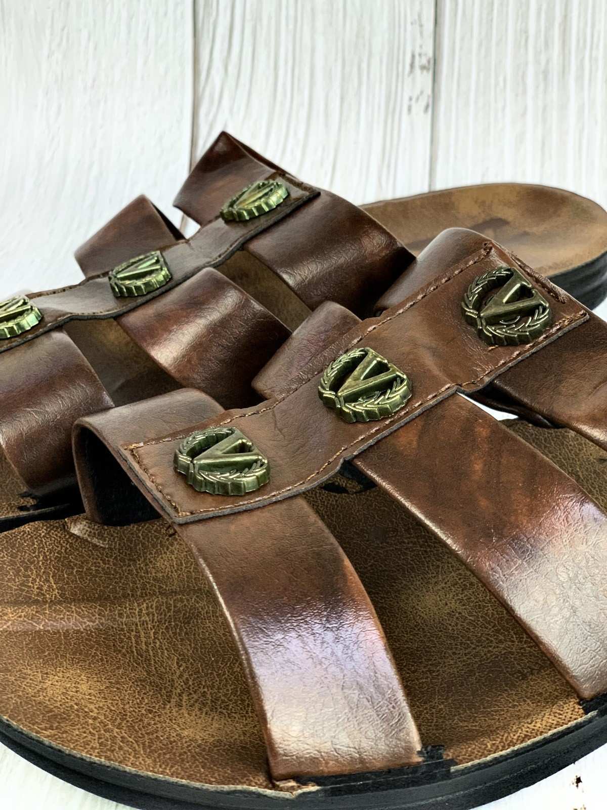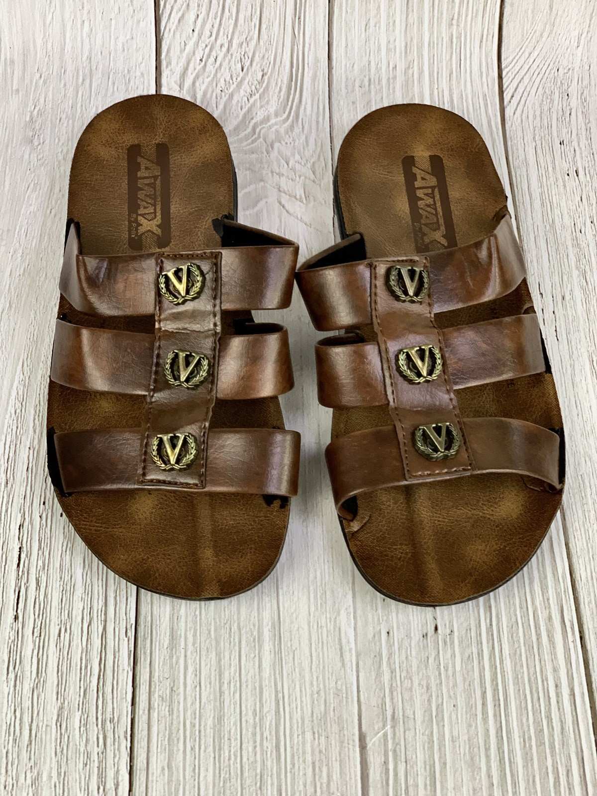 الرجال - شبشب من الجلد باللون البني من شركة أواكس