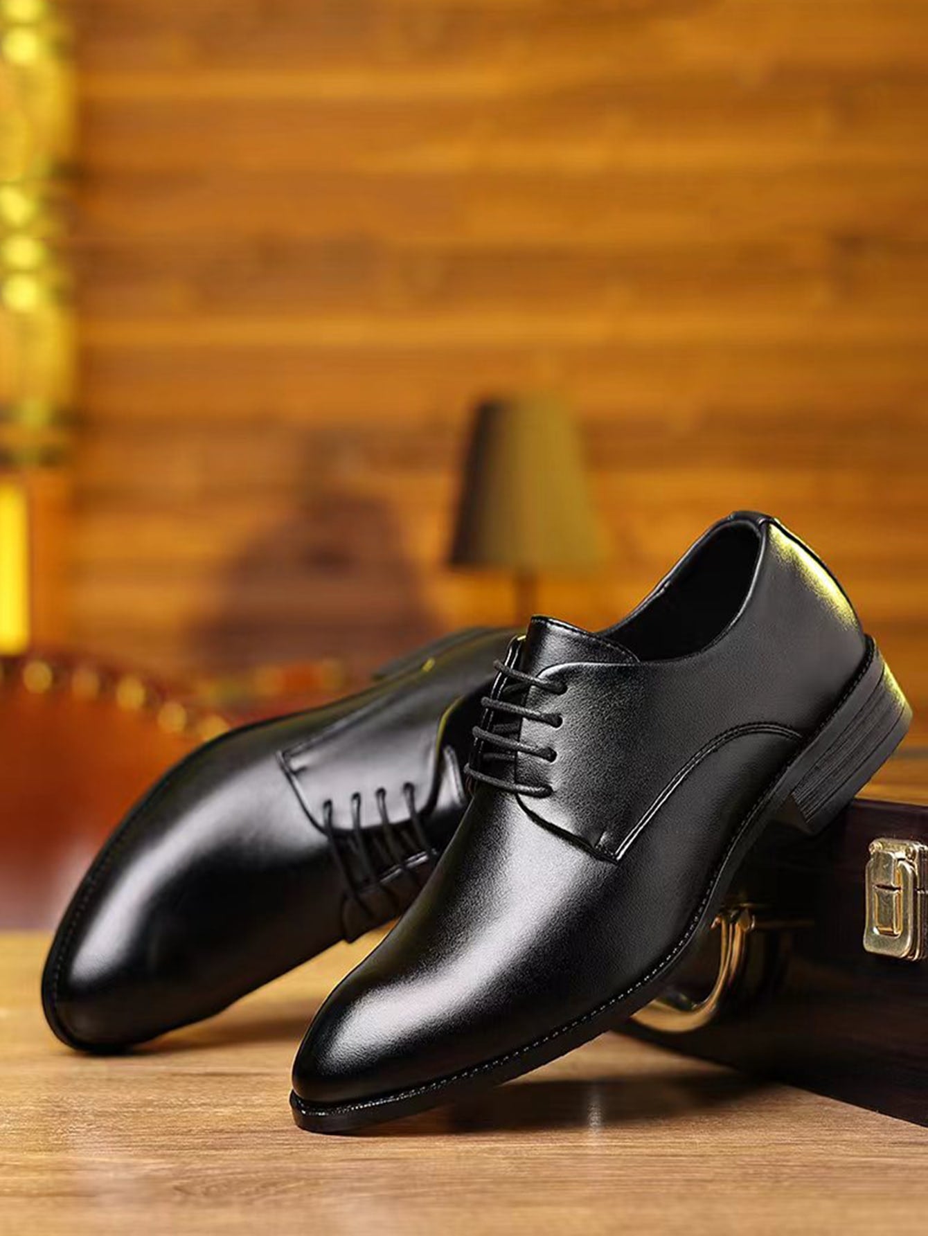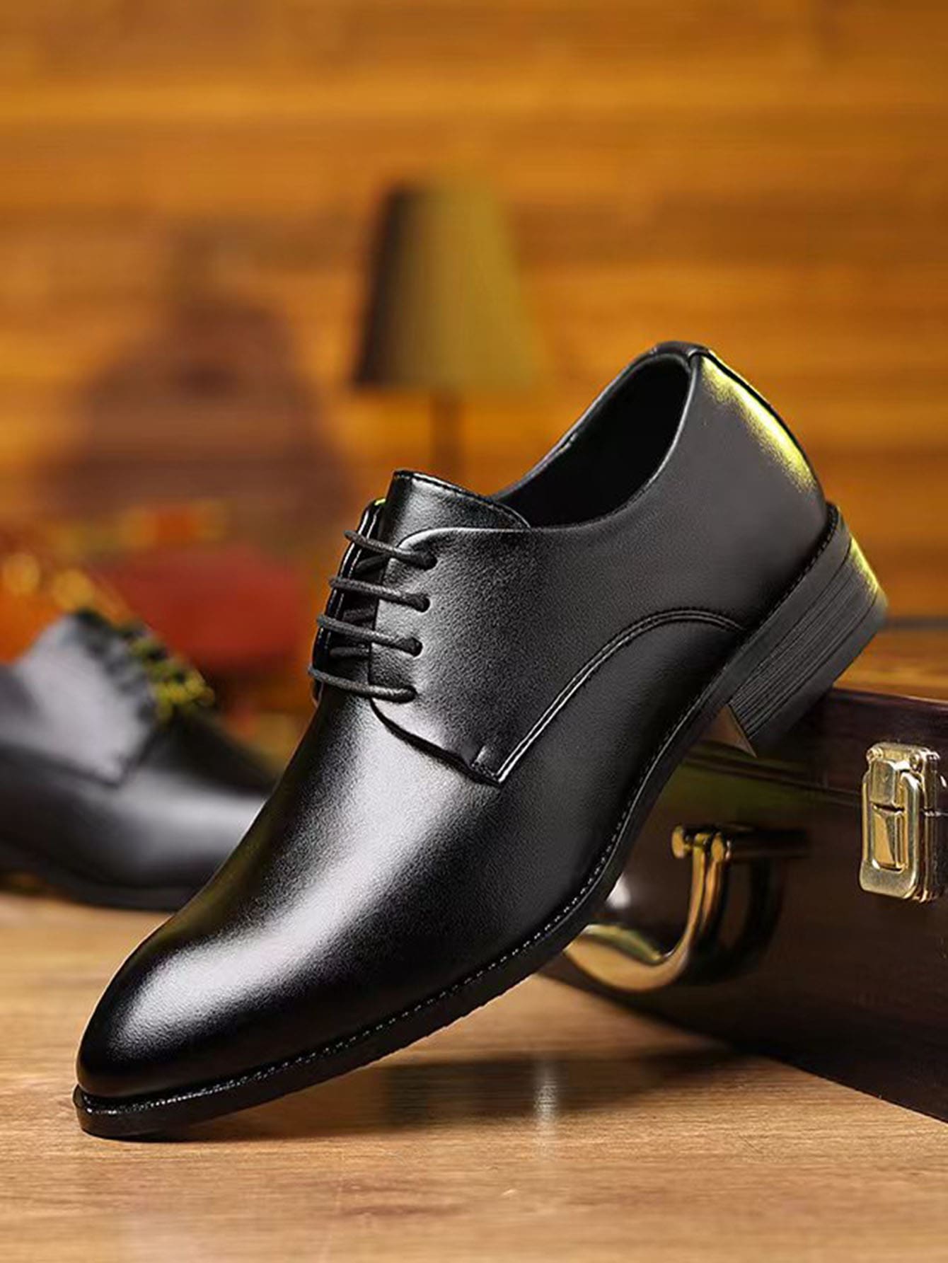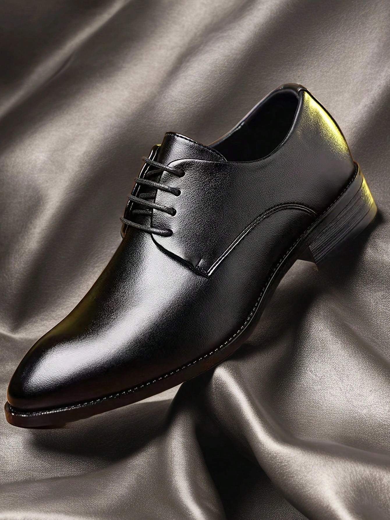 حذاء رجالي أكسفورد ذو مقدمة مدببة، بنعل مطاطي كامل، ورباط أمامي.