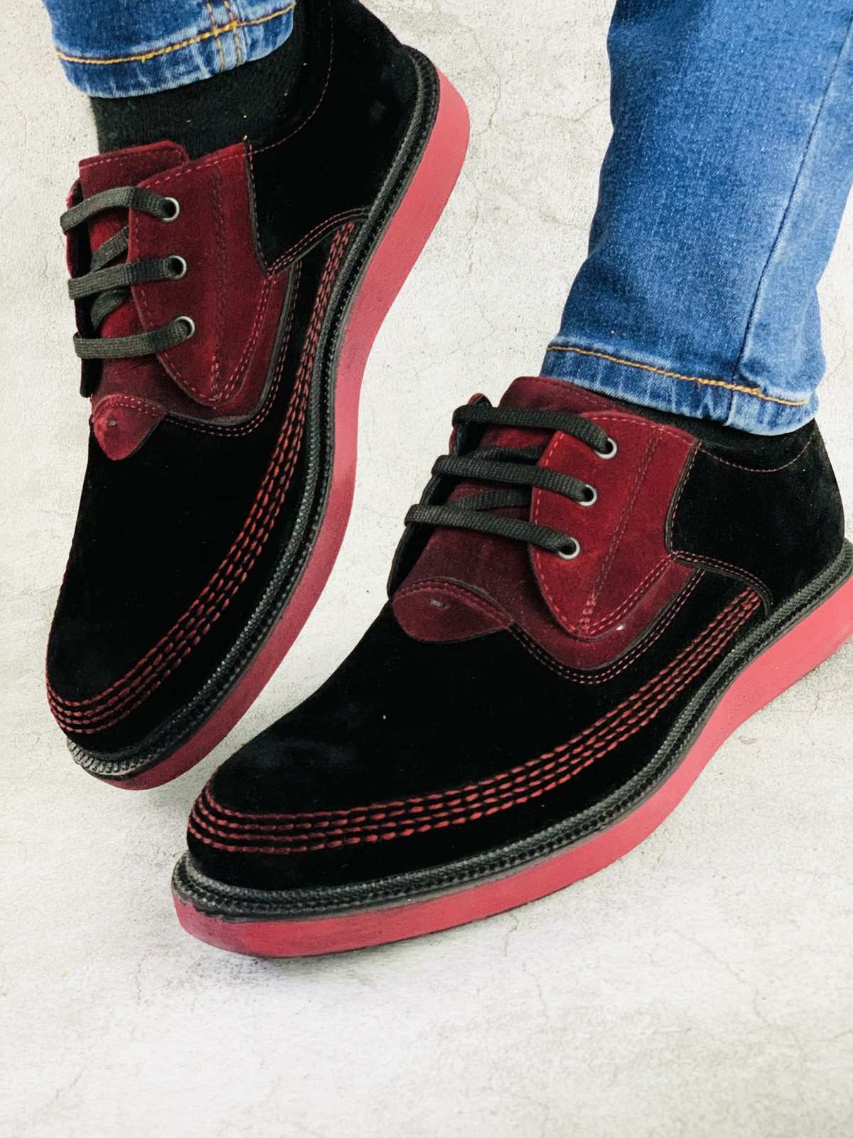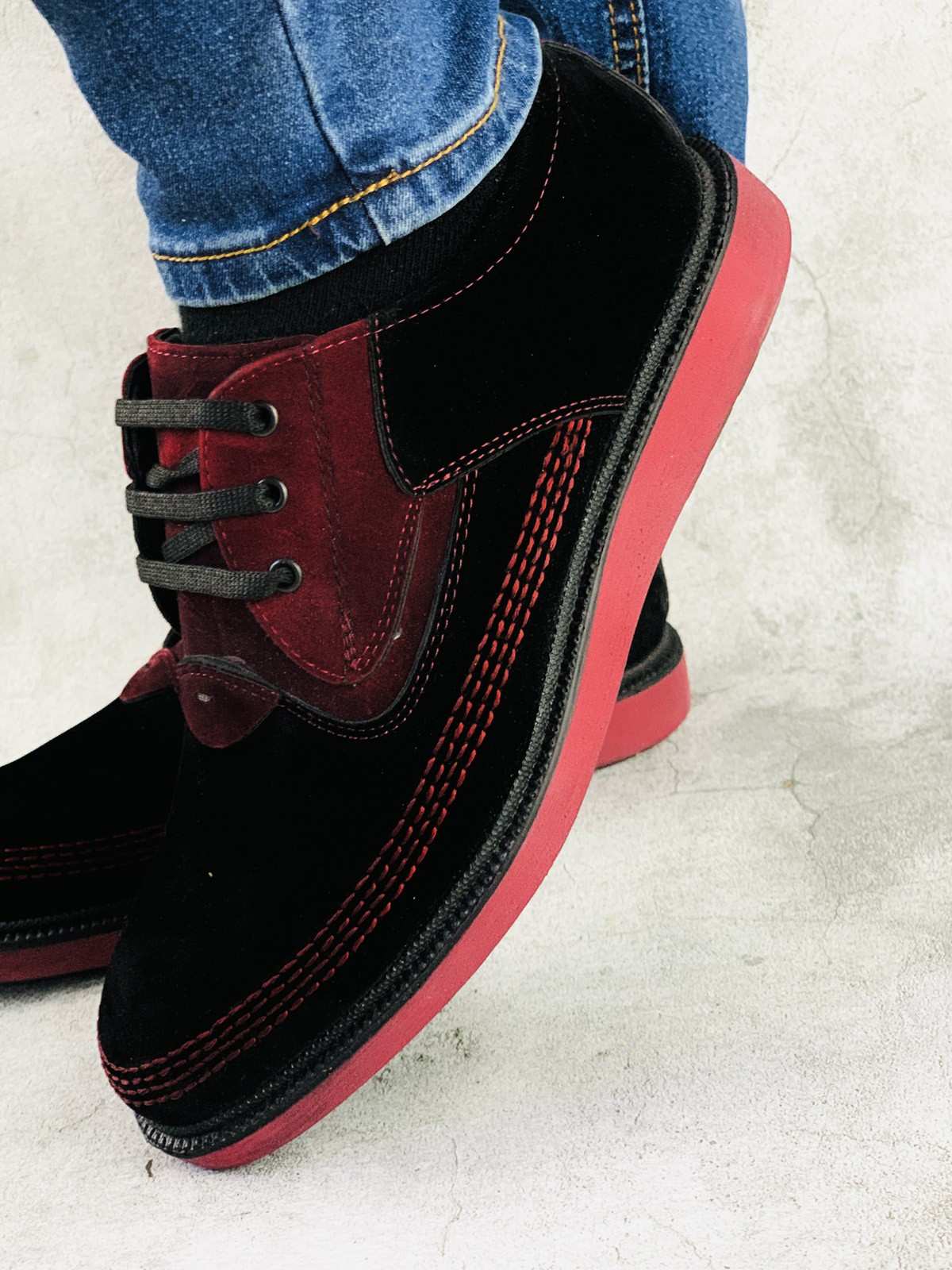 حذاء رجالي نعل أسود وأحمر بيج
