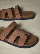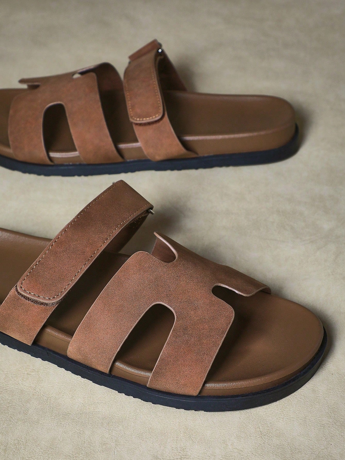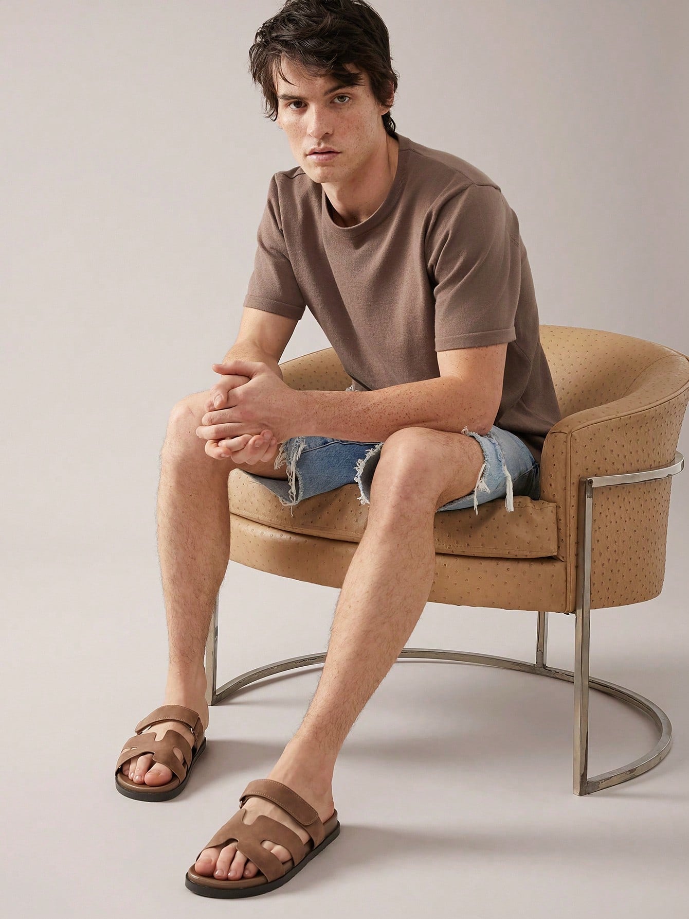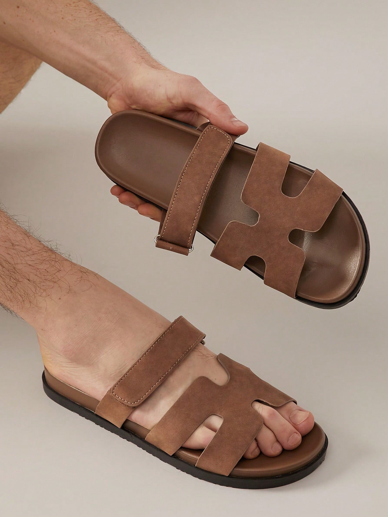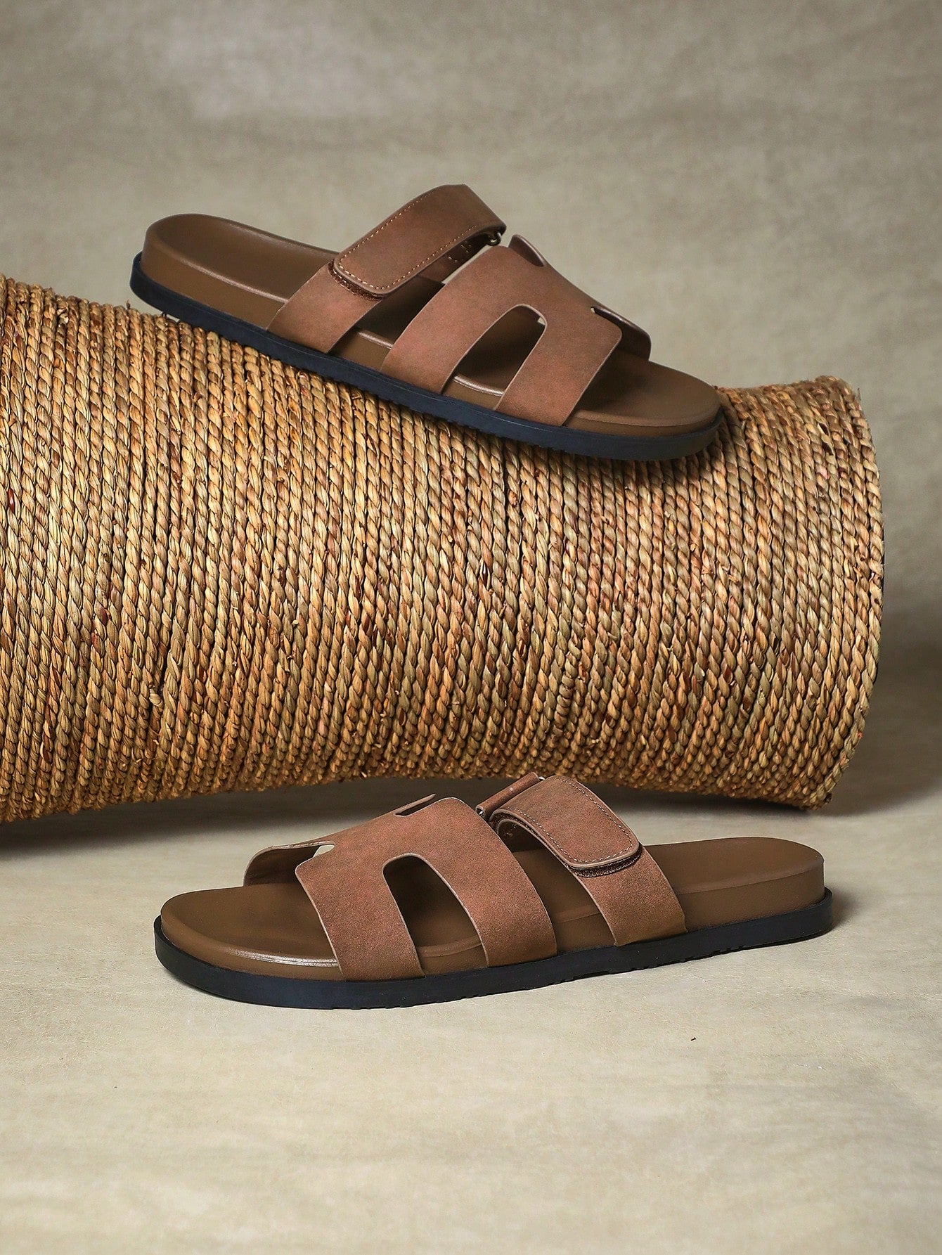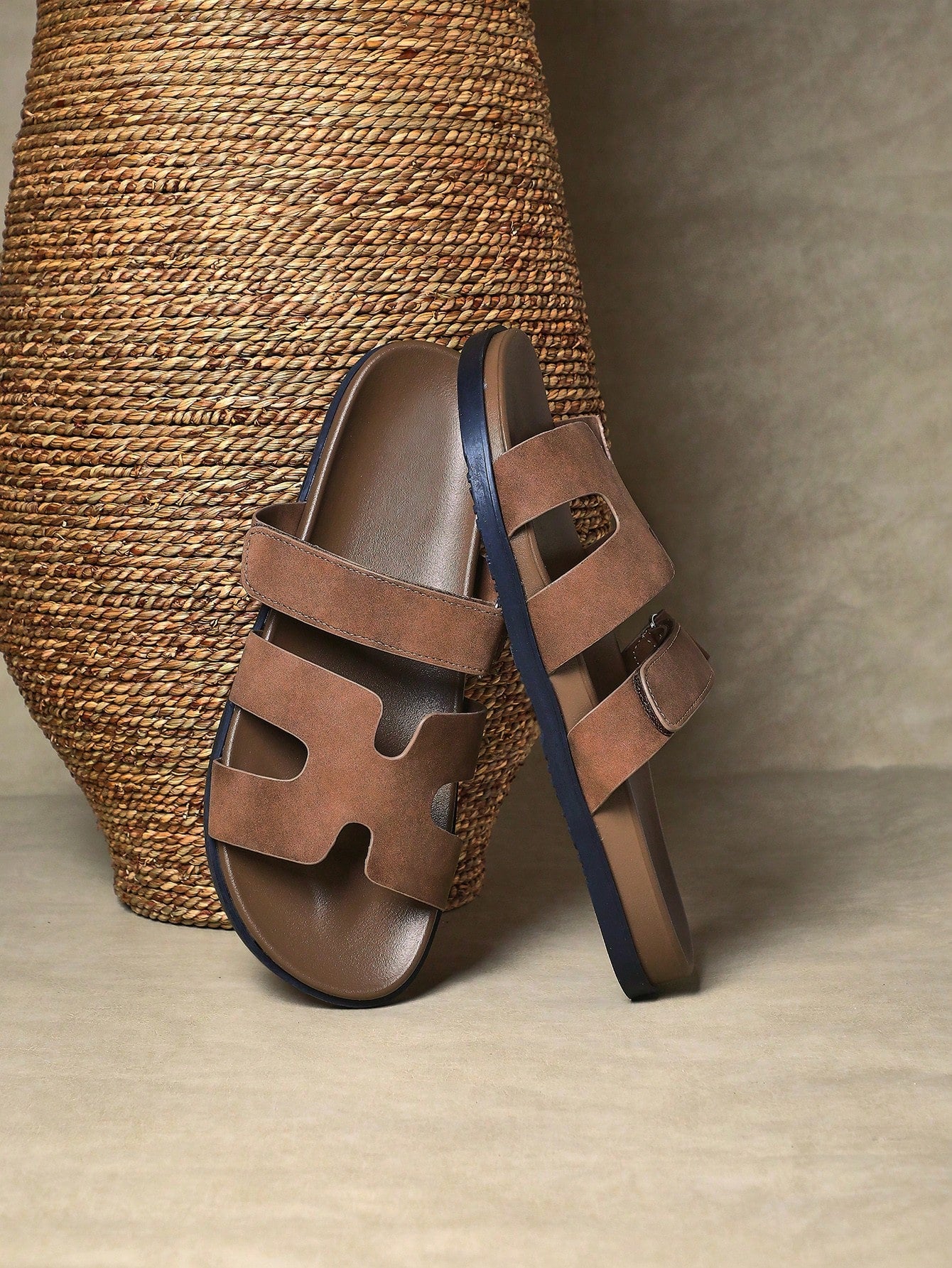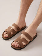 SHUZIA Essentials Men's Brown Nub Architectural Footbed Slides - Anti Slip Sole Mother's Day Present