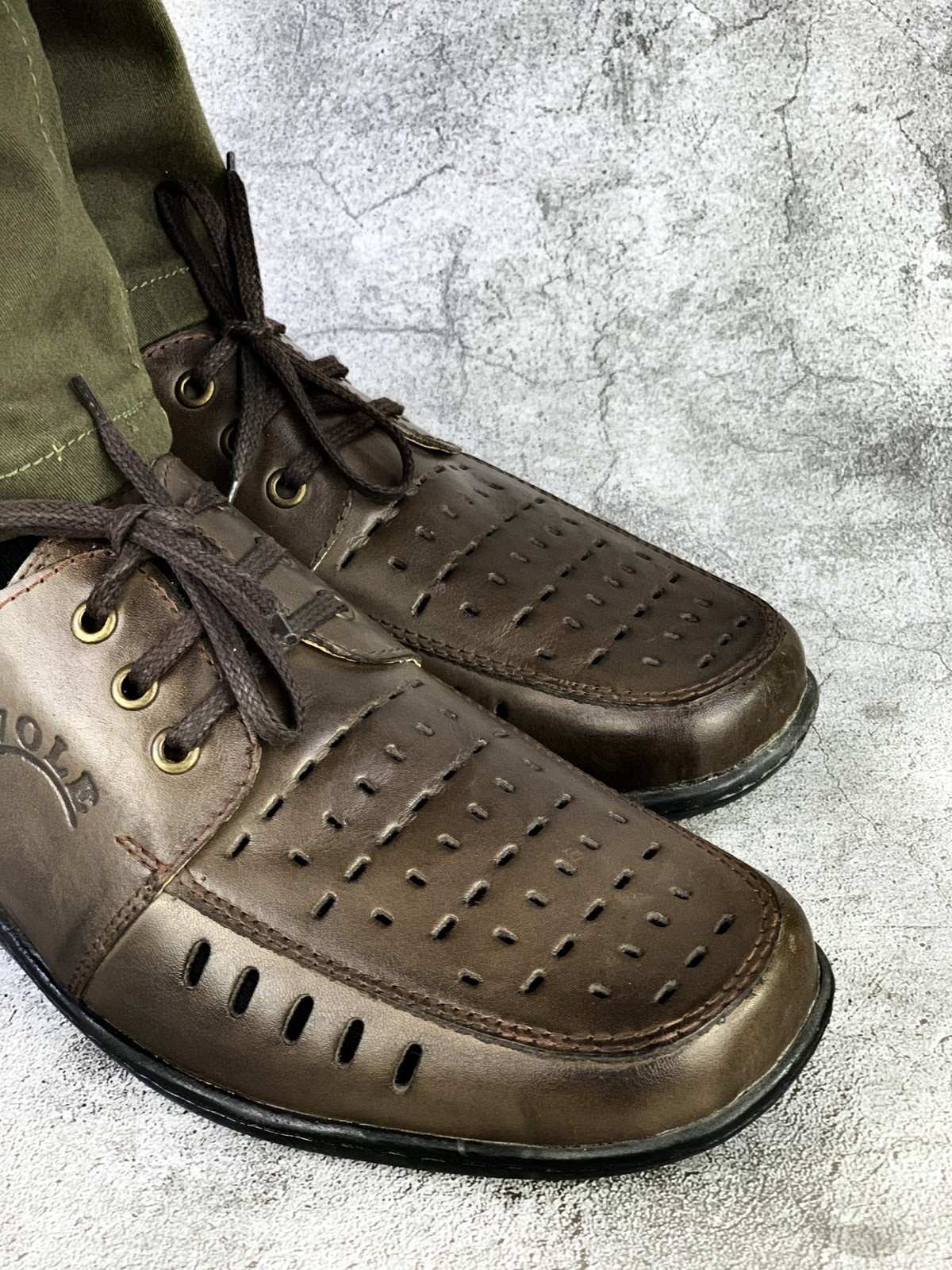 حذاء رجالي تركي مصنوع من الجلد الطبيعي مزود بفتحات للتهوية لراحة القدم