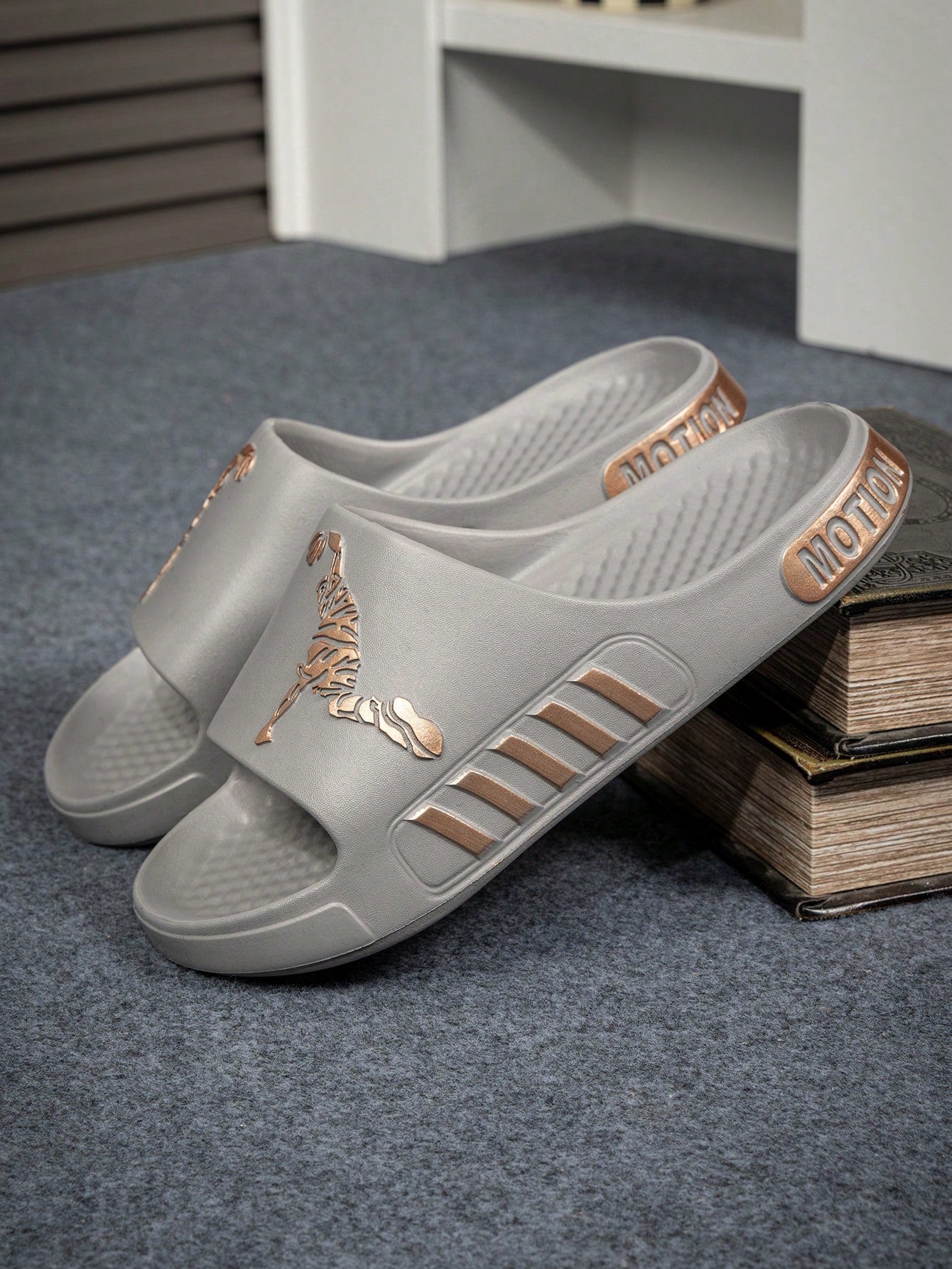 men Men's Sports Slippers With Golden Foil Human Portrait & Letter Design