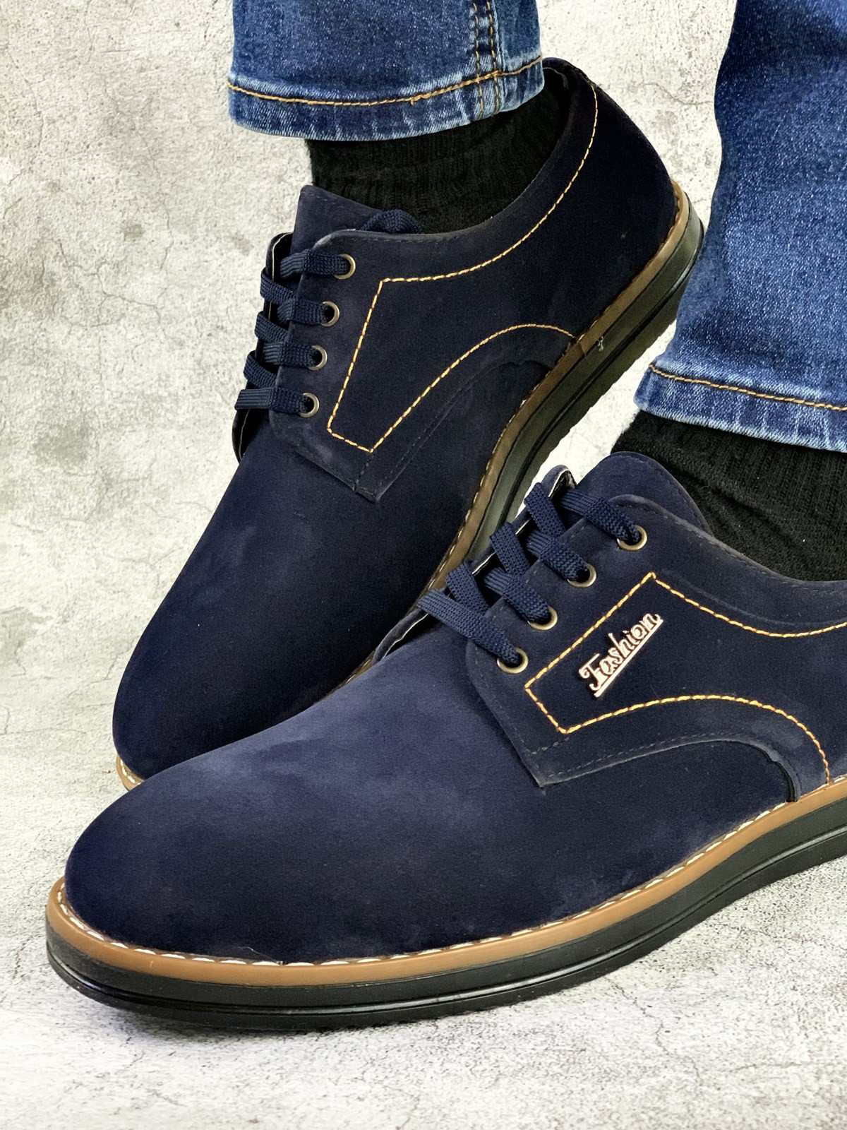 حذاء رجالي، كحلي، نعل أسود