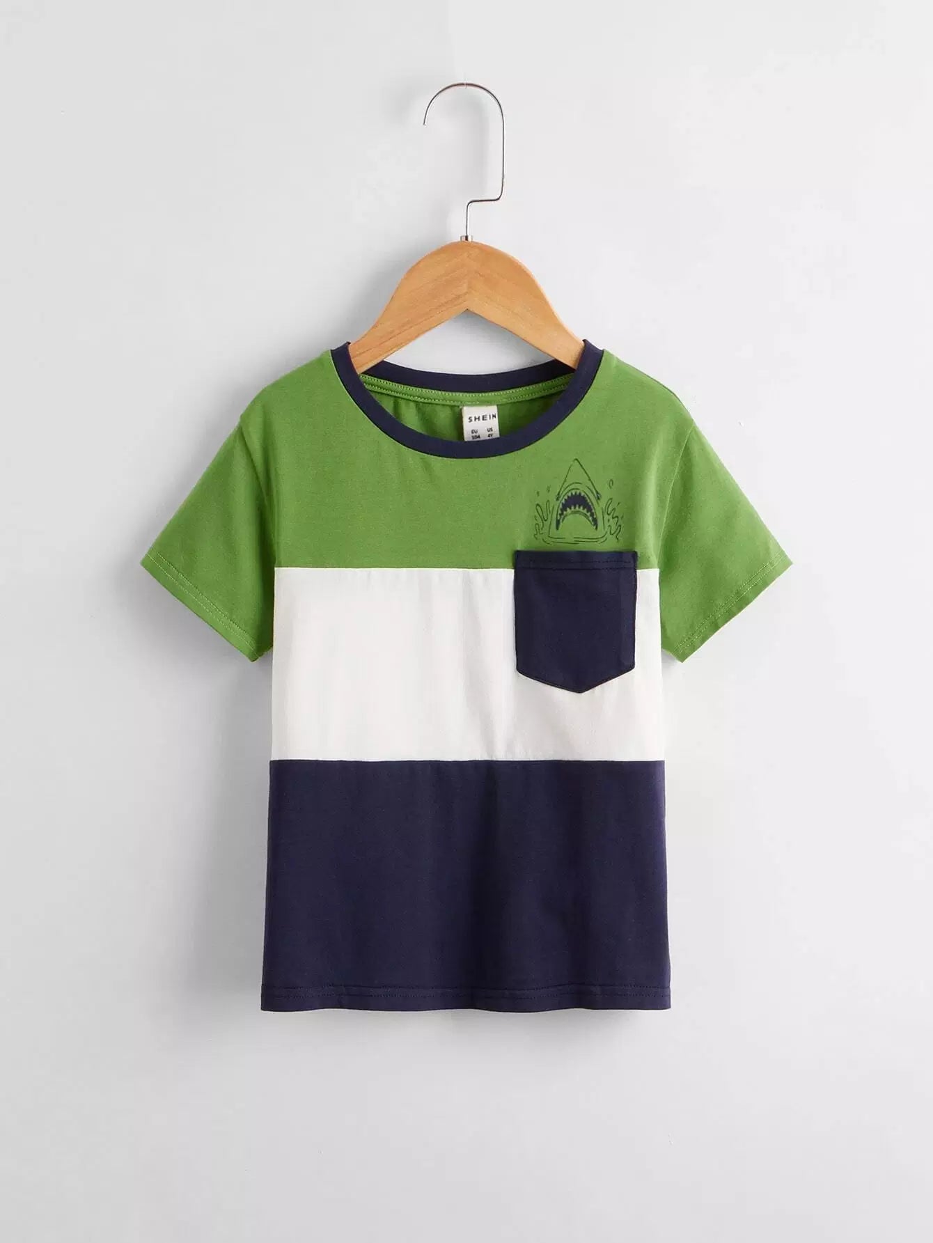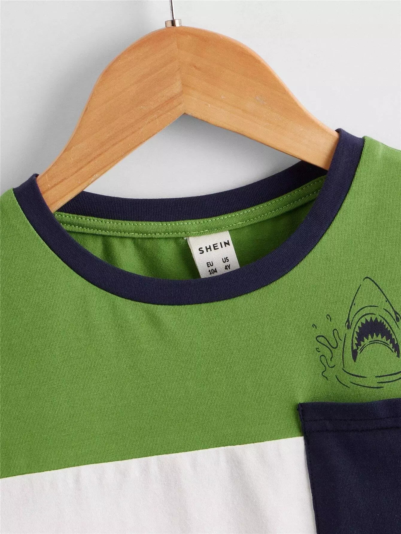 تي شيرت ملون بطبعة سمكة قرش للأولاد الصغار
