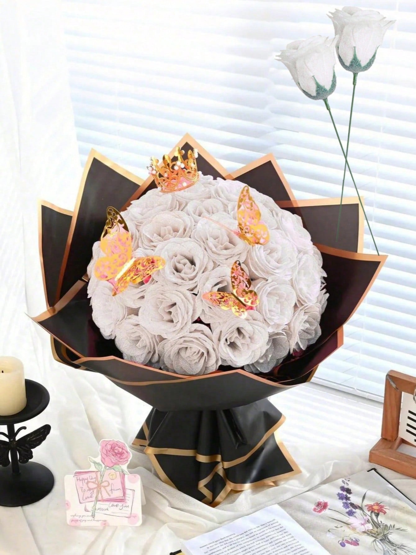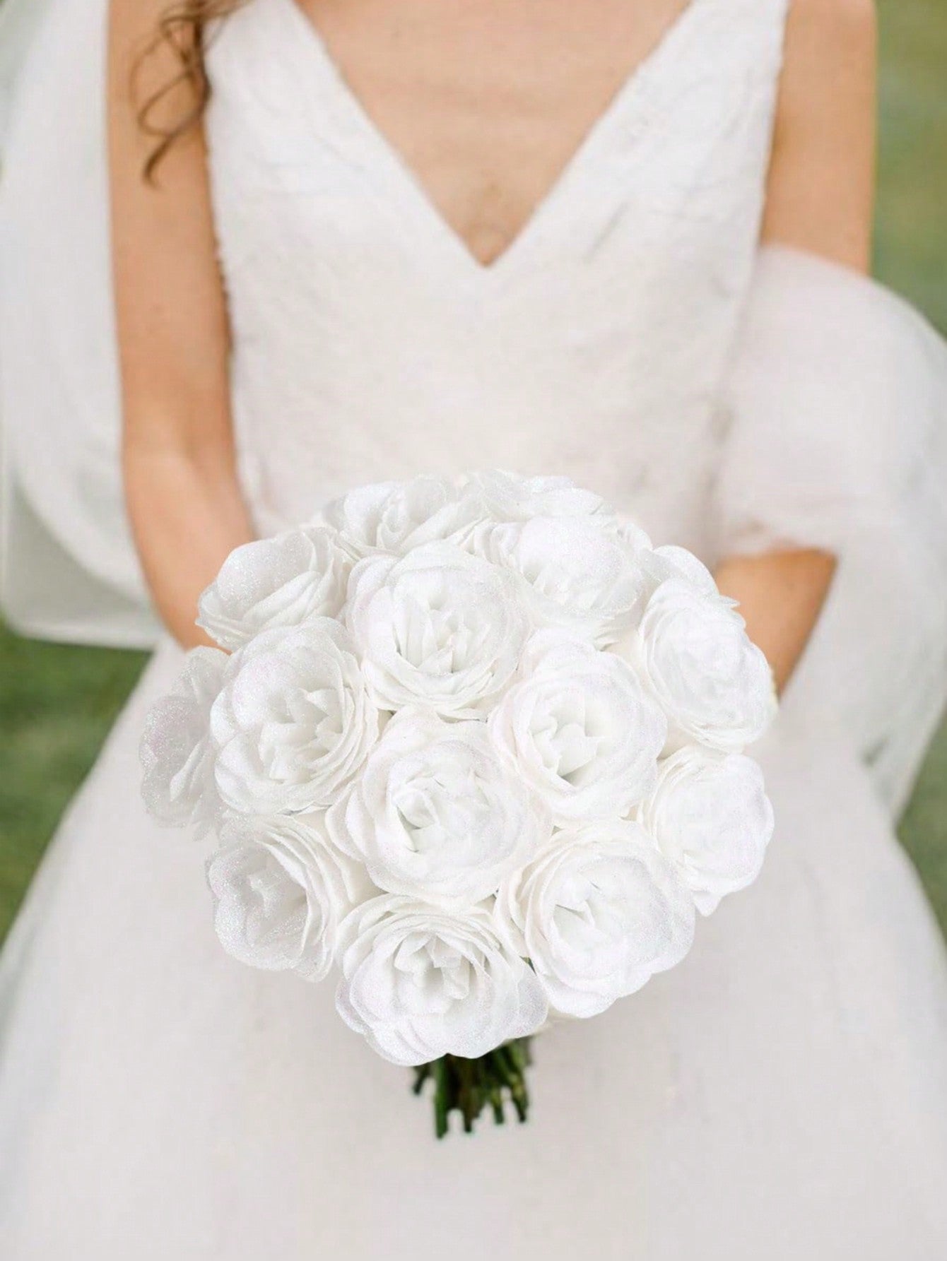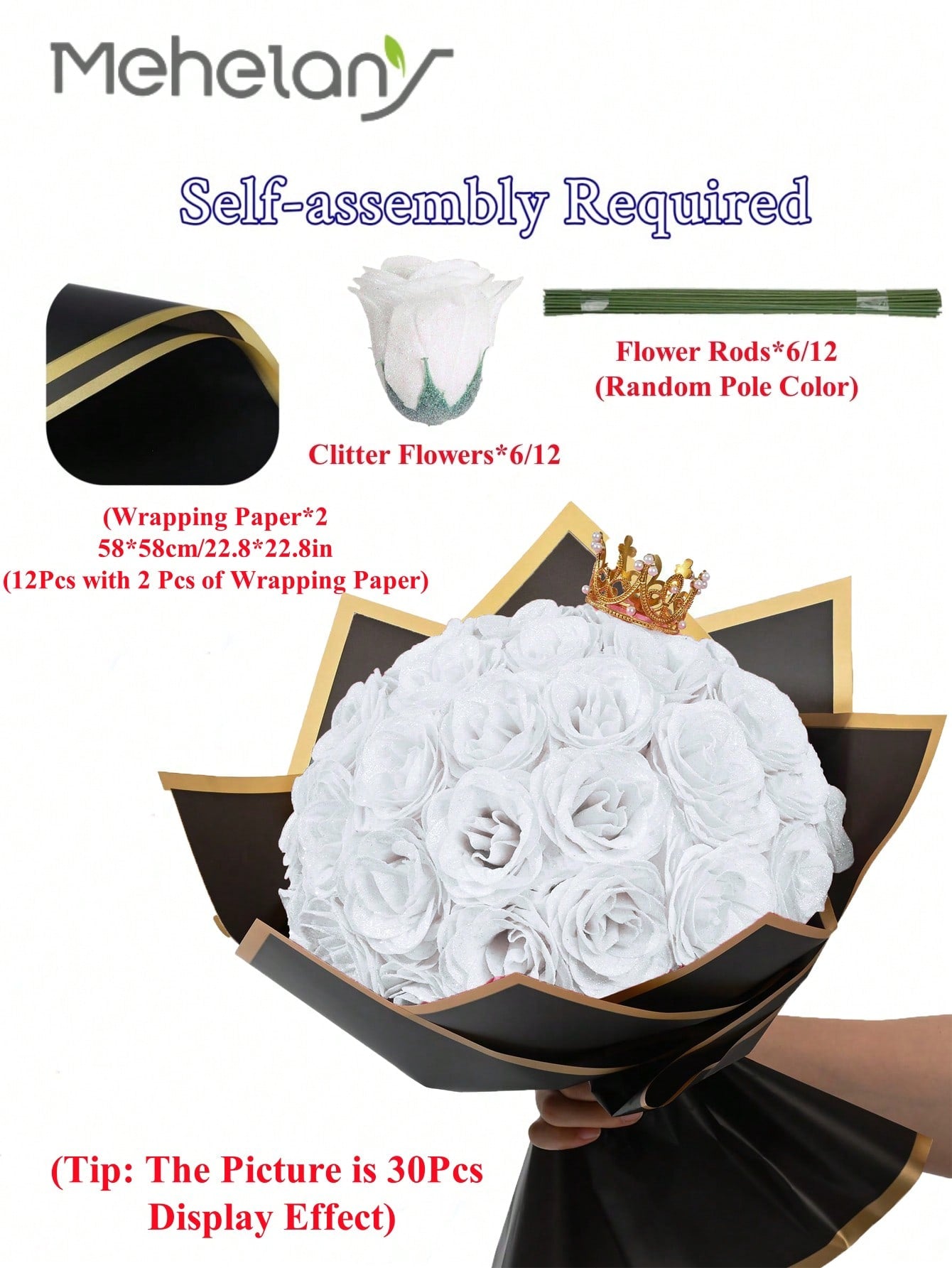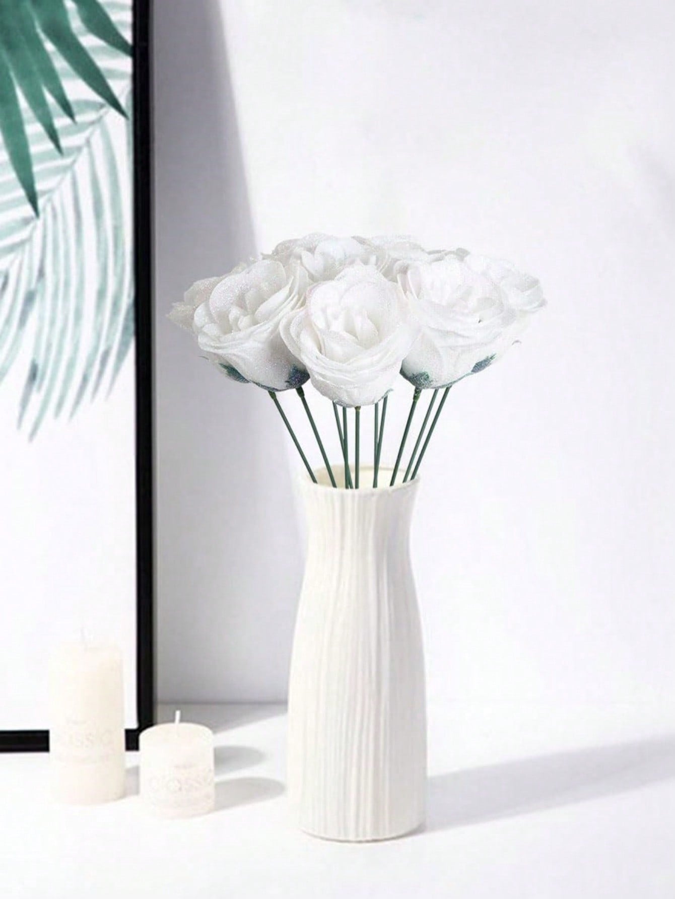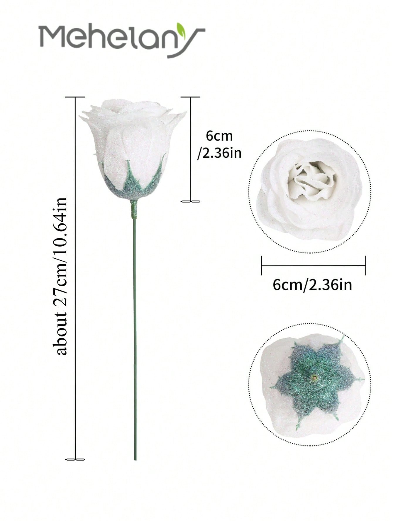 12Pcs 2.76" Glitter Roses Bouquet, DIY Fake Glitter Flowers Bouquet, Red Plastic Faux Flower, Artificial