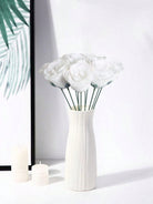 باقة ورود لامعة من ١٢ قطعة، ٢.٧٦ بوصة، باقة زهور لامعة اصطناعية، زهور بلاستيكية حمراء صناعية، زهور صناعية