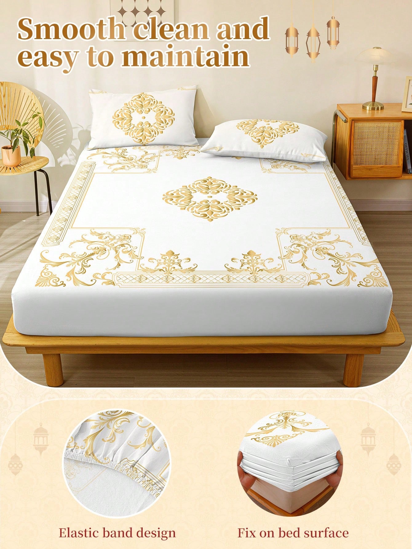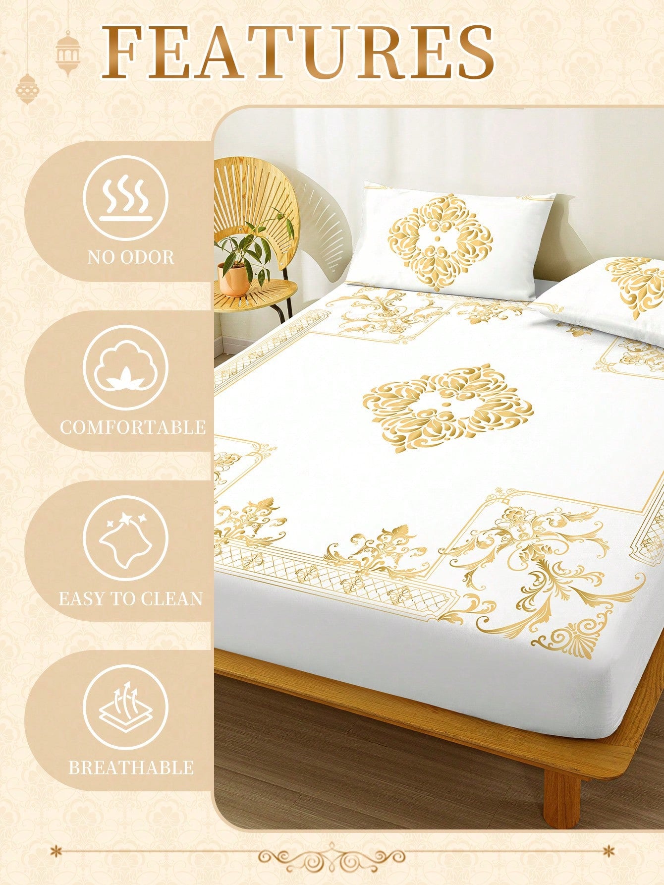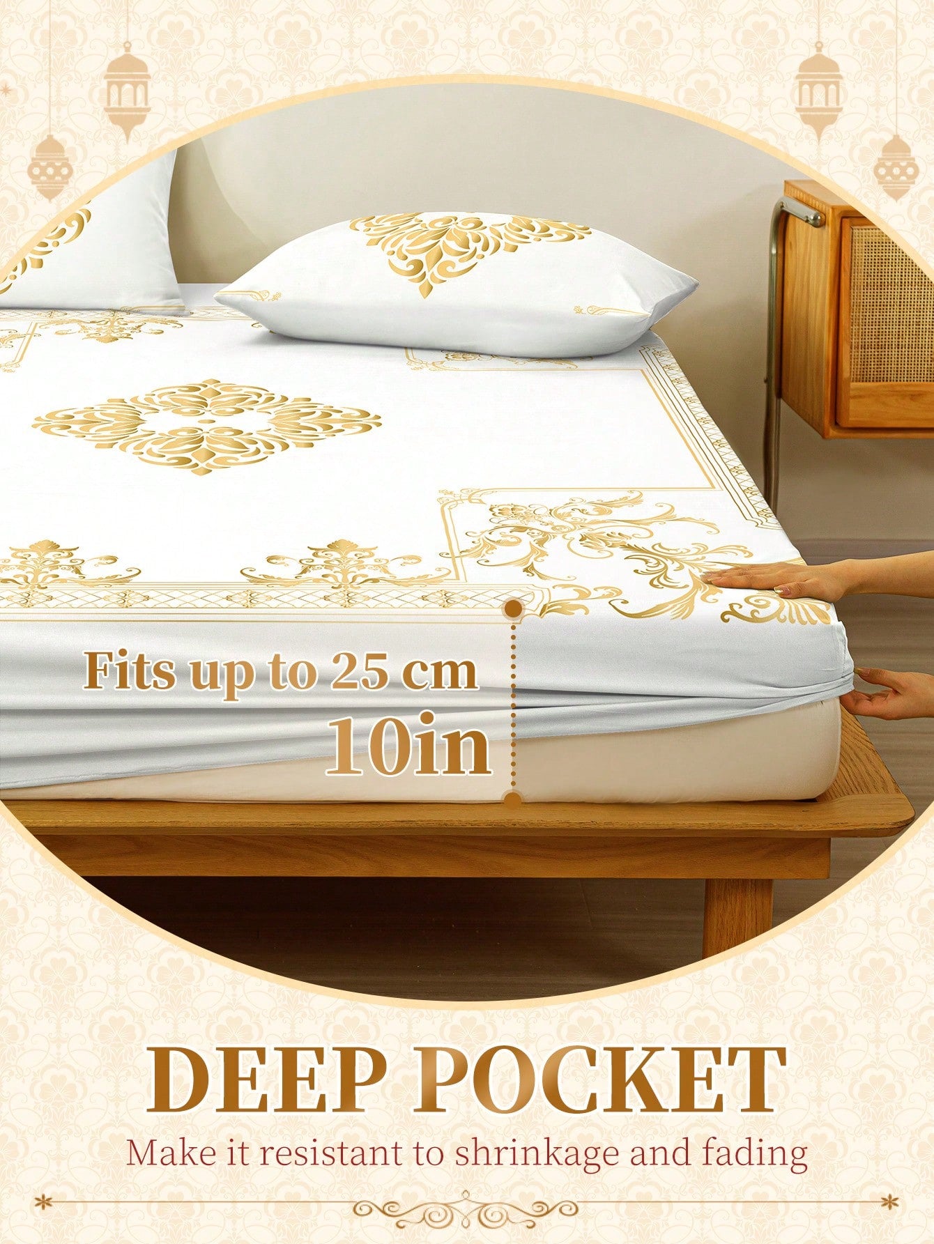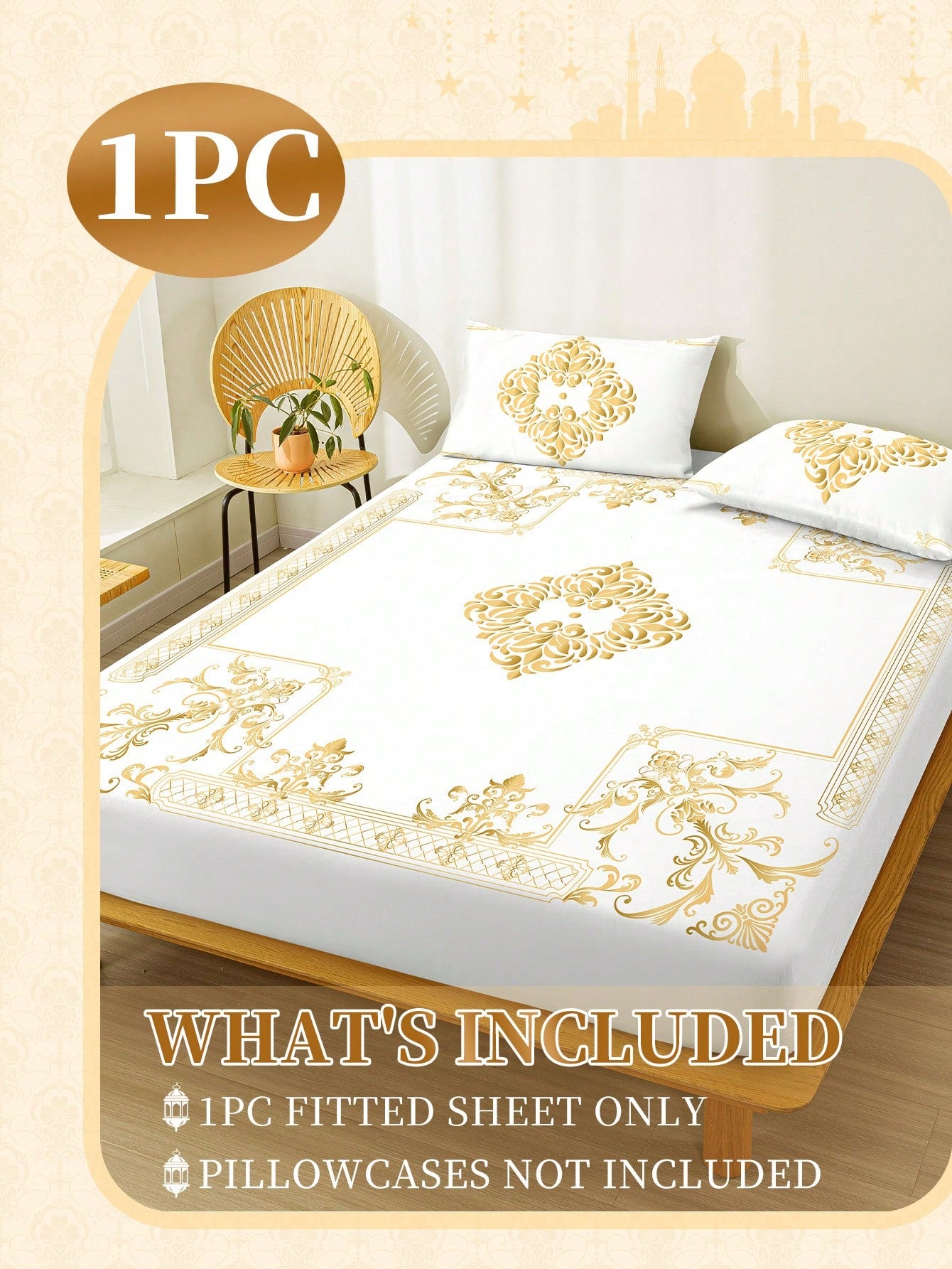 1pc Fitted Sheet, Ramadan Bedding, Fitted Sheet, Bed Cover, Fitted Sheets, Brushed And Soft Fitted Sheets,