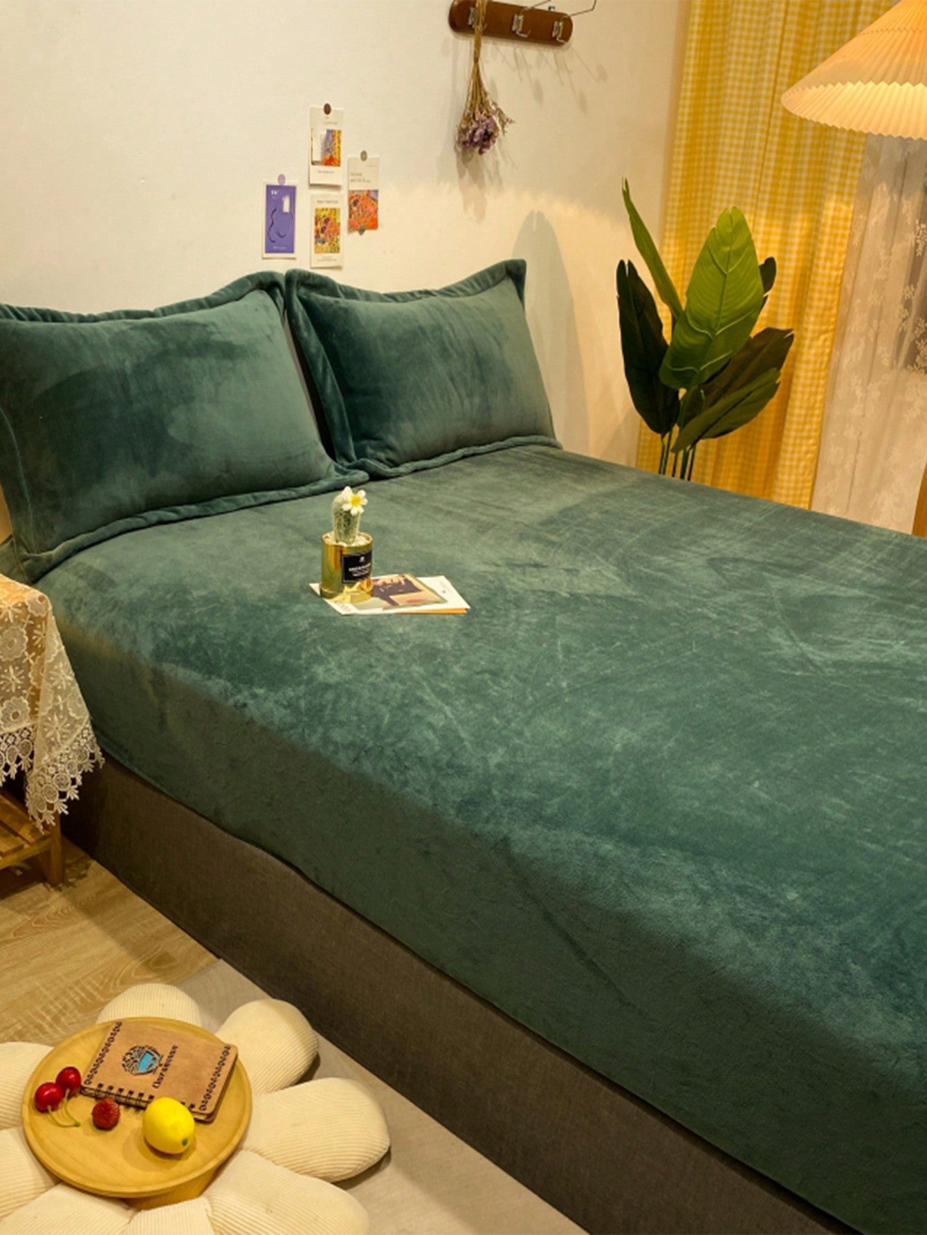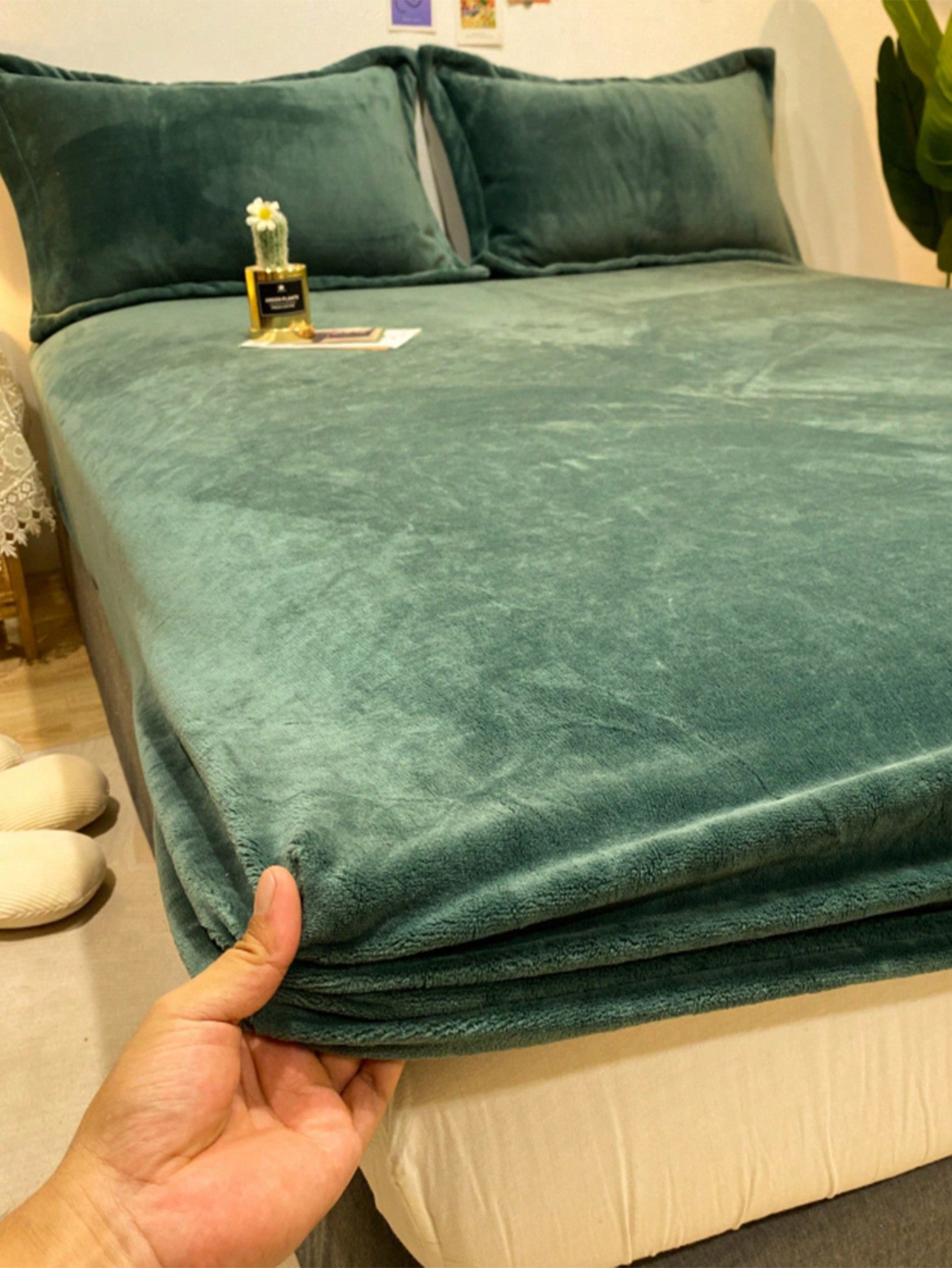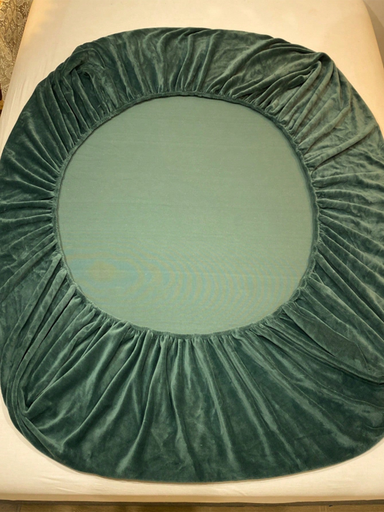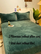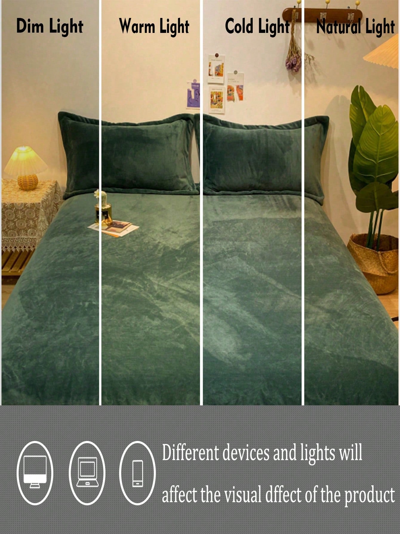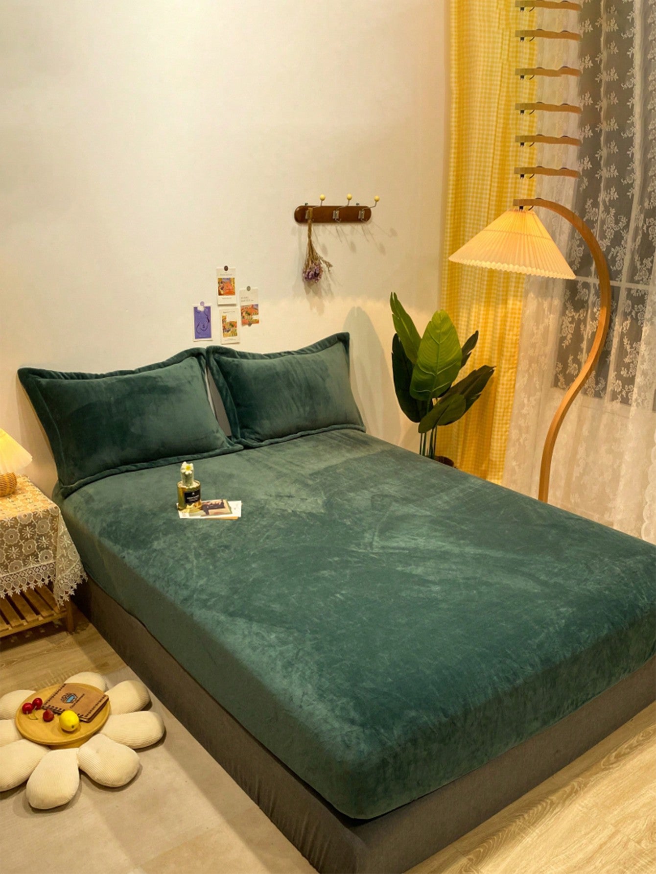 3pcs Green Crystal Velvet Bedding Set Including Fitted Sheet, Pillowcase And Duvet Cover