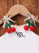طقم مكون من قطعتين من ملابس الأطفال الرضع لفصل الربيع والصيف، بنمط كاجوال مزين بالكرز مع أكمام وجزء علوي من الدانتيل