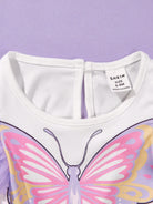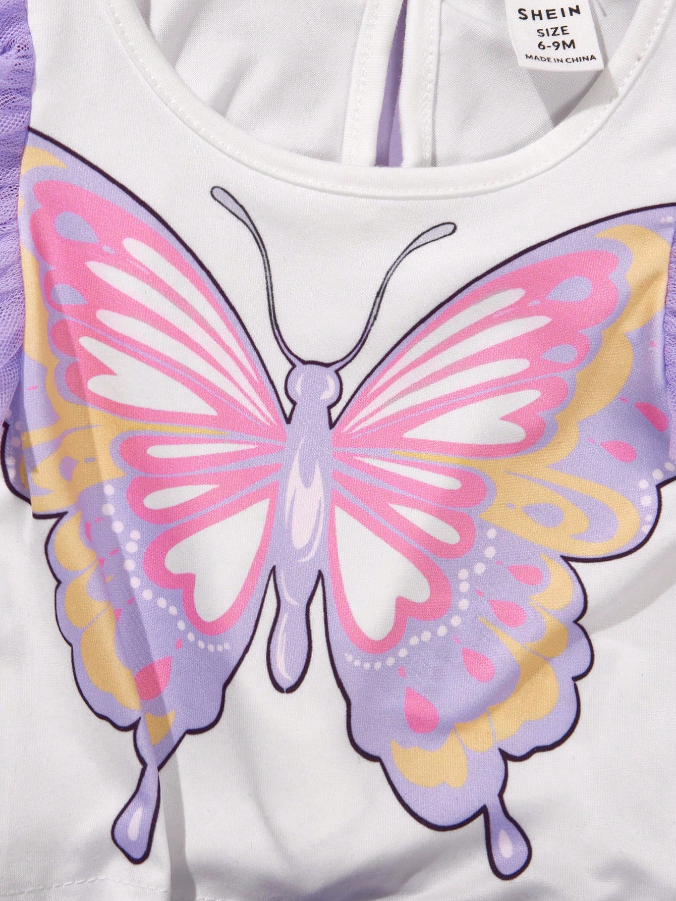 طقم مكون من قطعتين من تنورة شبكية بأكمام قصيرة مطبوعة على شكل فراشة أنيقة ورائعة للفتيات الصغيرات، مناسب لـ