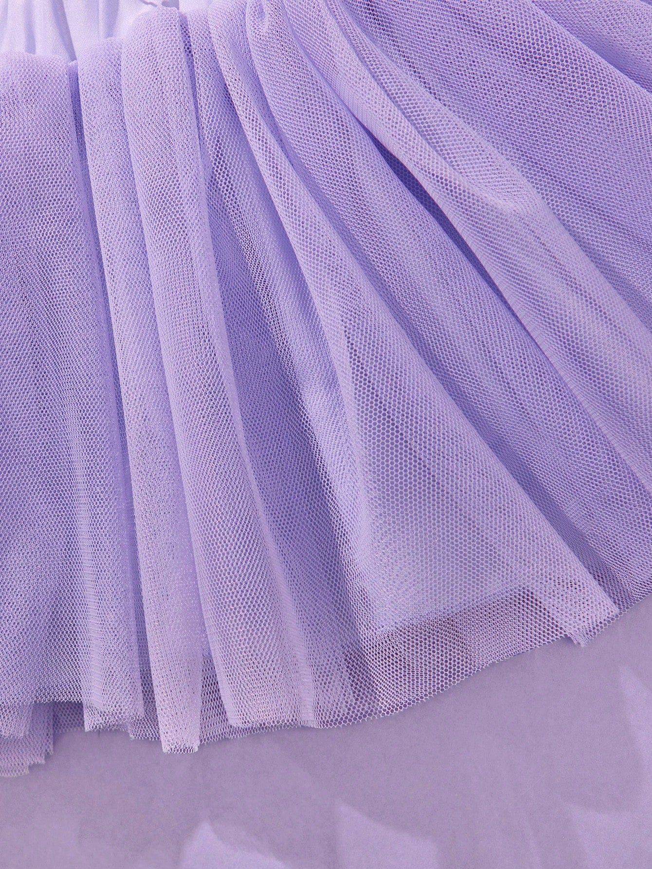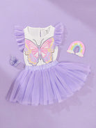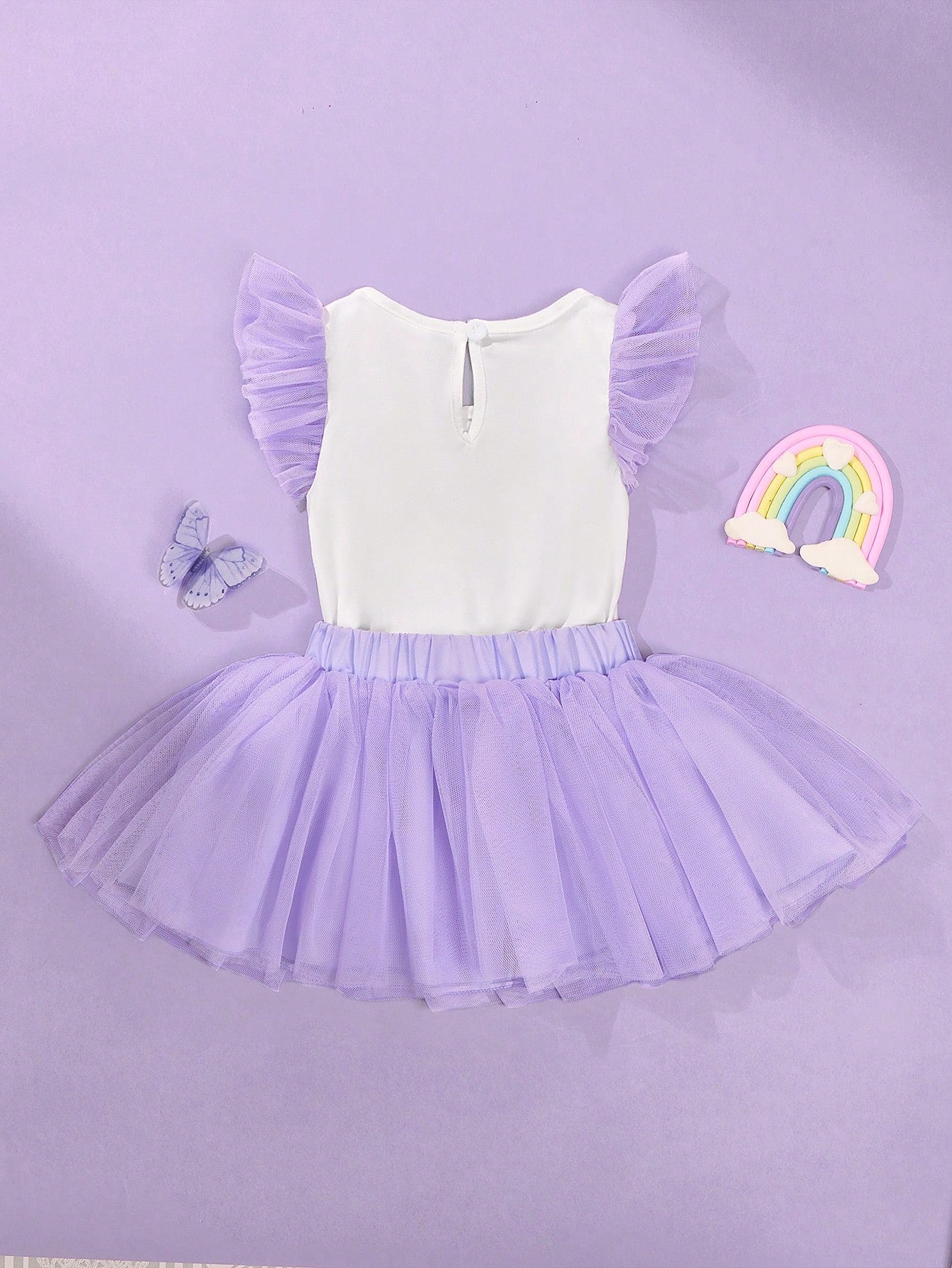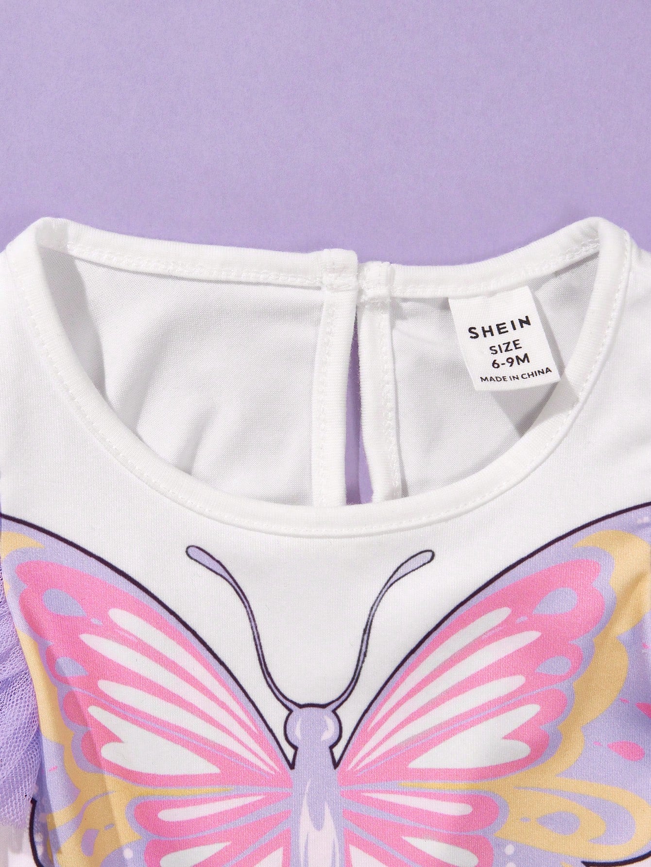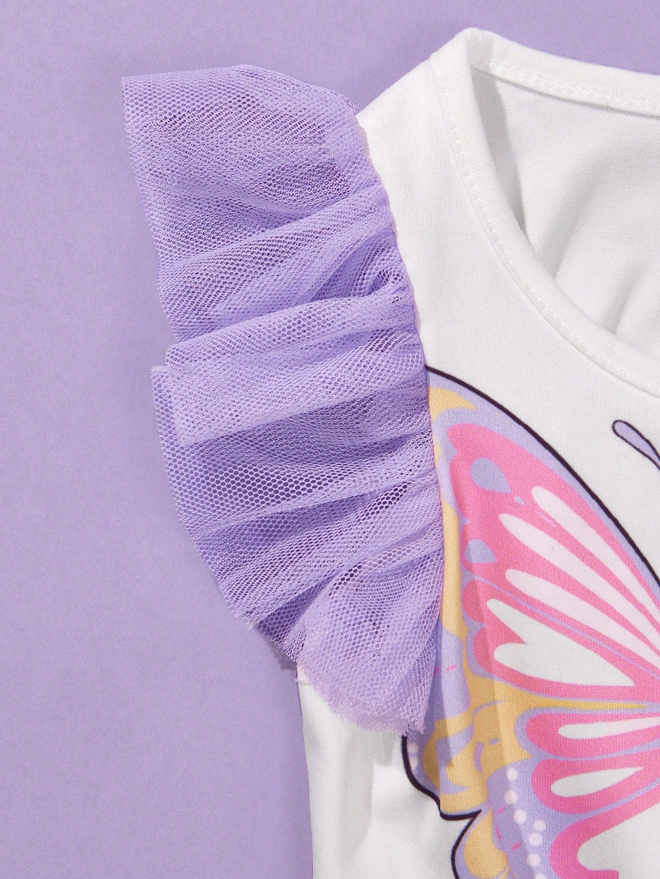 2pcs/Set Baby Girls Elegant Gorgeous Cute Butterfly Print Cap Sleeve Mesh Skirt Outfit, Suitable For