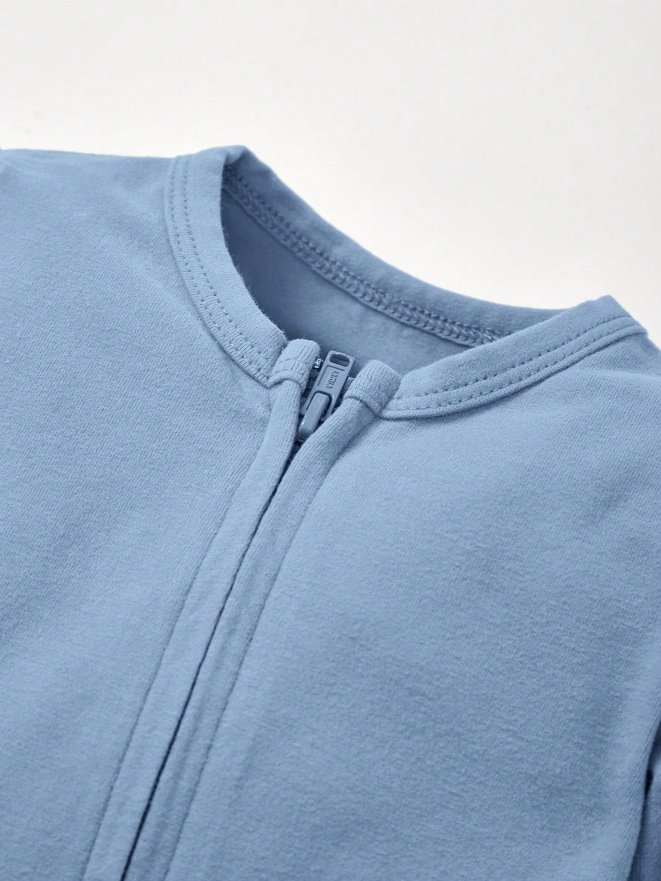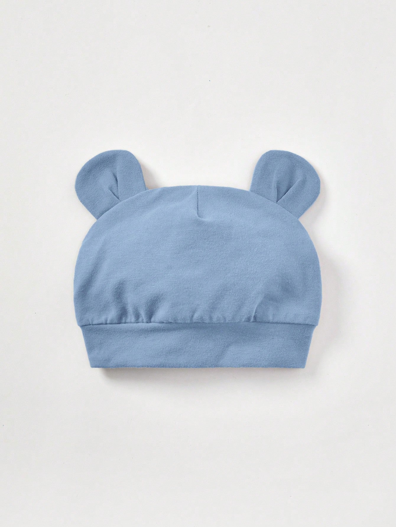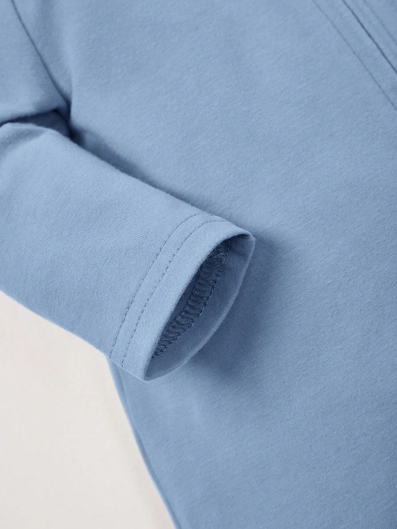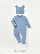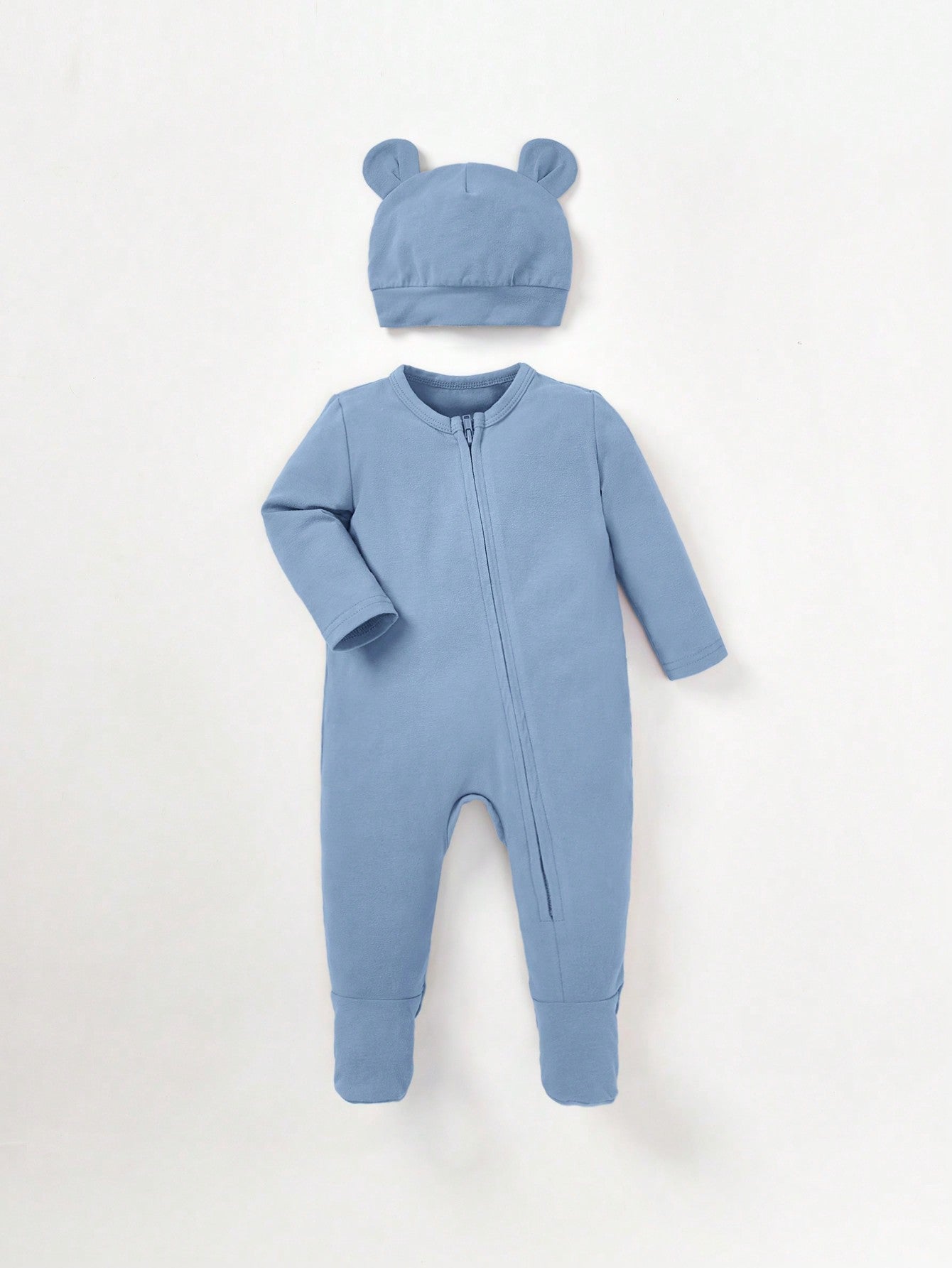 Cozy Pixies Newborn Baby Boy Solid Zip Up Sleep Jumpsuit & 3D Ear Design Hat