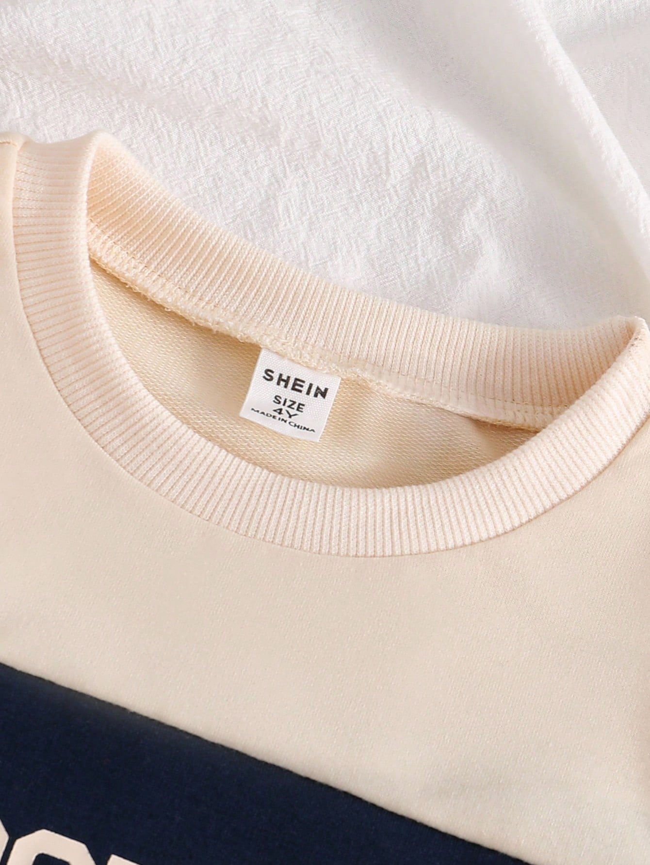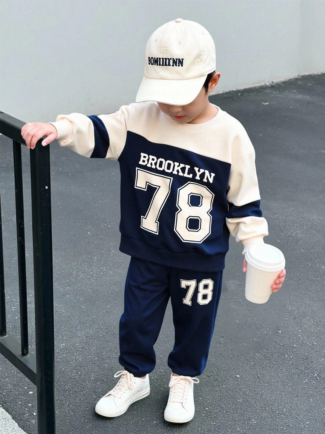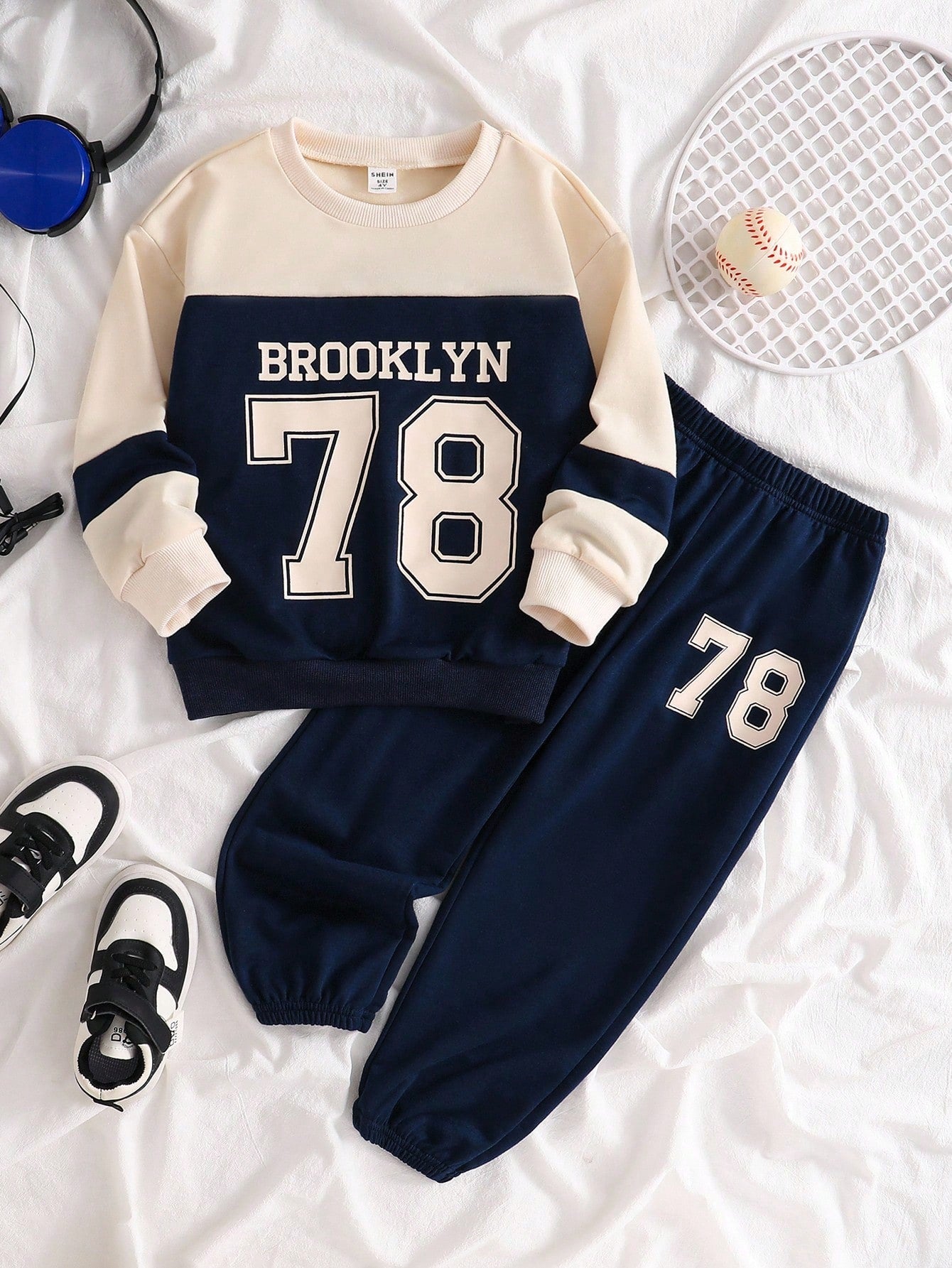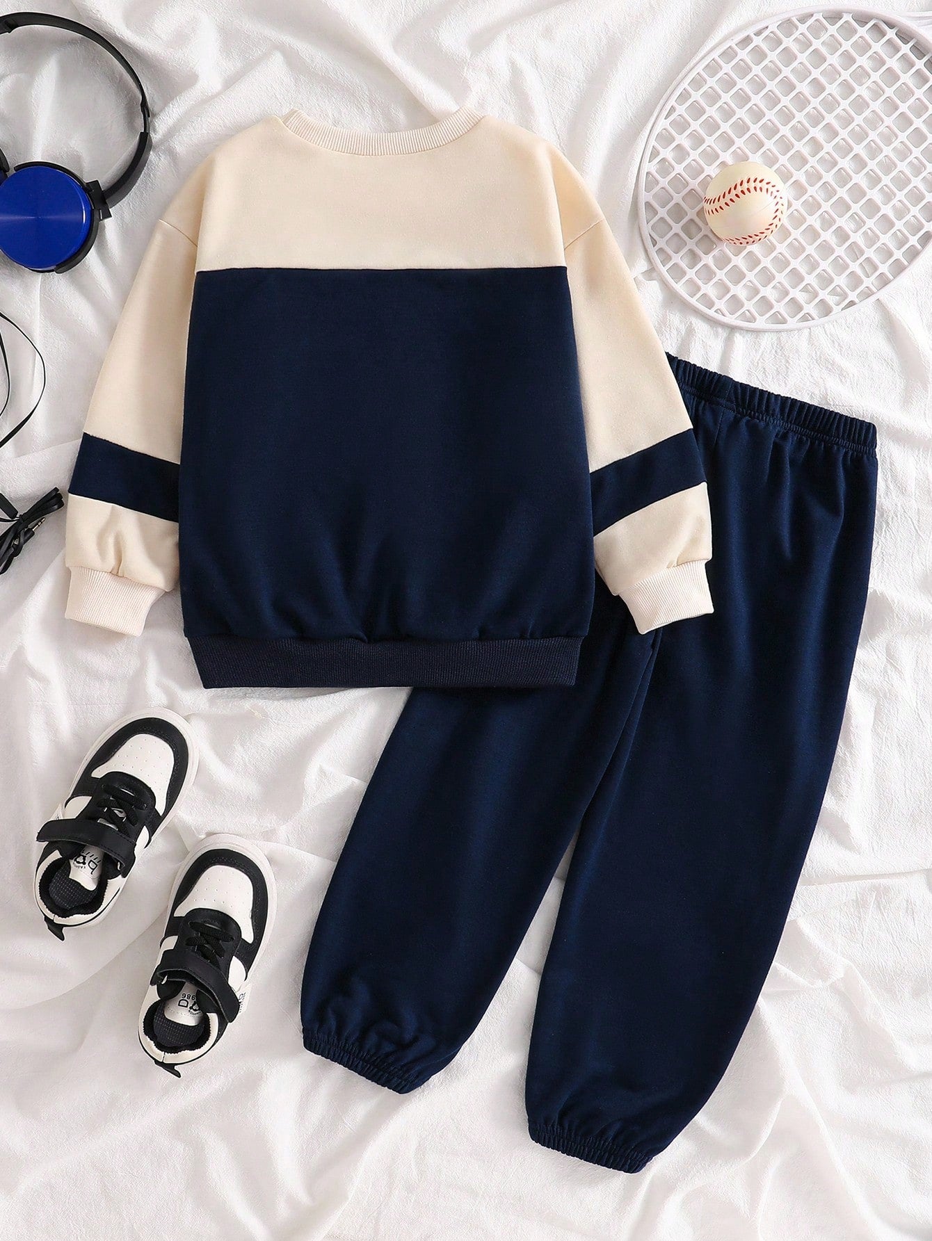 طقم ملابس للأطفال من جينكيميكس مكون من قطعتين، مناسب للأولاد الصغار، بتصميم عصري بسيط، يتكون من سويت شيرت بأكمام طويلة وياقة دائرية وبنطال رياضي.