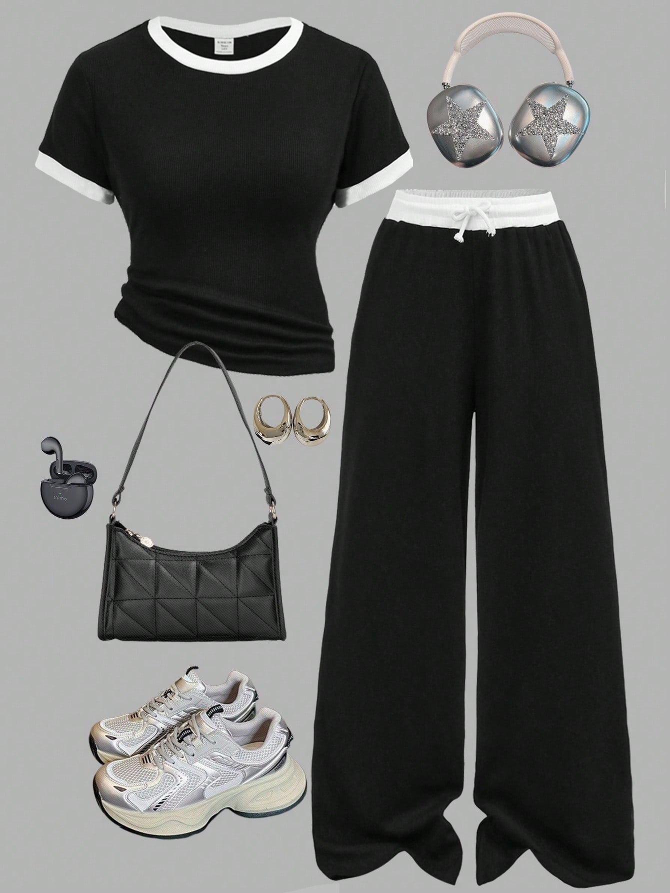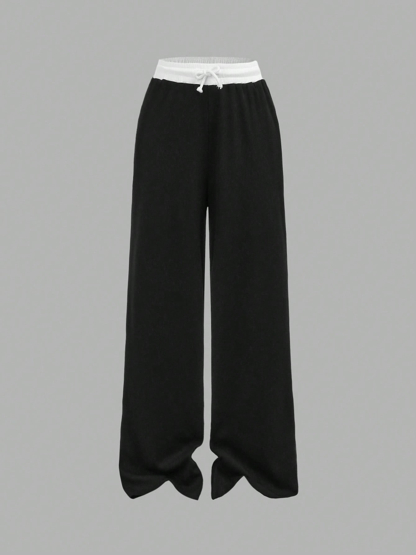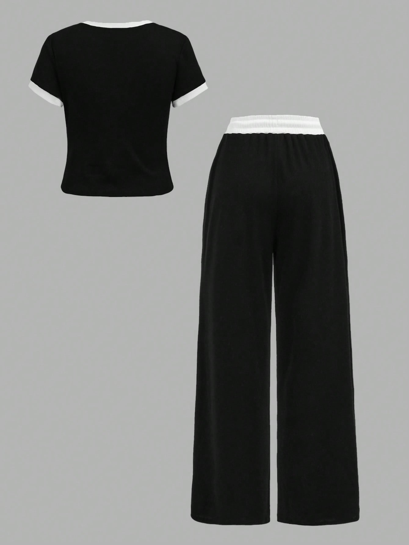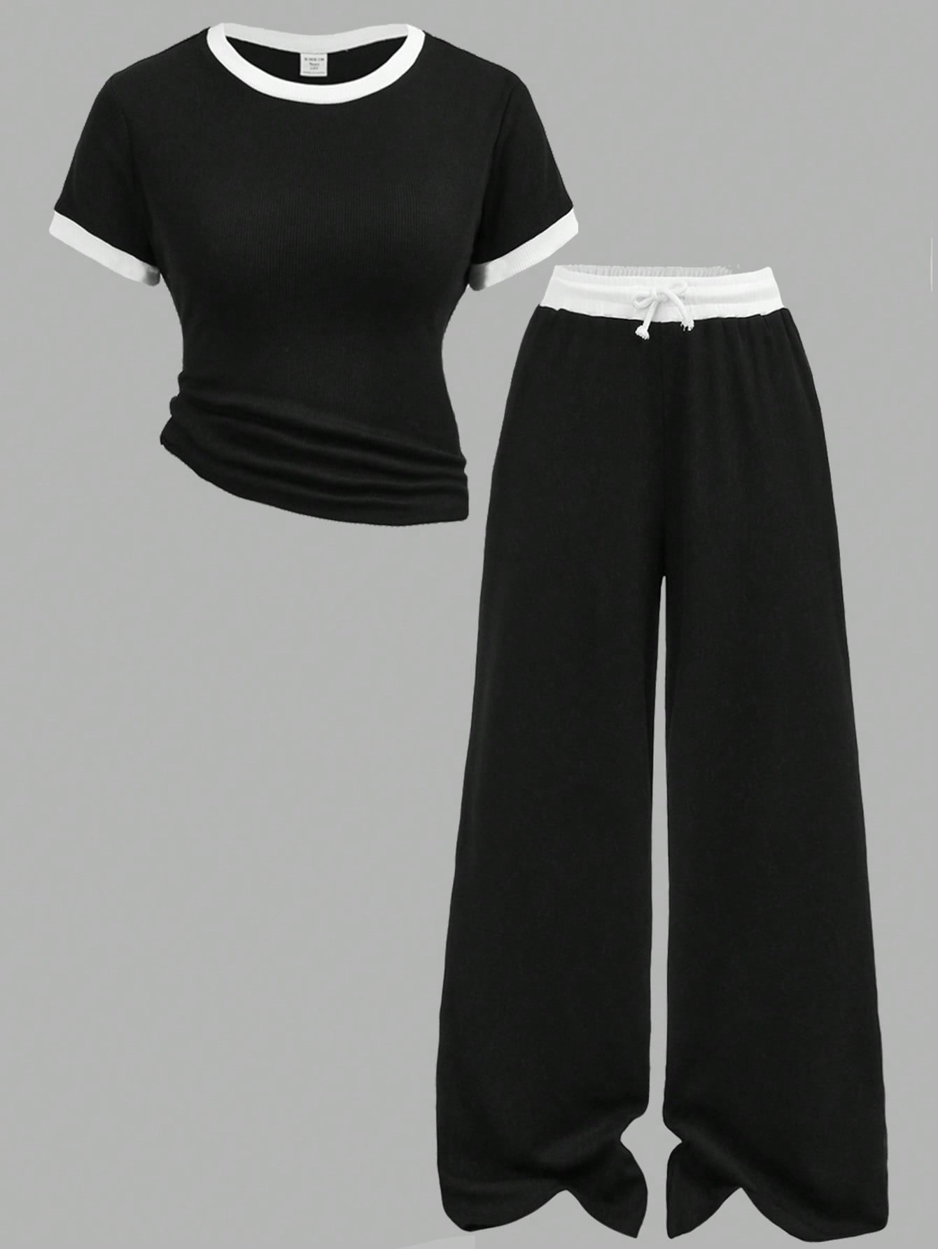 طقم ملابس بناتي من قطعتين من Girlism، مناسب لفصلي الربيع والصيف، بتصميم مخطط باللونين الأسود والأبيض، يتكون من تيشيرت أساسي ضيق وبنطال فضفاض بجيوب وخصر بلون مغاير.