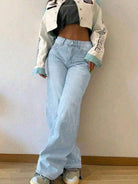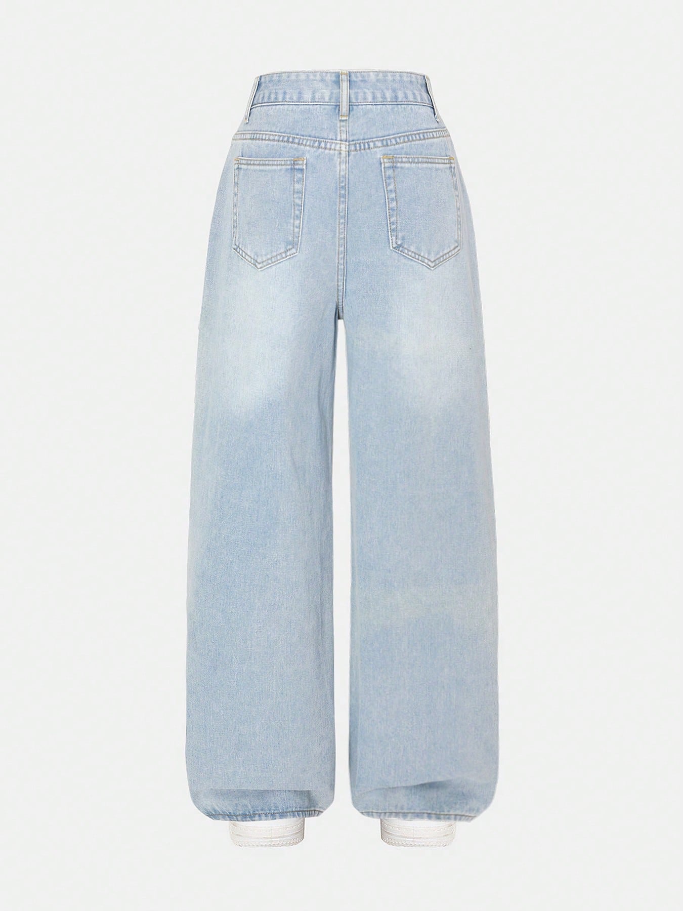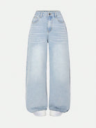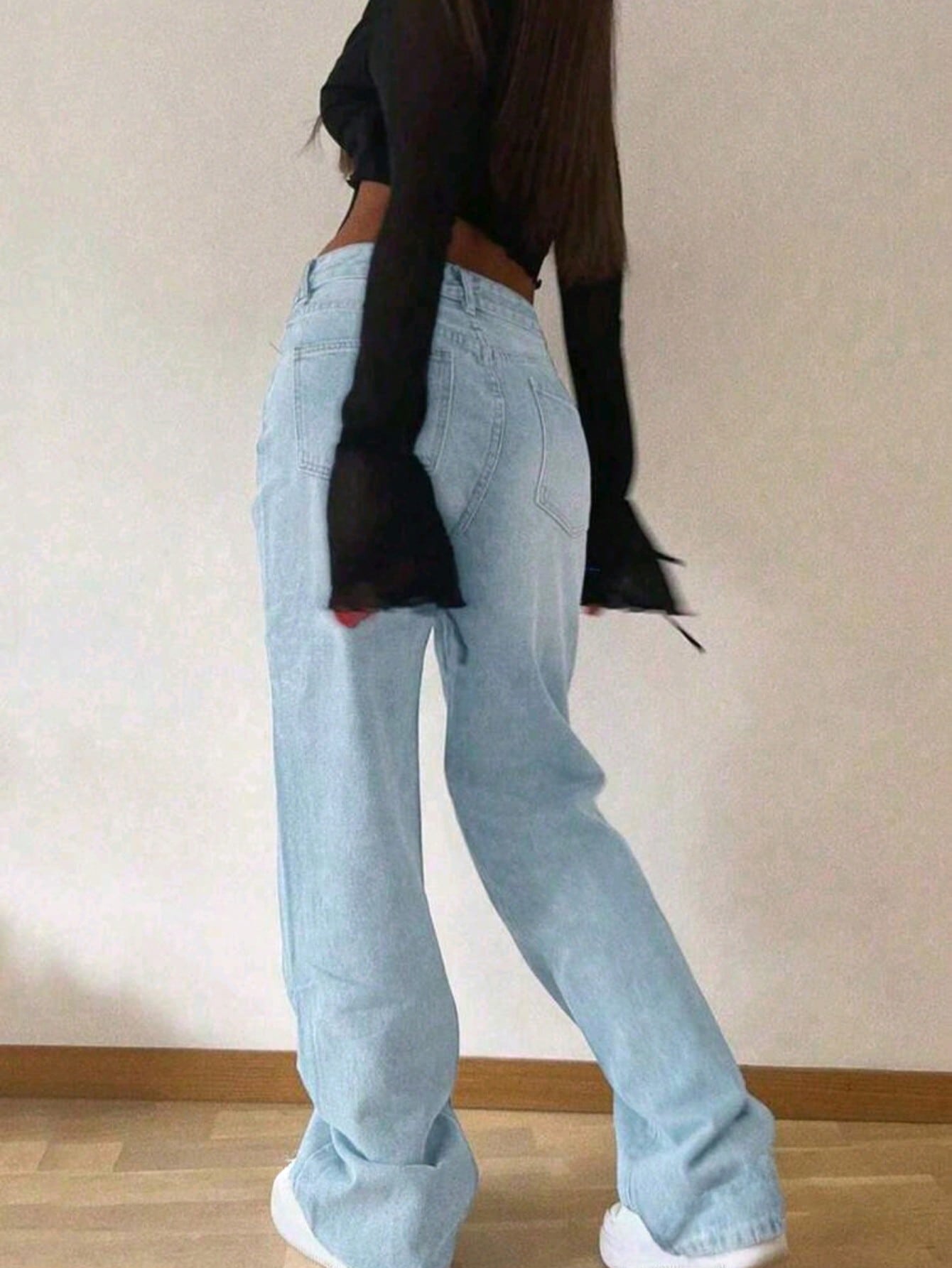 بنطلون جينز عصري للبنات بخصر عالٍ وساق مستقيمة، مناسب للإطلالات الكاجوال
