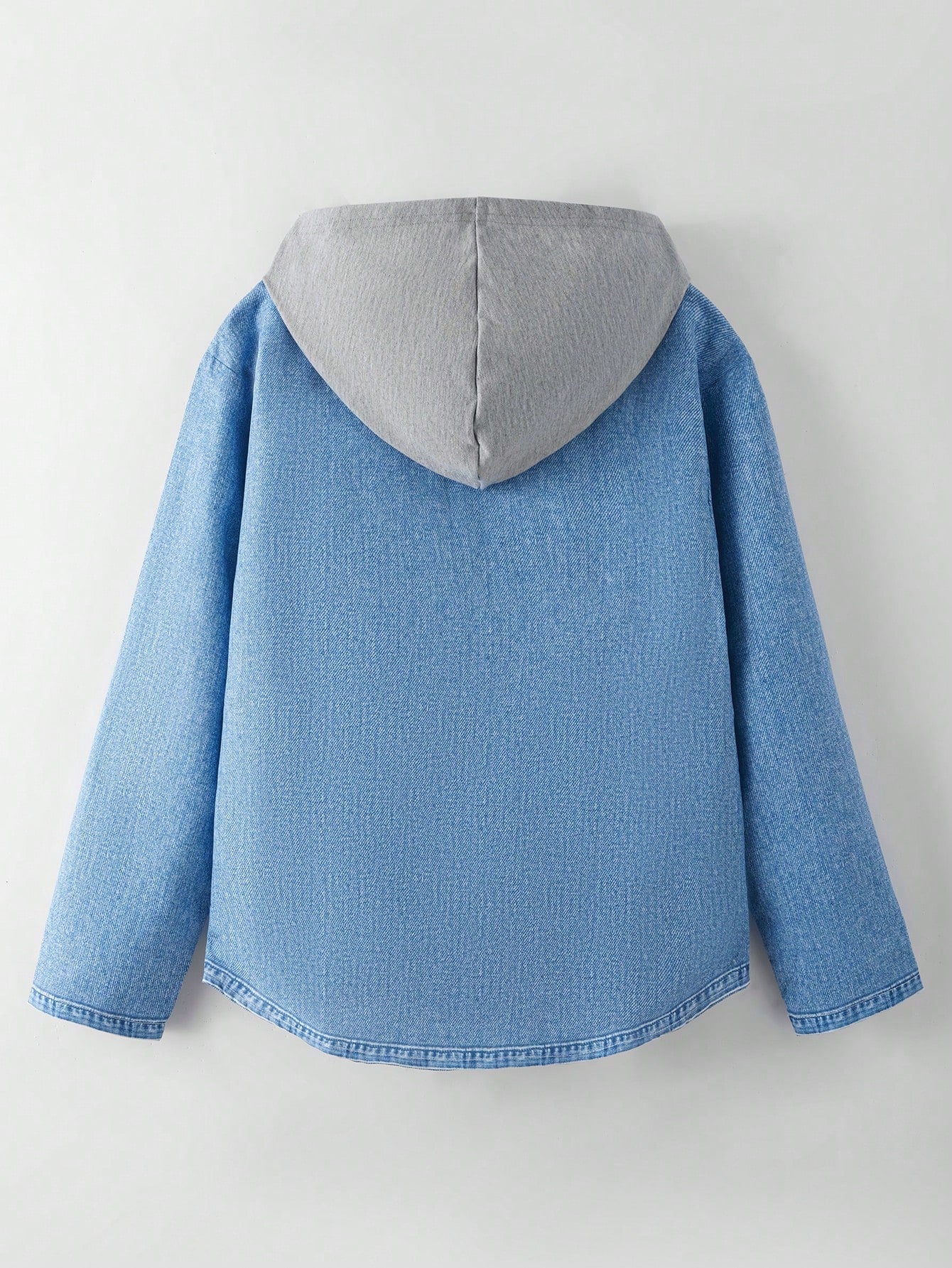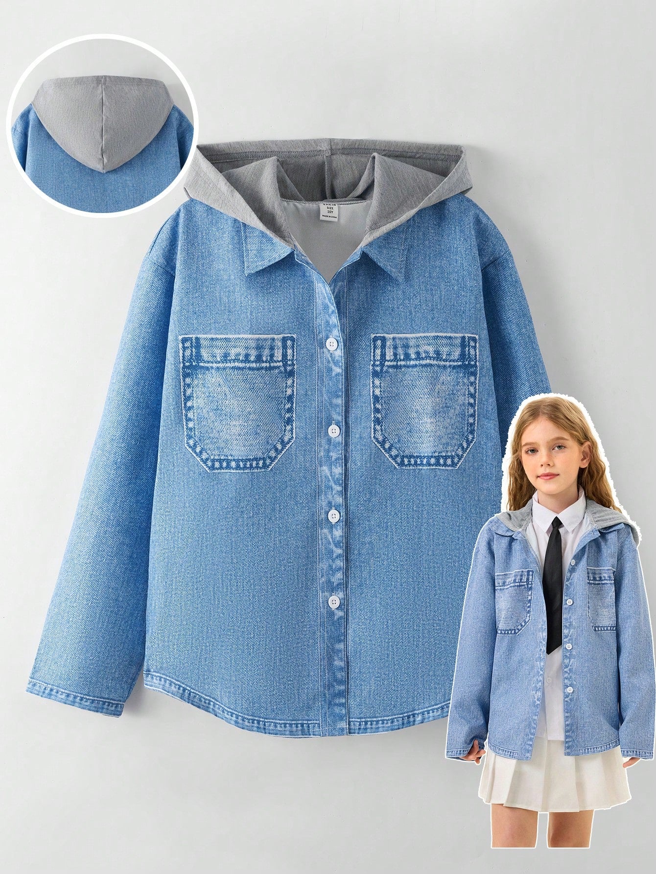 SHEIN Teen Girls Casual All-Match Japan & Korea Style Mid-Length Hooded Shirt, Suitable For School, Travel