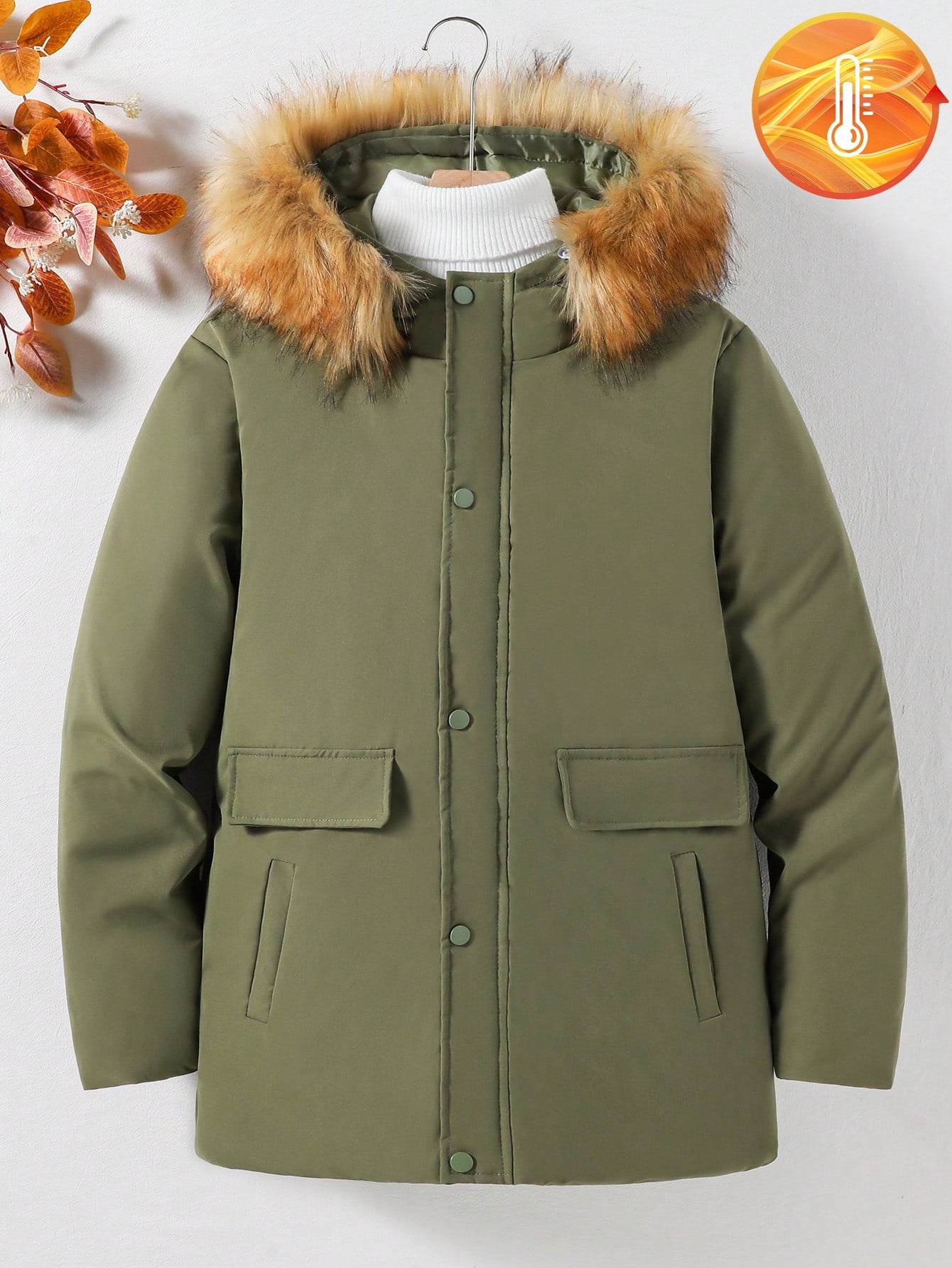 معطف شتوي مبطن بغطاء رأس وياقة من الفرو مناسب للمراهقين