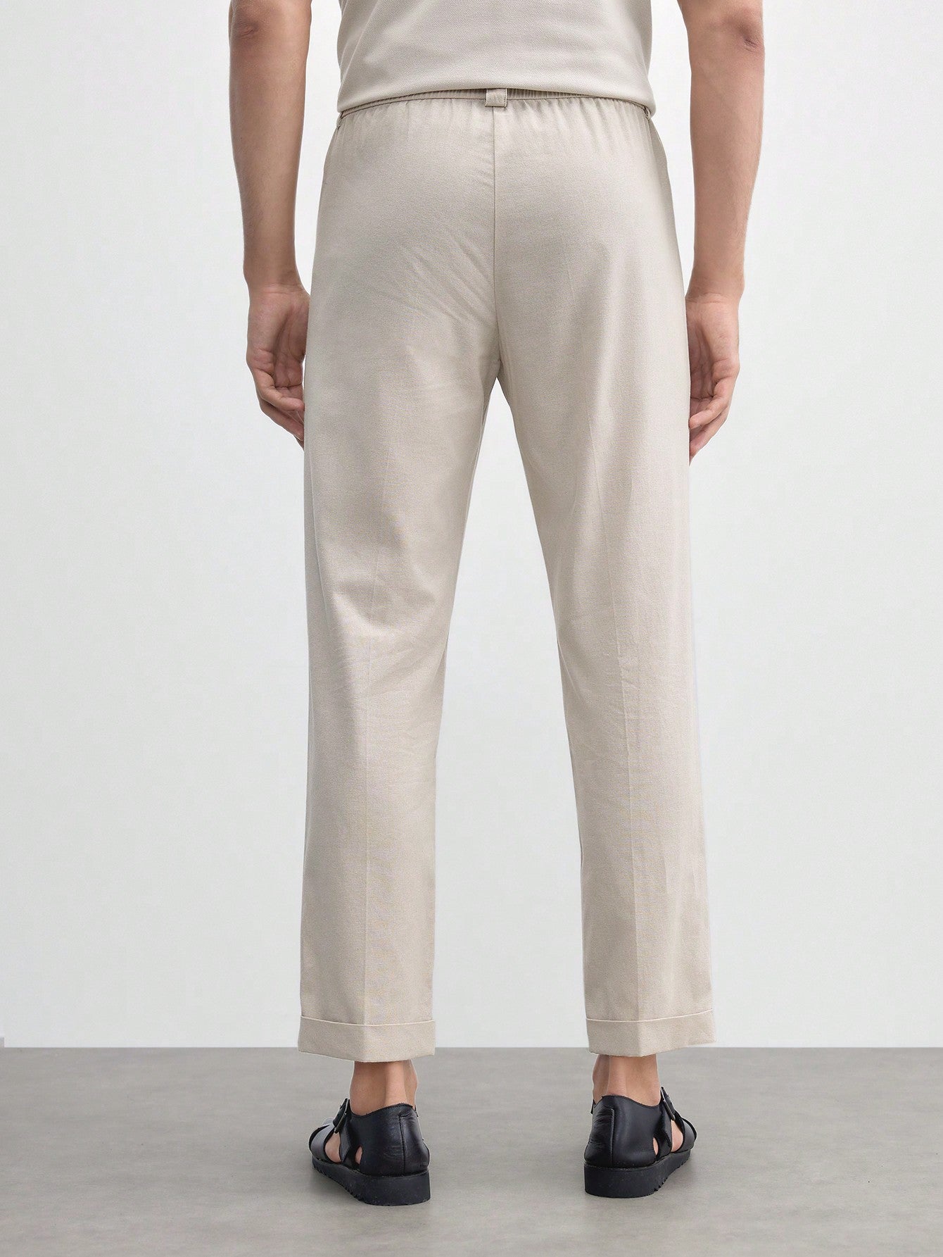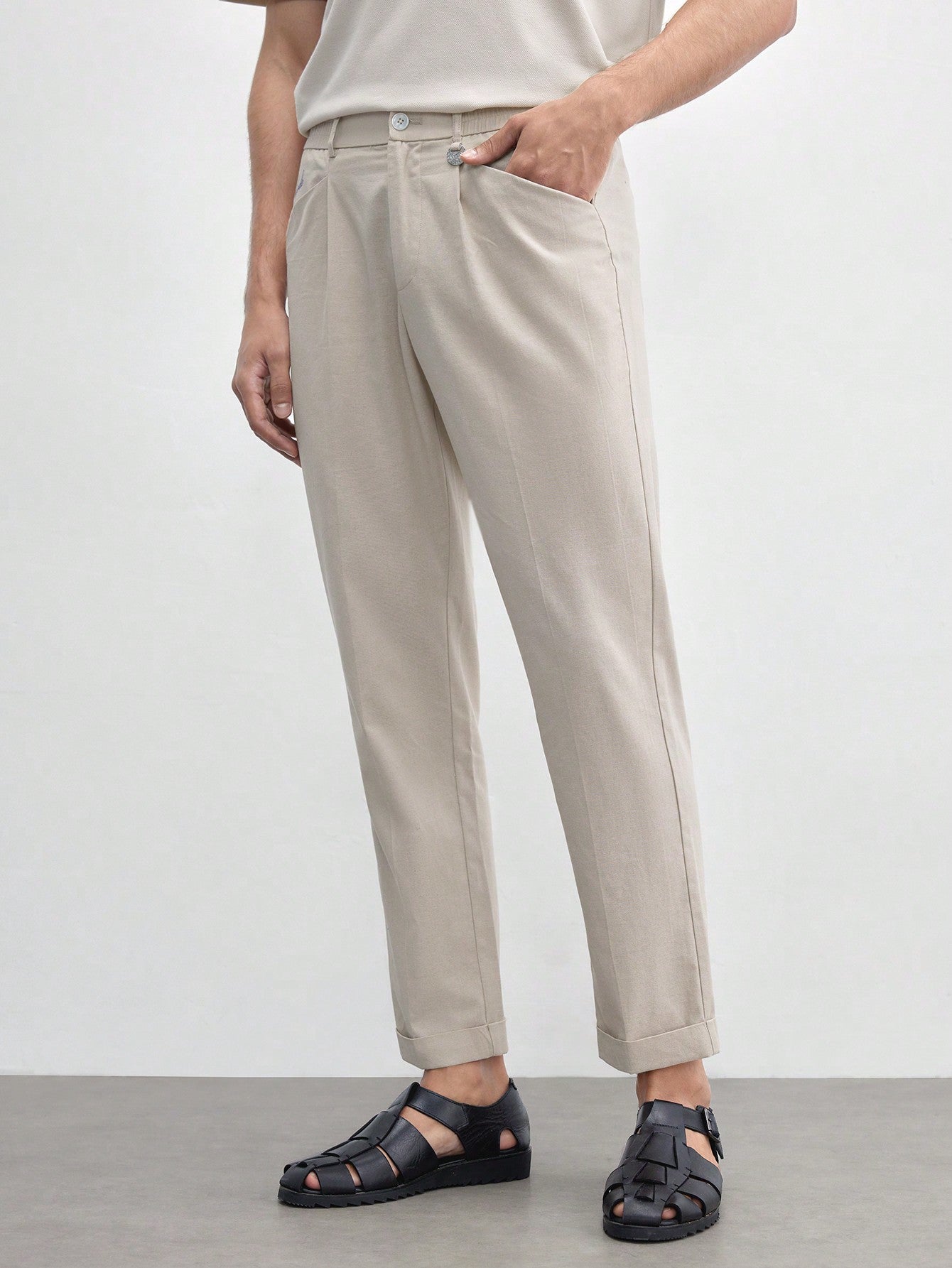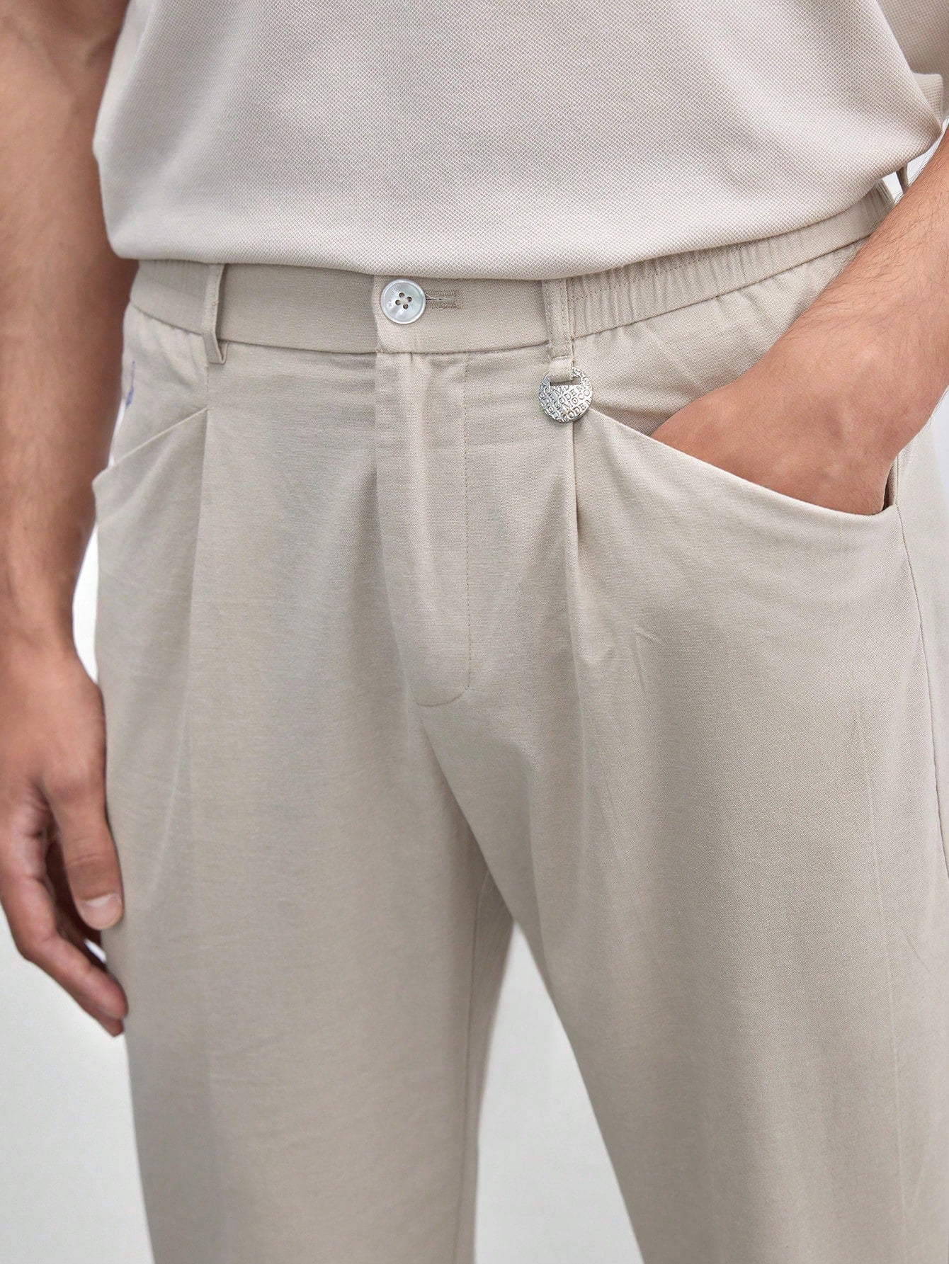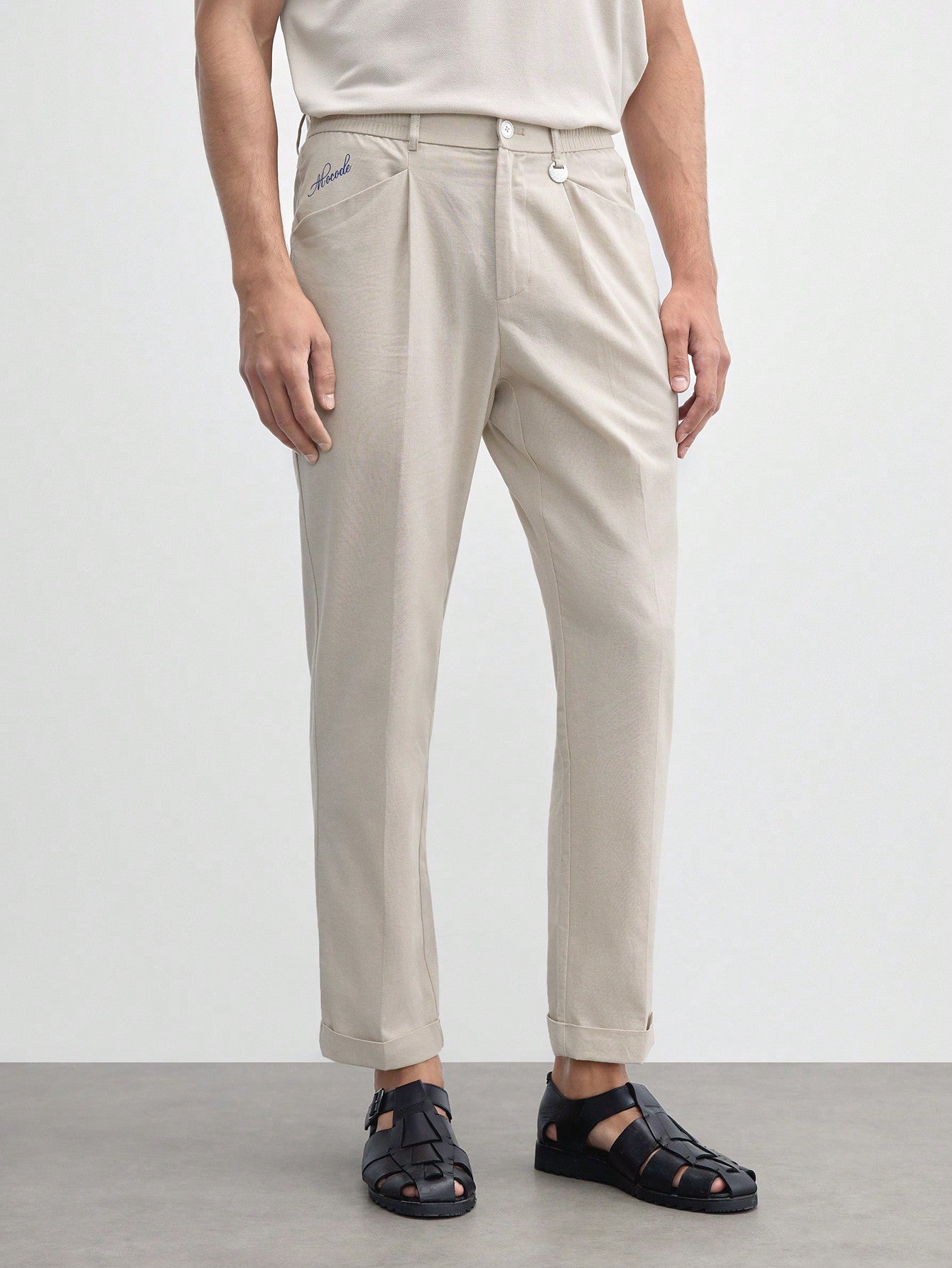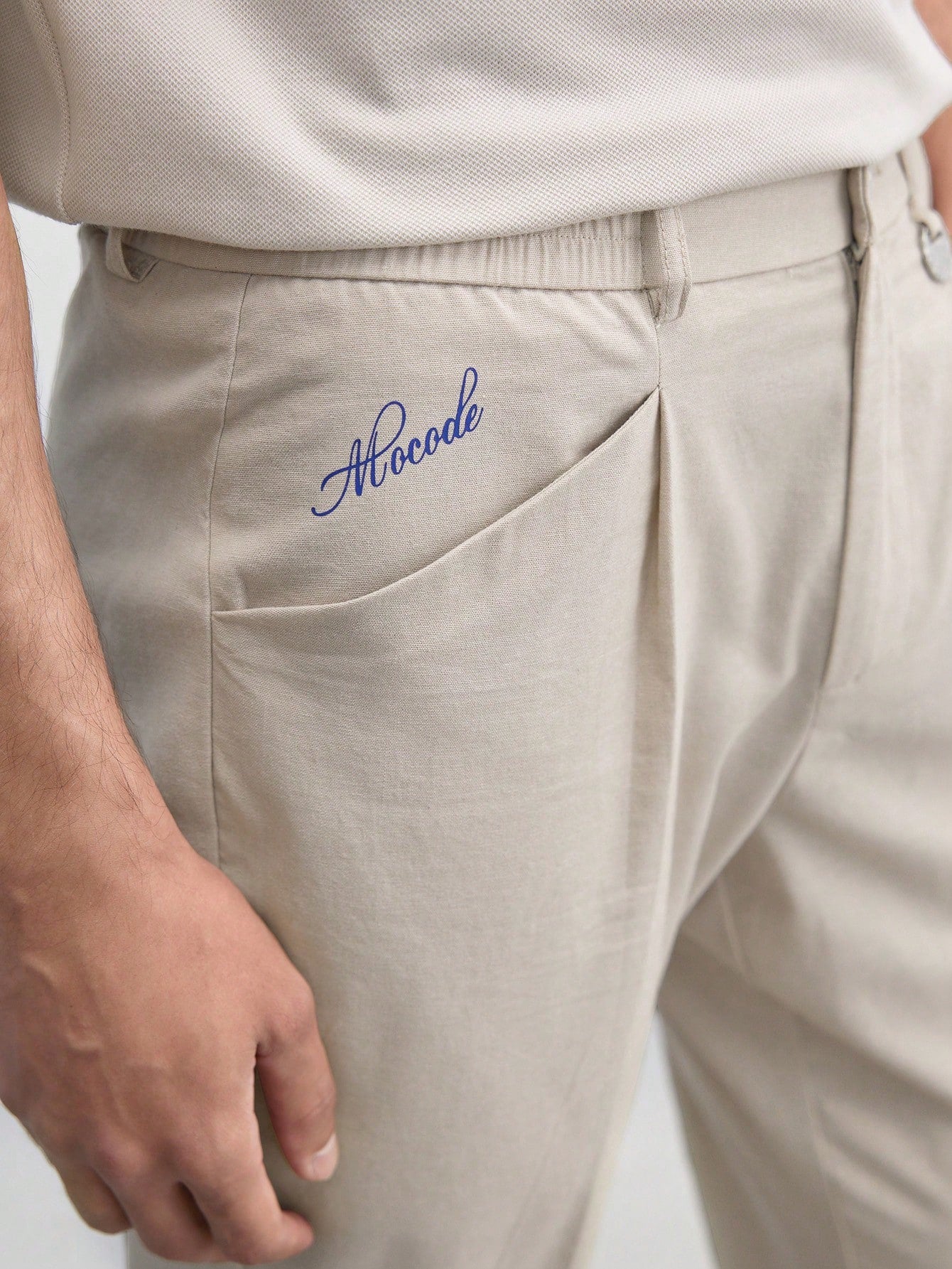 AKNOTIC Business Casual Men's Woven Letter Printed Casual Tapered Pants, Suitable For Daily Wear In Spring