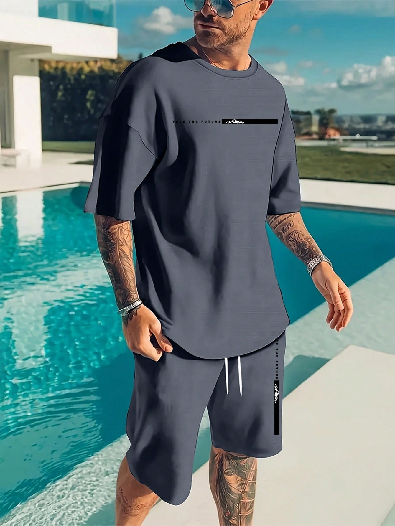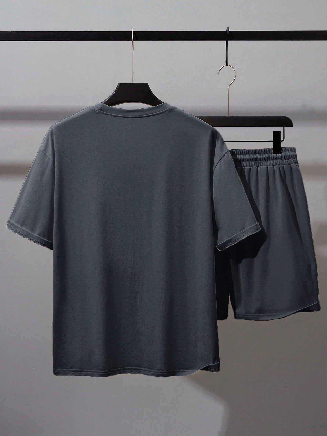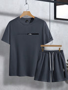 Manfinity Homme Men's Daily Wear Round Neck Short Sleeve T-Shirt & Drawstring Shorts Set, Summer Men