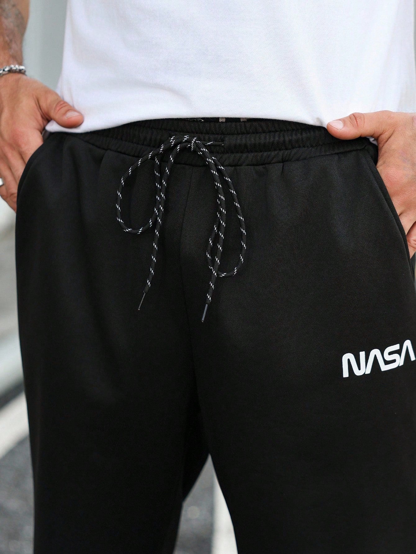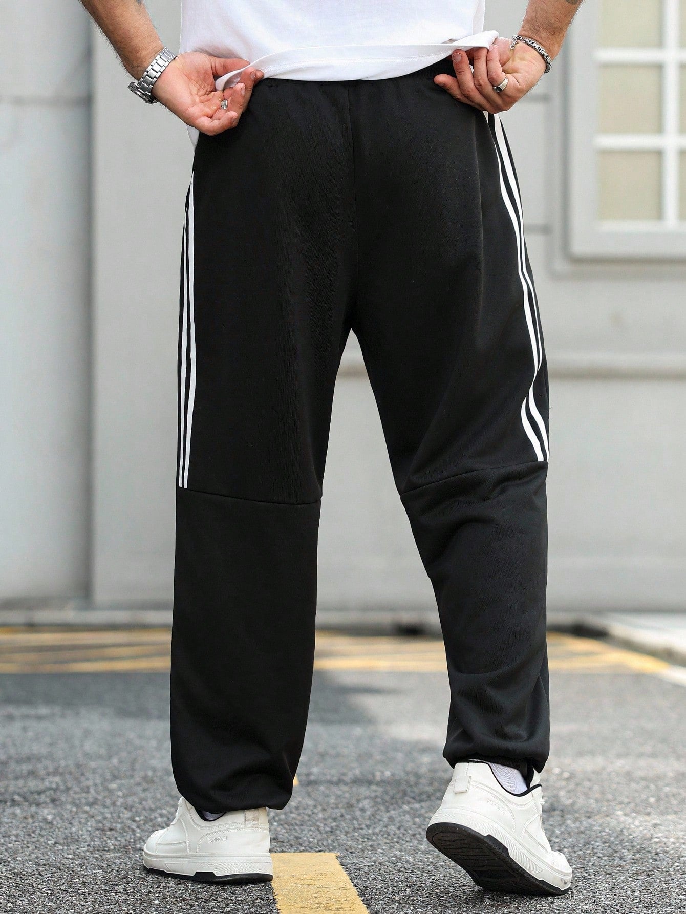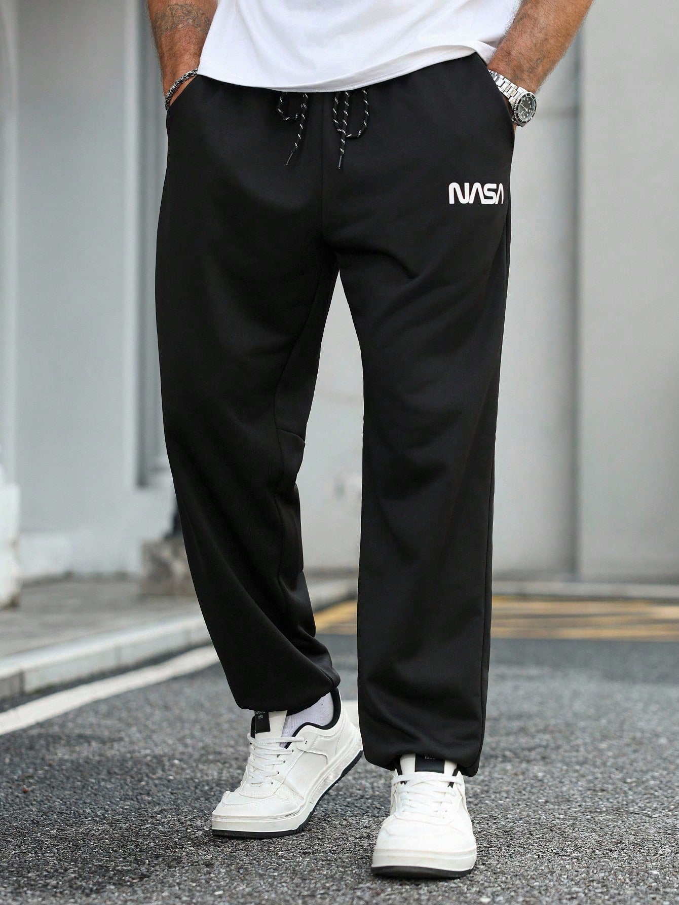 بنطال رياضي رجالي من مانفينيتي هوم، مقاسات كبيرة، كاجوال يومي، بنقشة حروف مخططة ومرقعة.