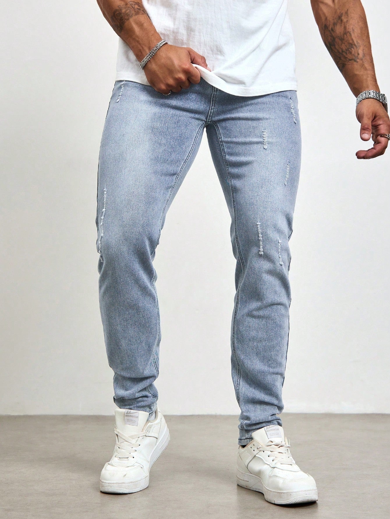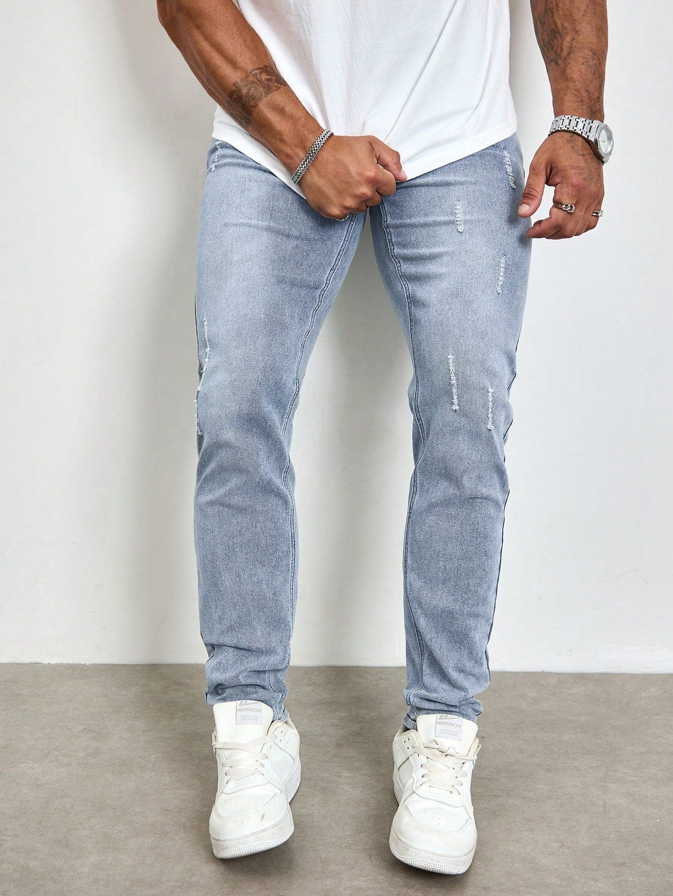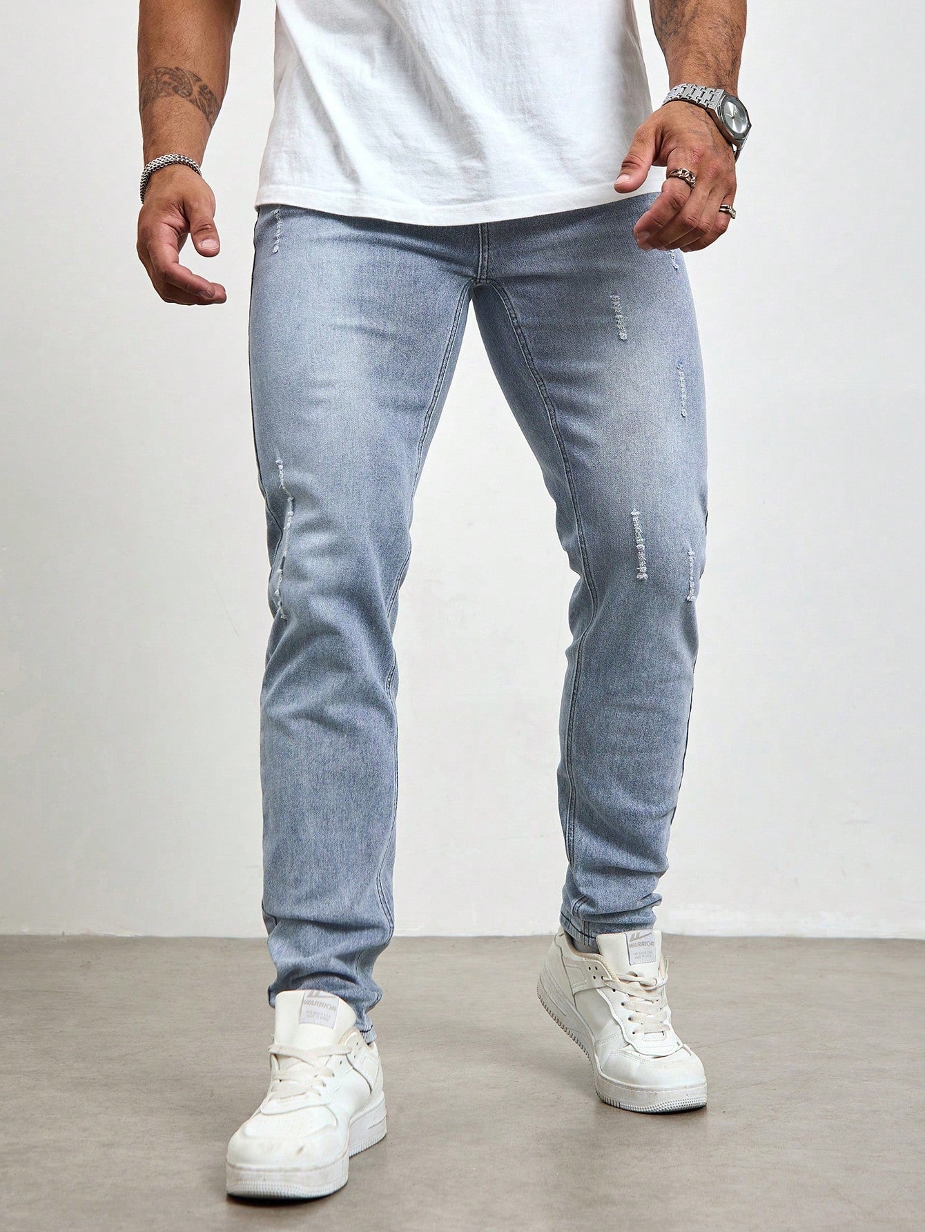 Manfinity Homme Plus Size Men's Distressed Design Casual Street Style Denim Jeans