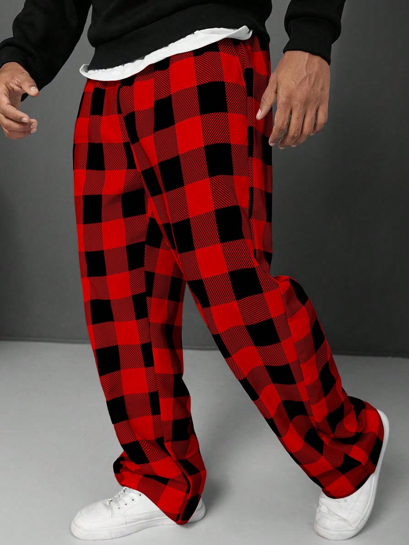 Manfinity Homme Plus Size Men's Plaid Print Casual Loose Straight Pants