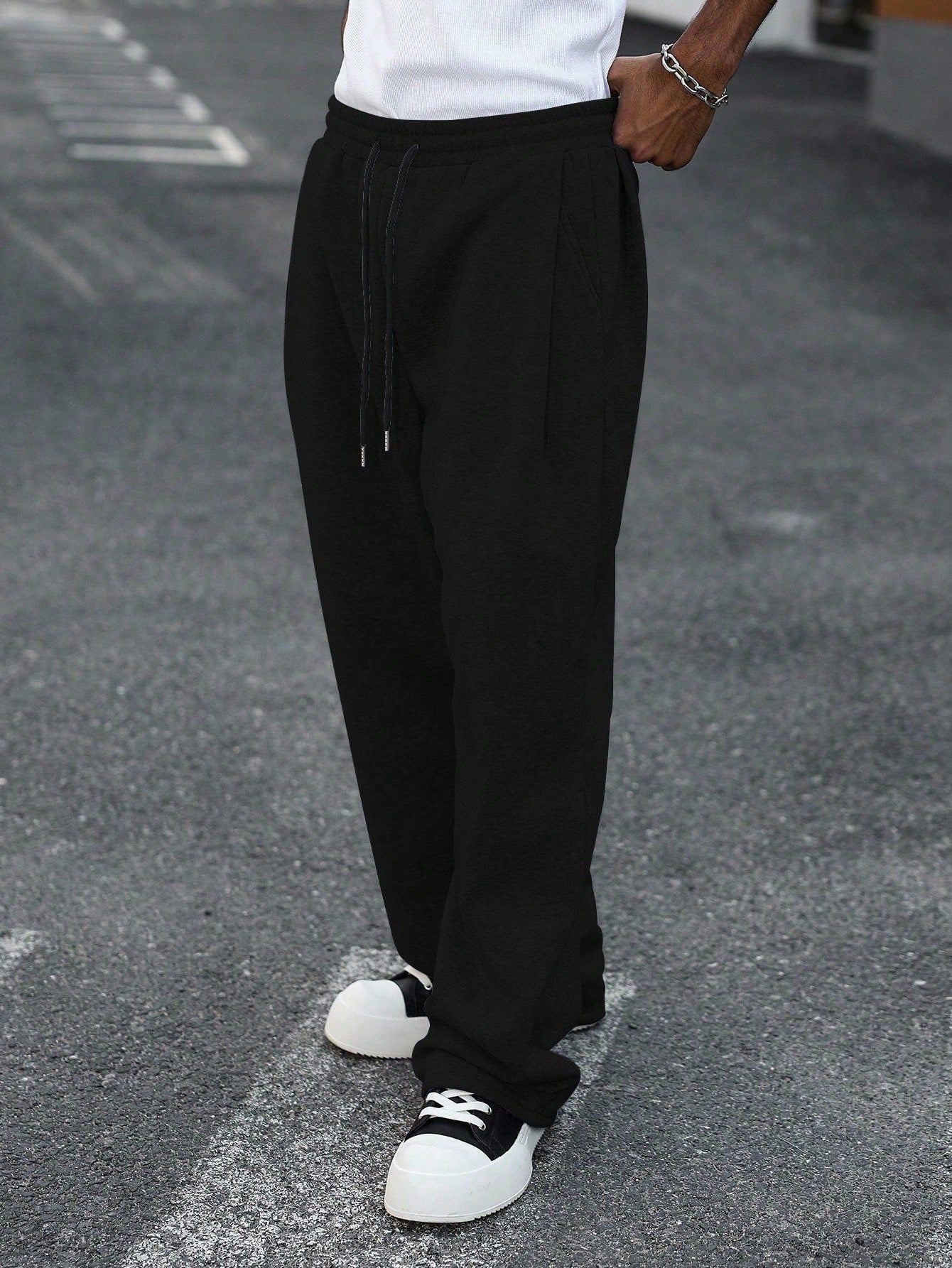 بنطال رياضي رجالي واسع الساقين من مانفينيتي هايب مود، بخصر برباط، بنطال رياضي واسع الساقين، بنطال رياضي رجالي واسع
