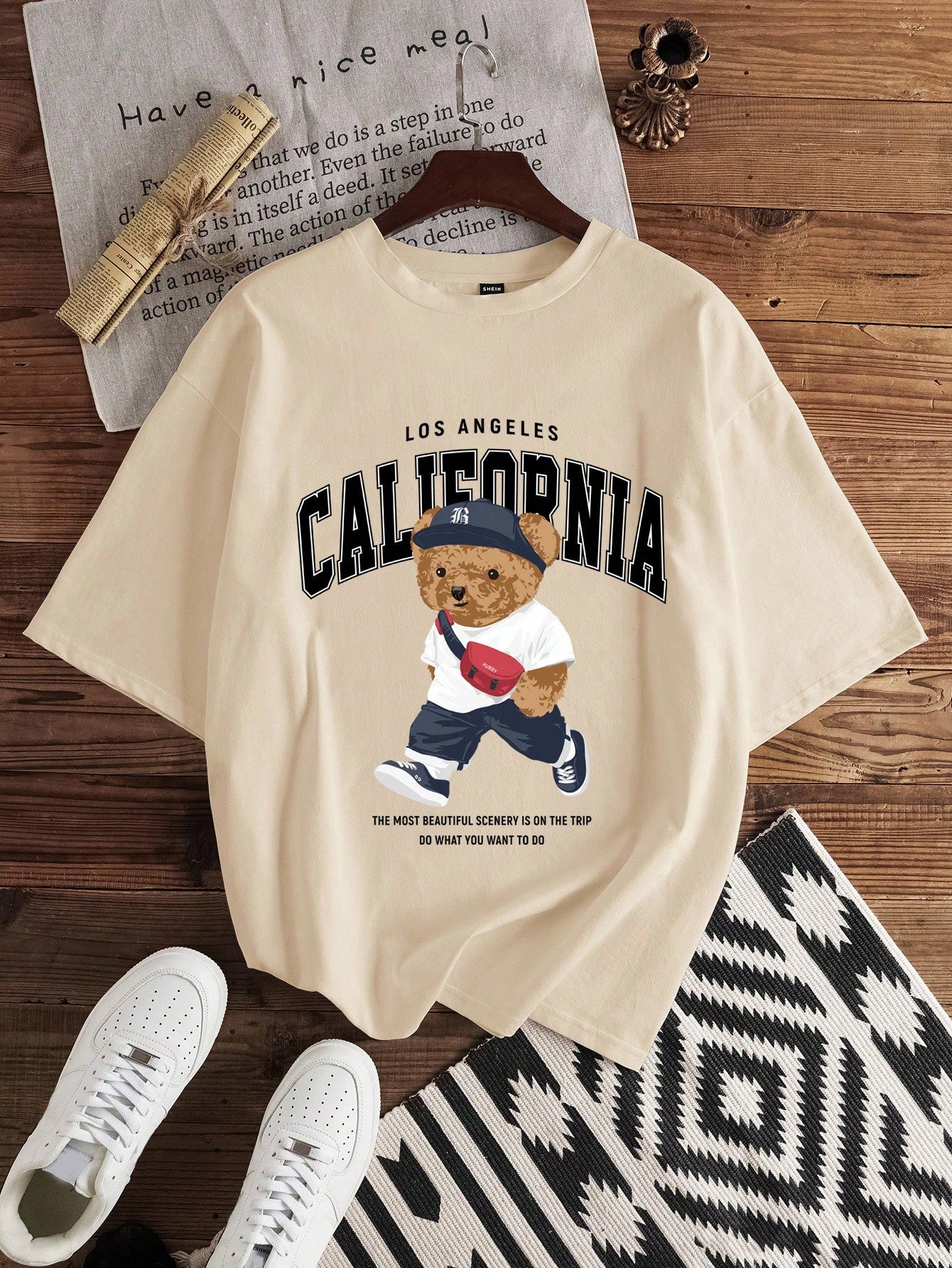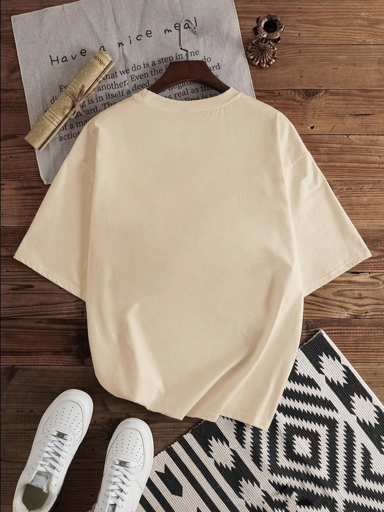 تي شيرت مانفينيتي جويساي للرجال بأكمام قصيرة ومقاس كبير، لون كاكي غامق، بقصة عادية