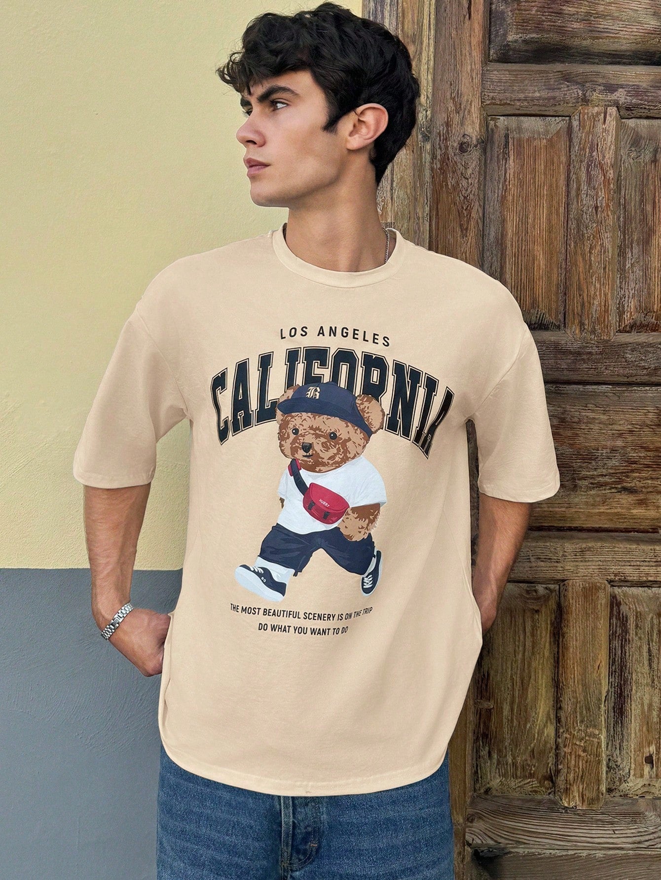 Manfinity Joysei Men's Oversized Short Sleeve T-Shirt In Deep Khaki, Regular Fit