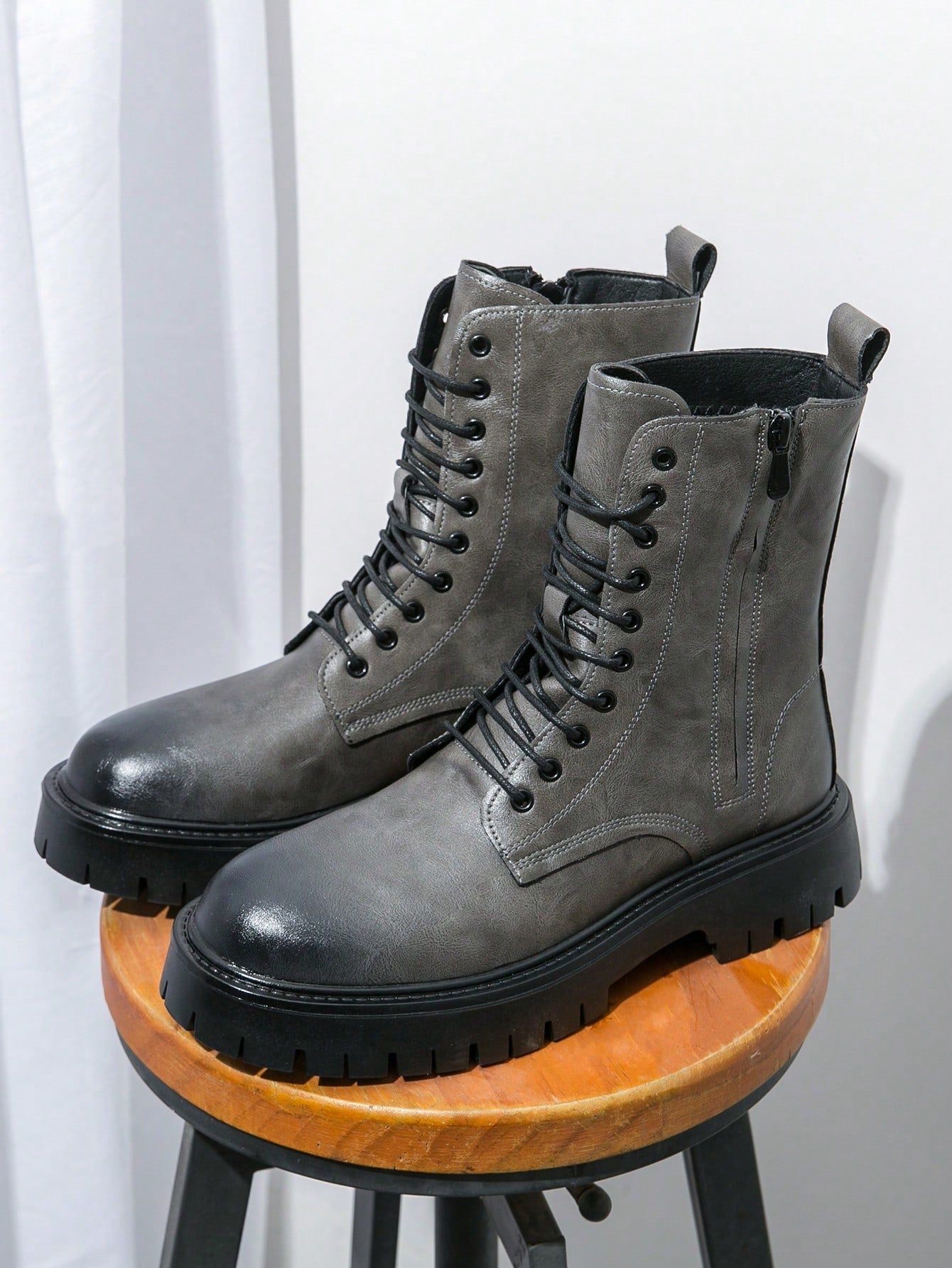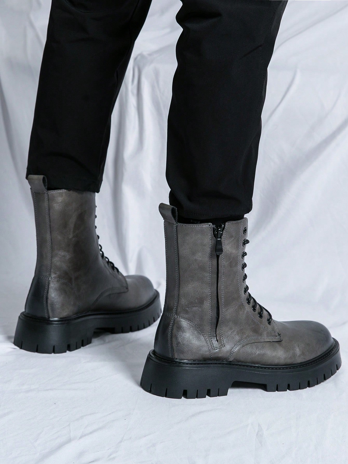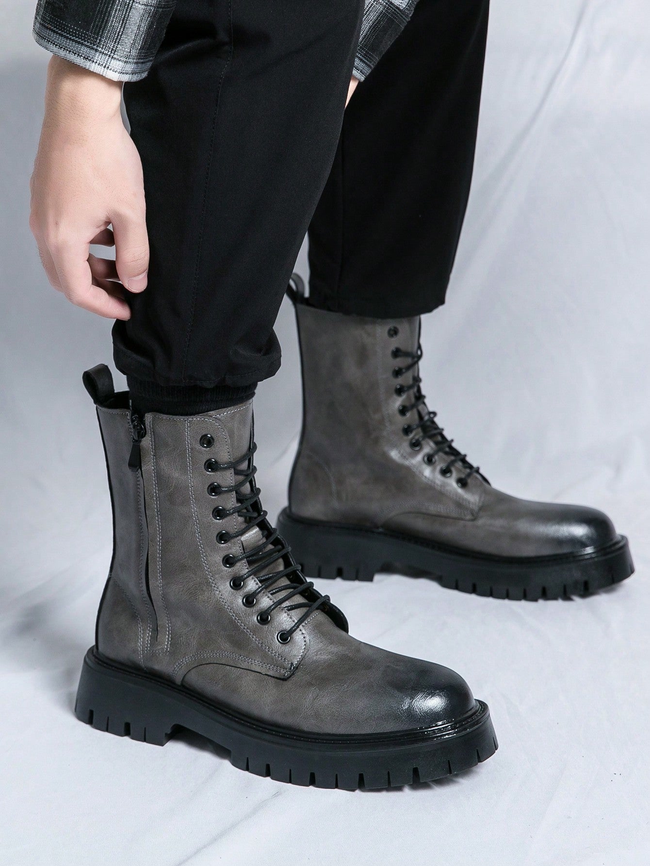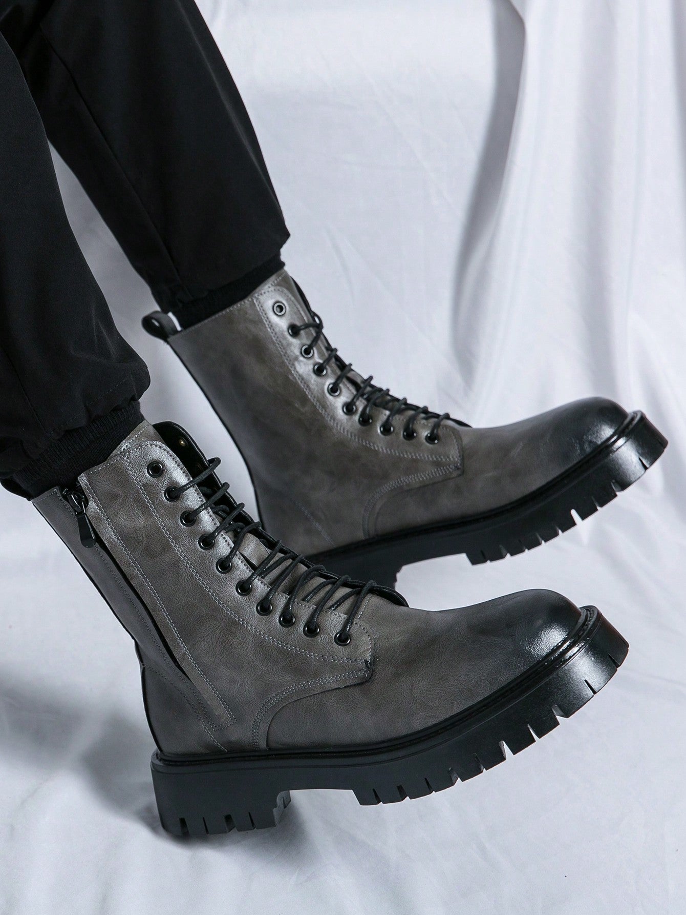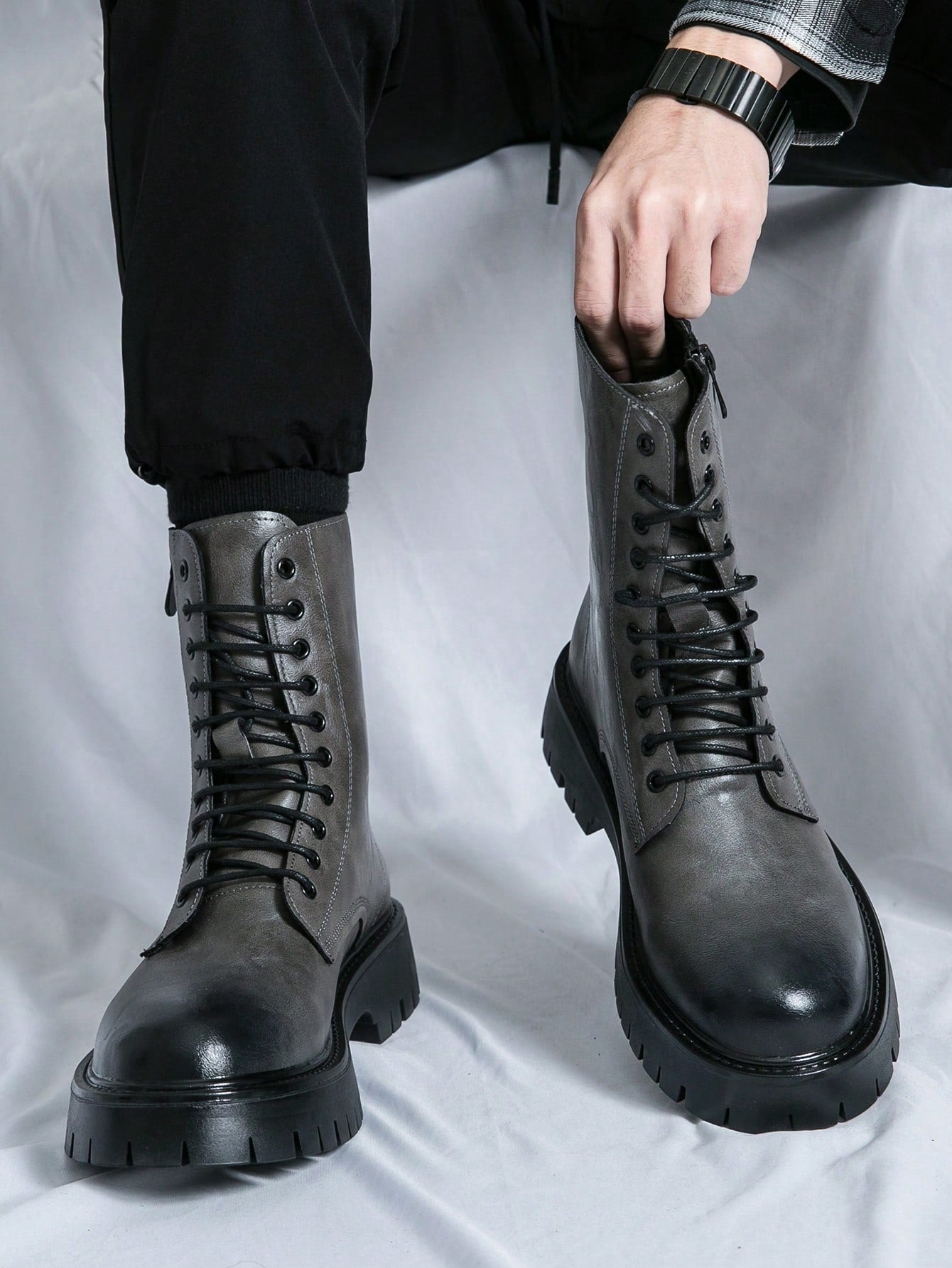 men Men's High Top Lace-Up Fashion British Style Gray Motorcycle Boots