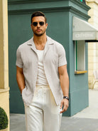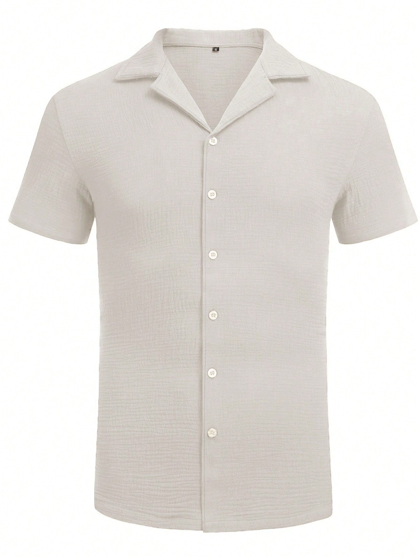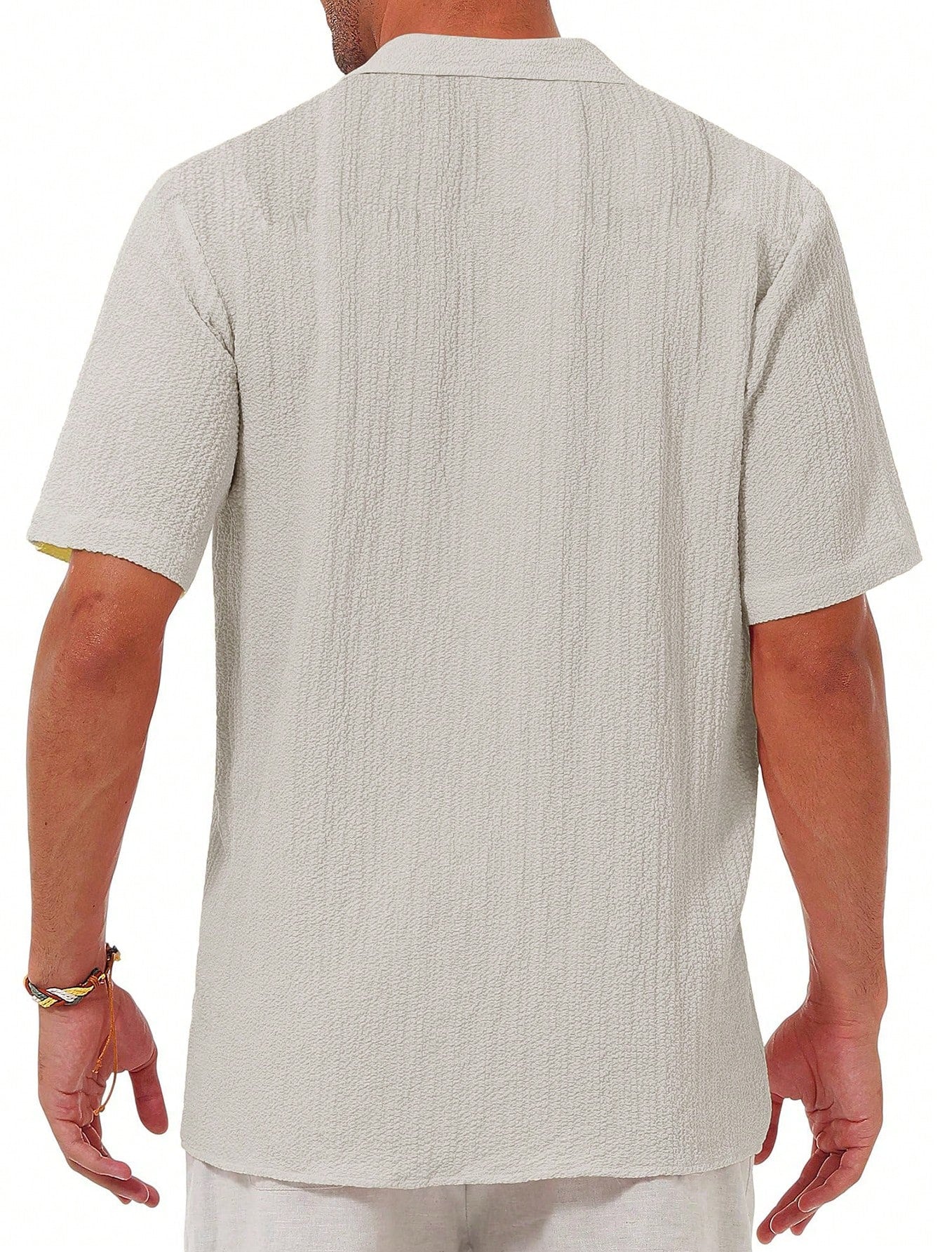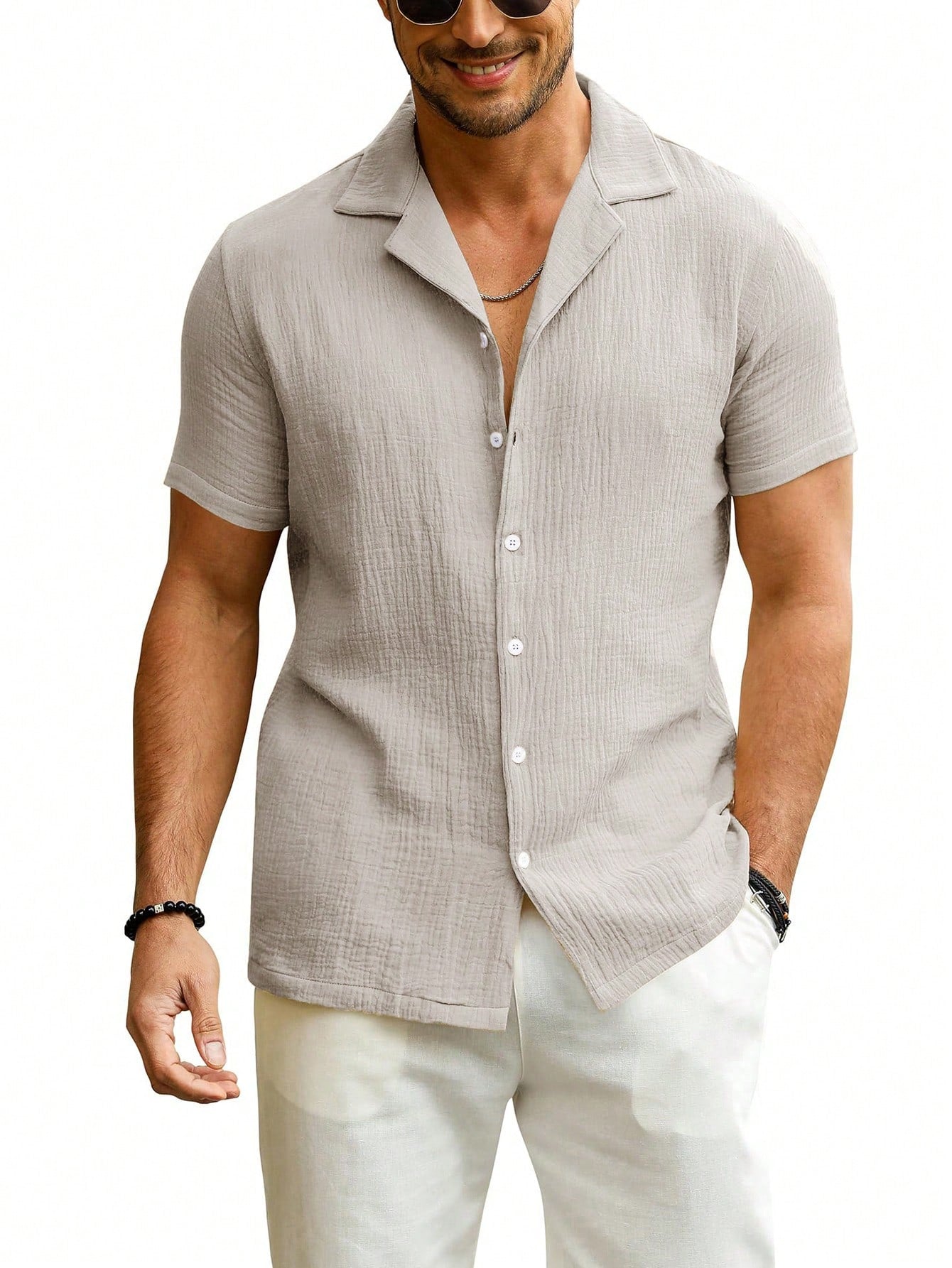 Men's Slim Fit Cuban Collar Casual Short Sleeve Guayabera Shirt, Suitable For Wedding, Beach, Summer