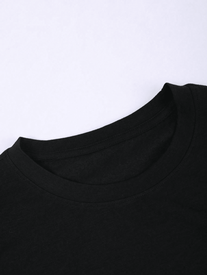 تيشيرت للجنسين من القطن المضلع 100% - طباعة حروف إنجليزية