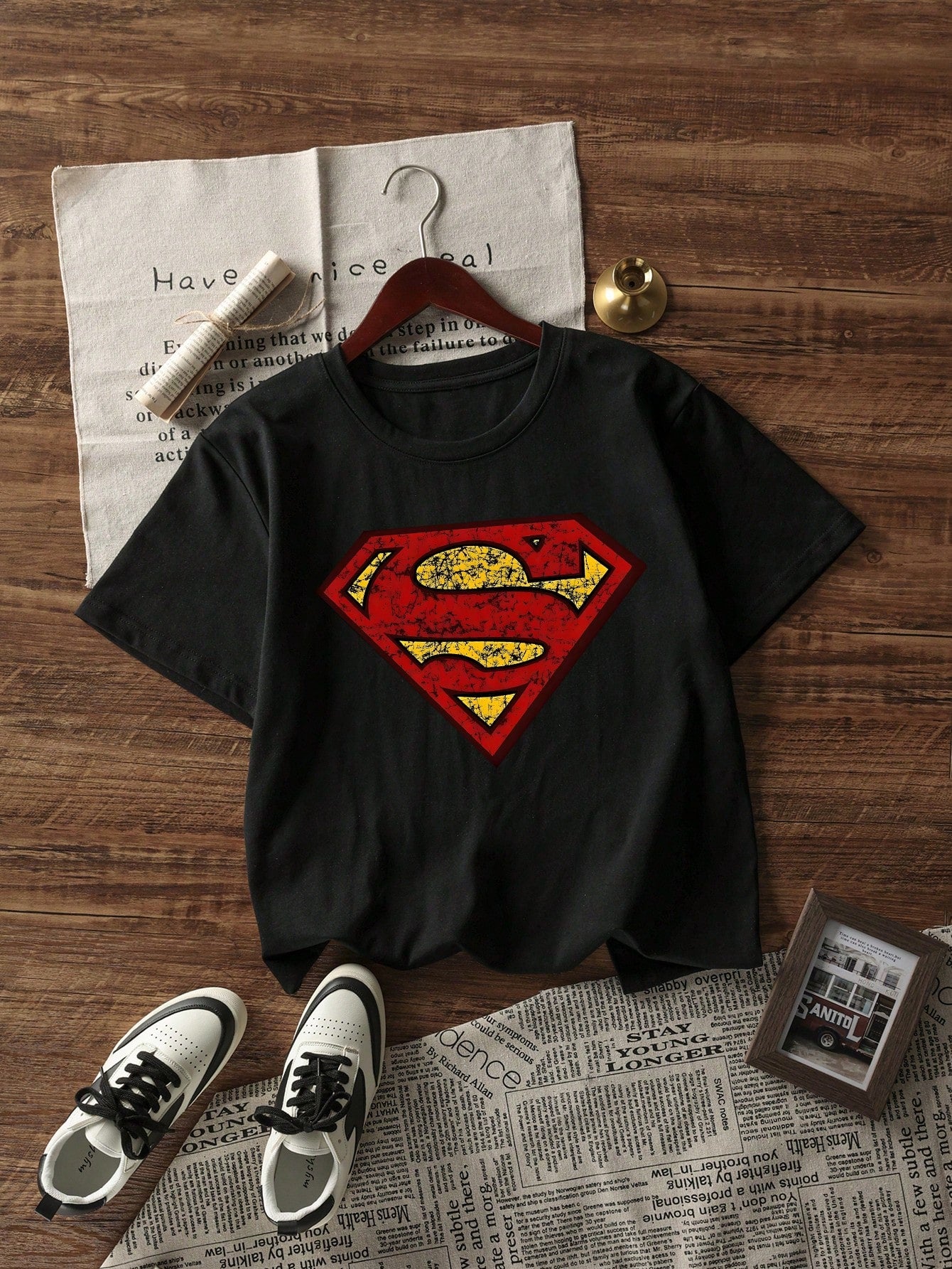تي شيرت جرافيكي من Warner Bros Collaboration، تي شيرت رجالي صيفي كاجوال بأكمام قصيرة بطبعة كرتونية
