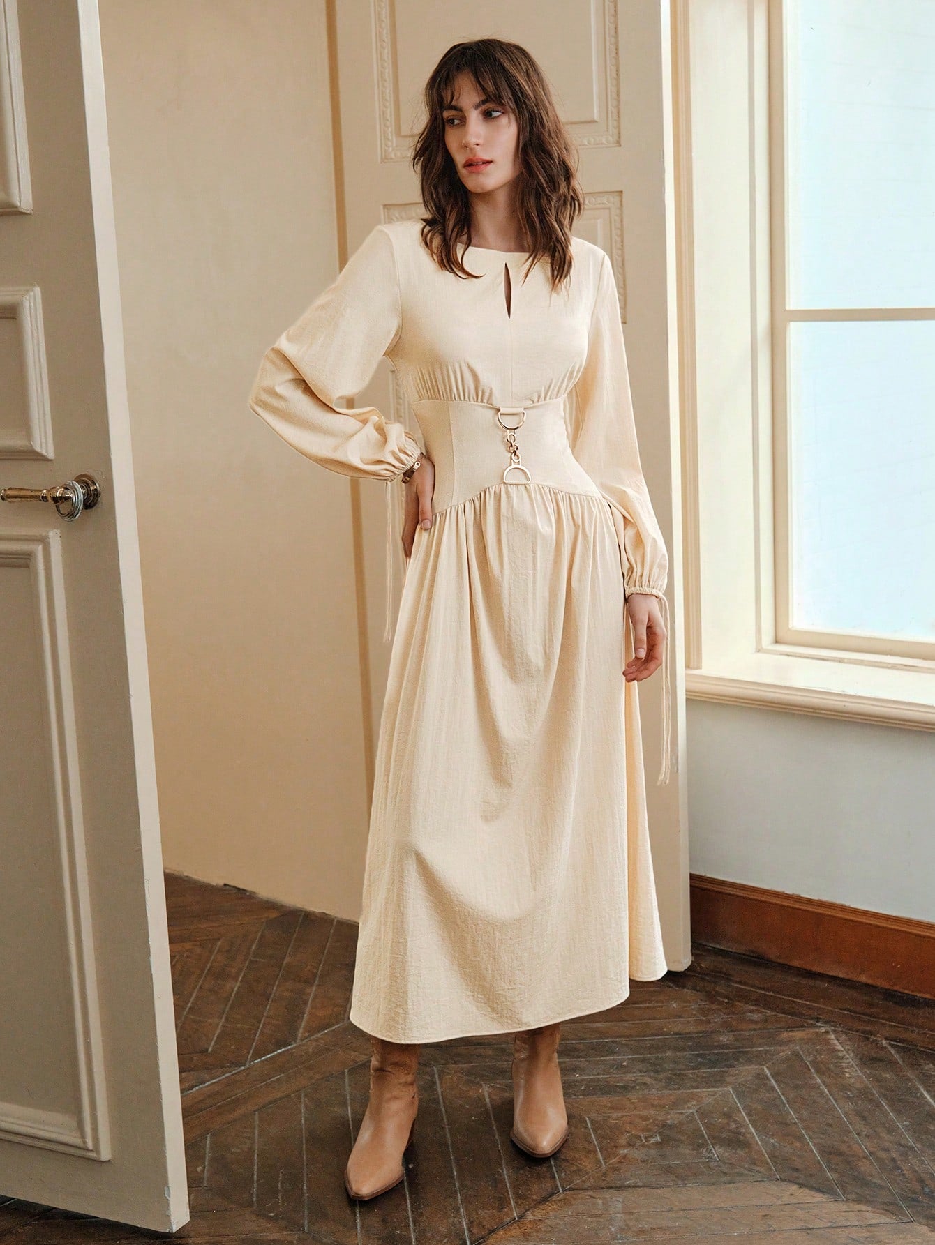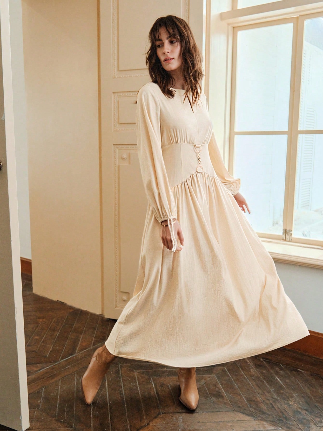 Anewsta Solid Chain Detail Dress