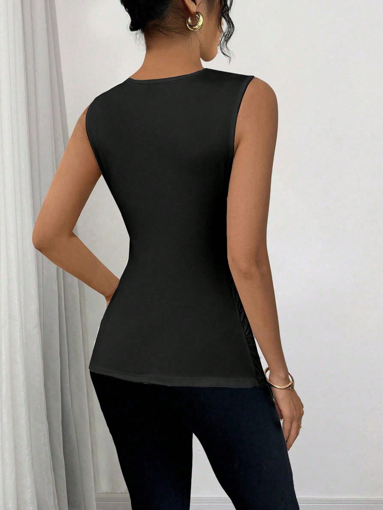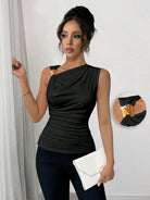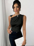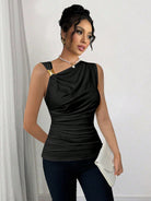 Chiquease Women's Spring/Summer Fashion Elegant Sexy Sleeveless Tank Top, Metal Decor Draped Neck Crop
