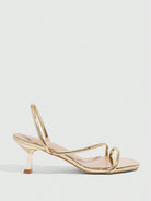 صندل CUCCOO SZL نسائي أنيق باللون الذهبي بحزام رفيع مثير مفتوح من الخلف بكعب منخفض ومقدمة مربعة