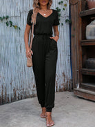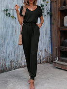 EMERY ROSE Solid Knot Front Slant Pocket Tee Jumpsuit