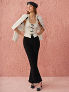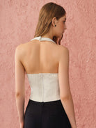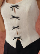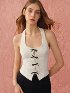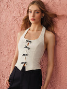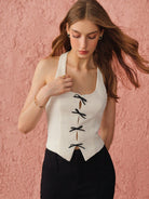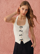Enchnt Romantic Fall Holiday White Bow Tie Decor Simple Camisole,Cute Girly Fitted Outfits