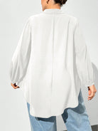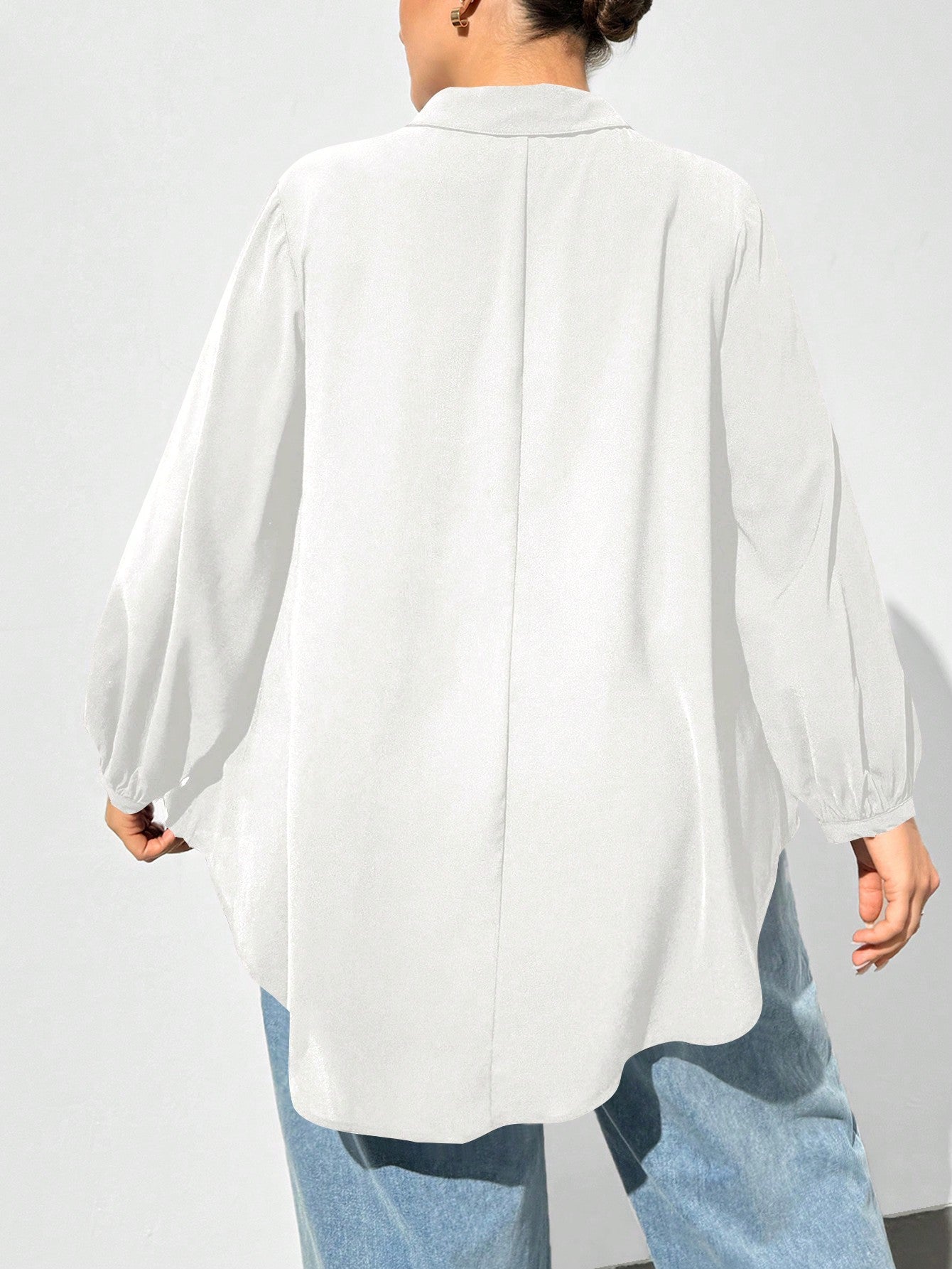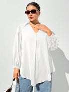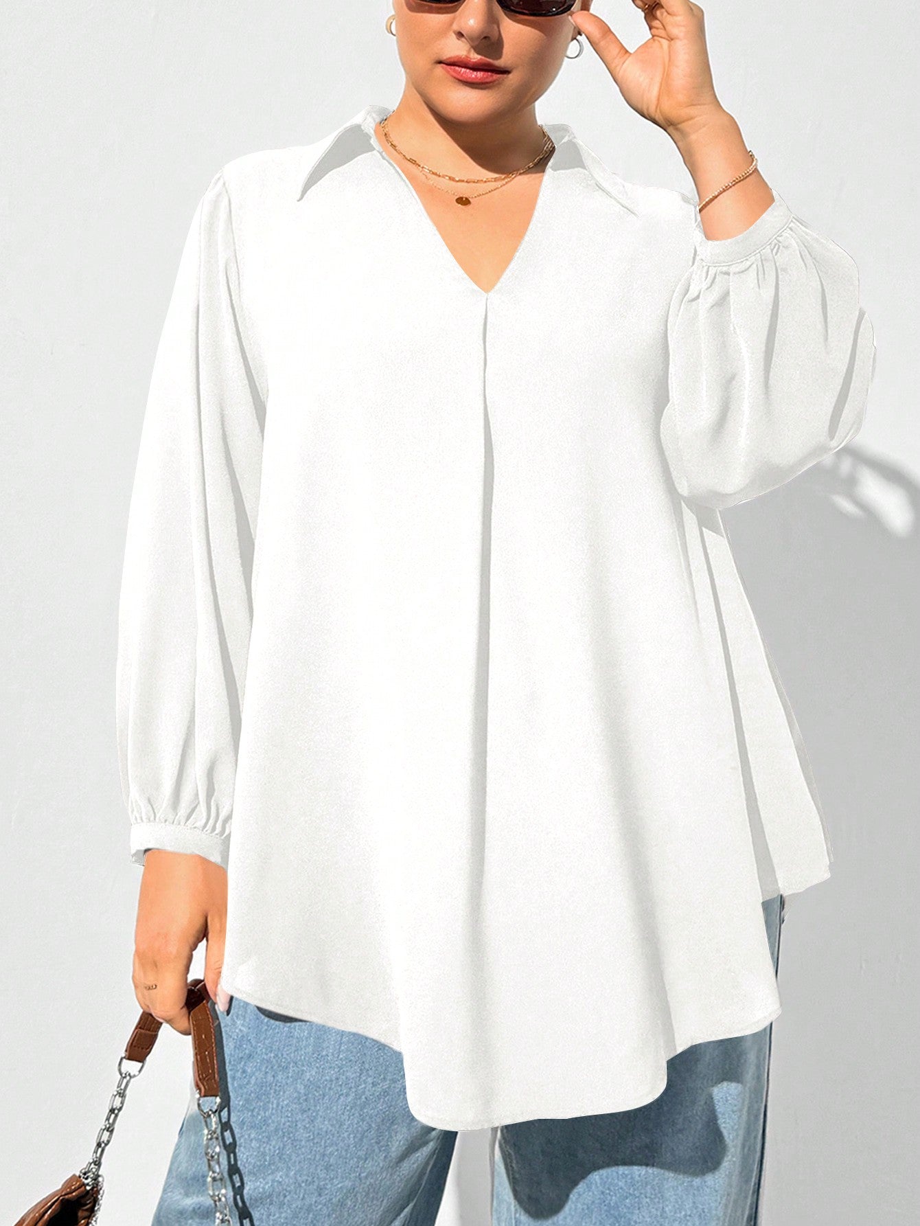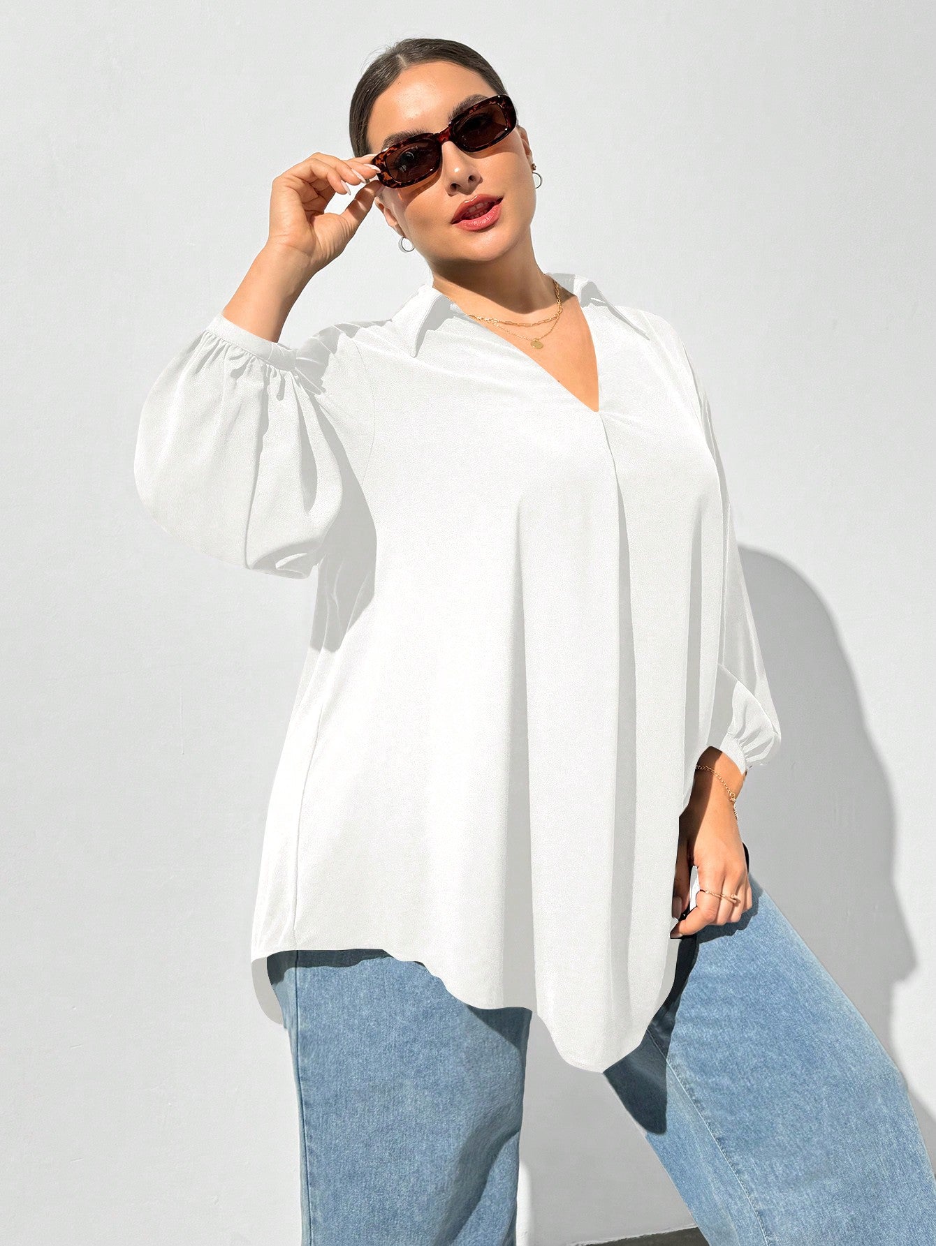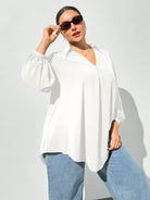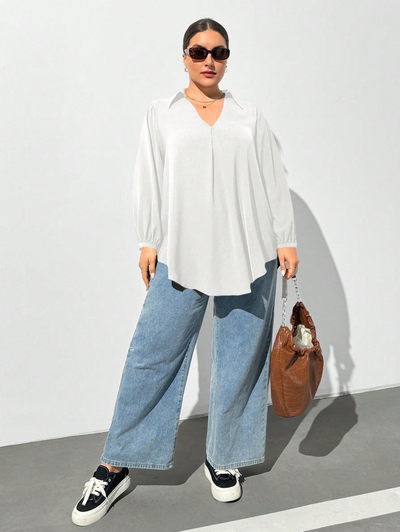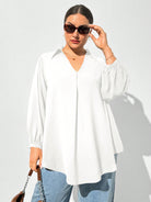 قميص Essnce Plus Size نسائي كاجوال فضفاض ومريح برقبة على شكل حرف V وأكمام طويلة باللون الأسود، مناسب للخريف والشتاء