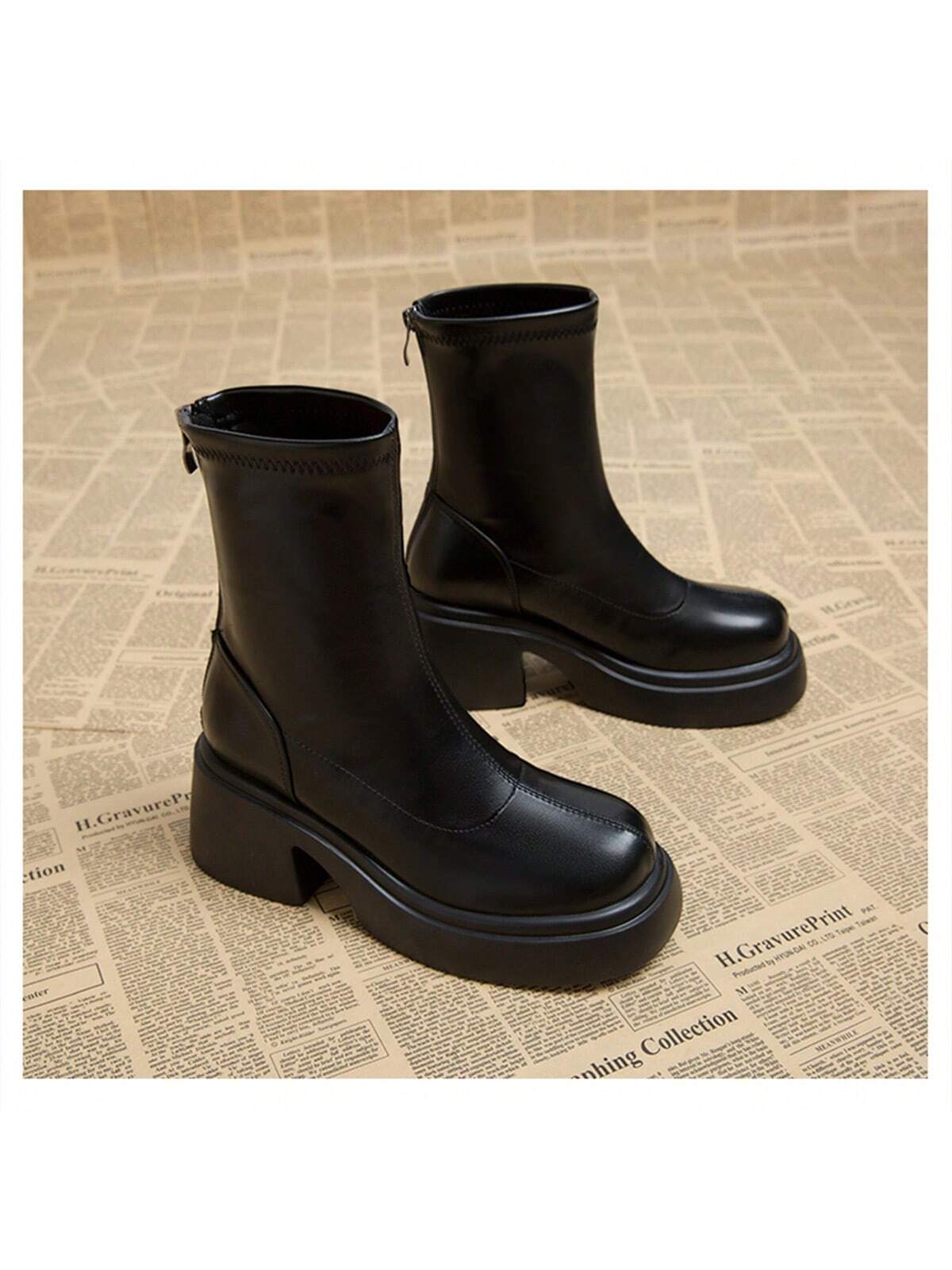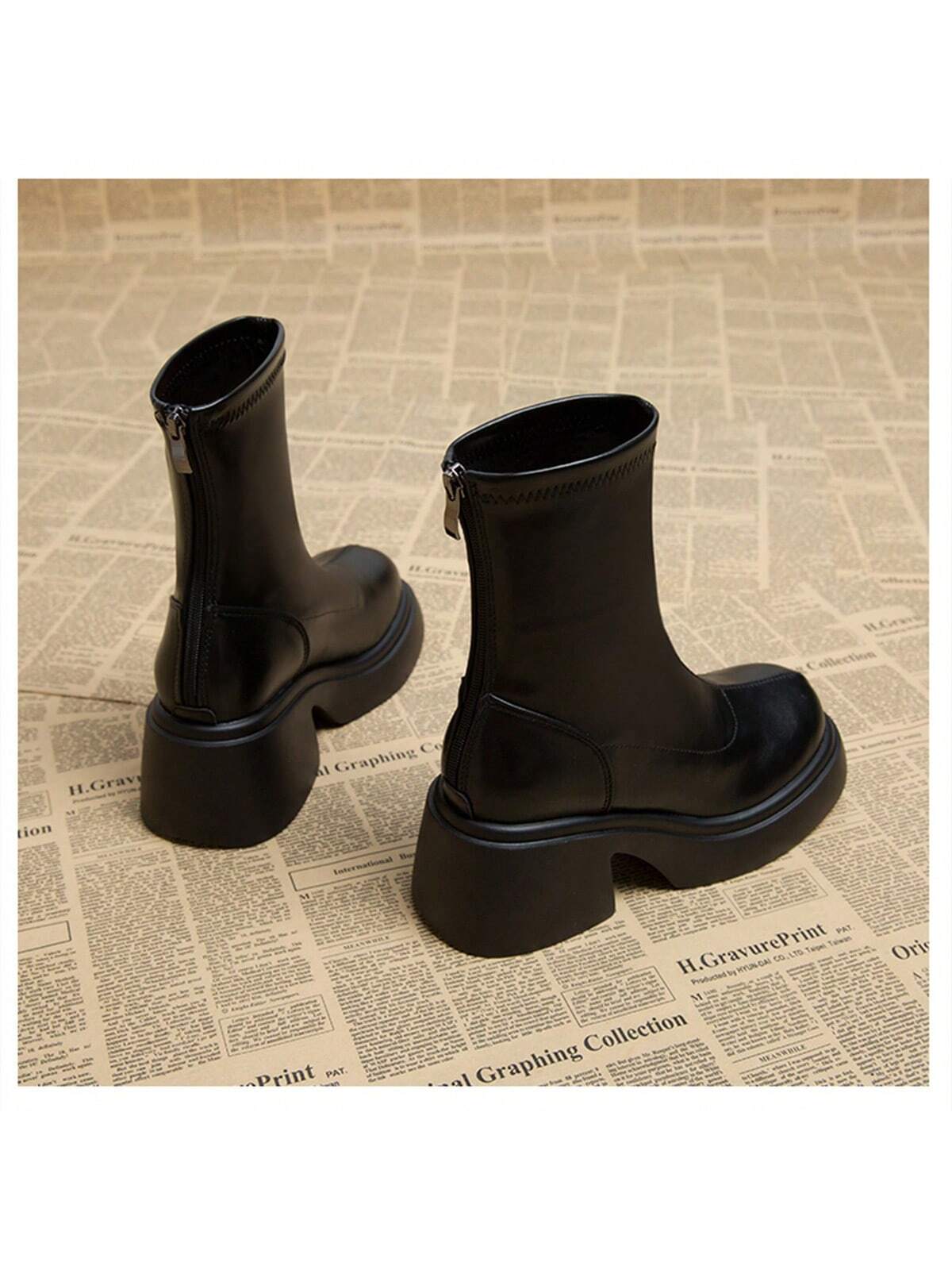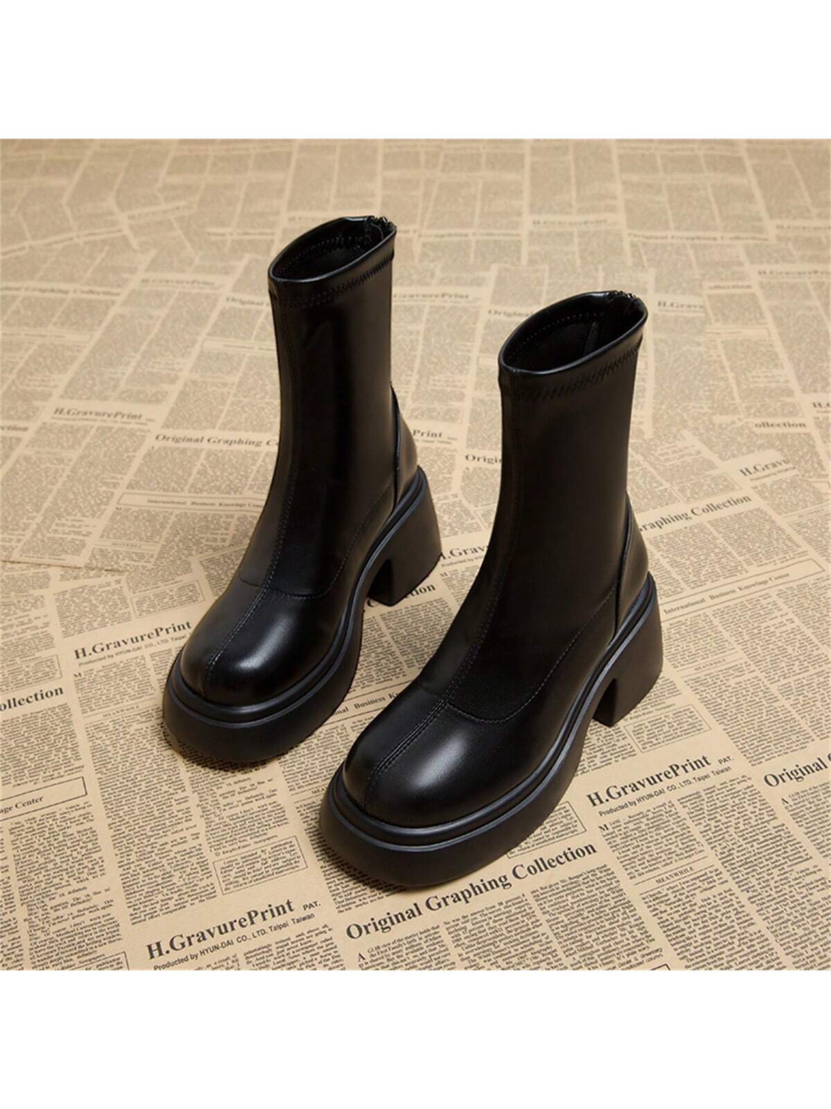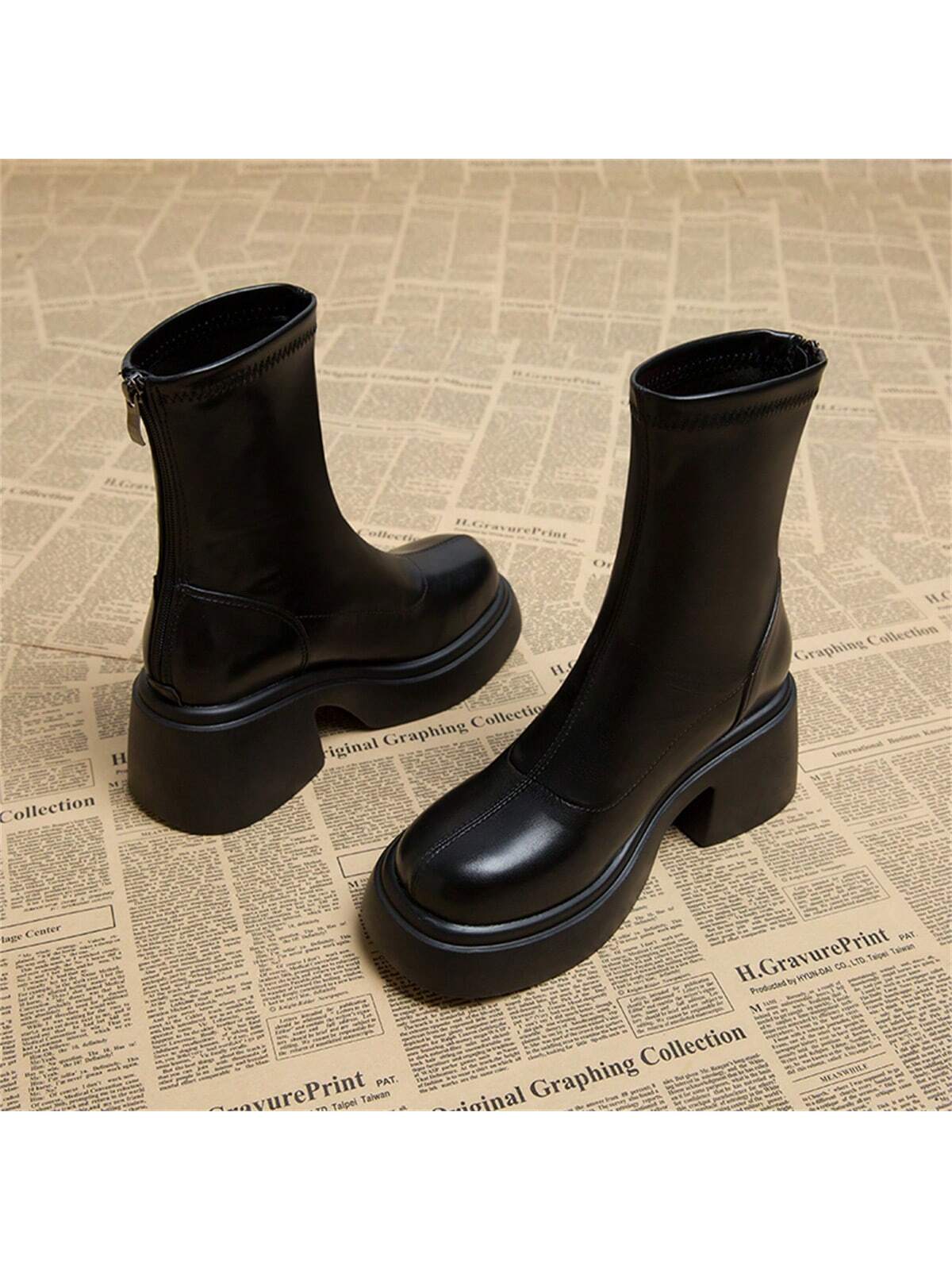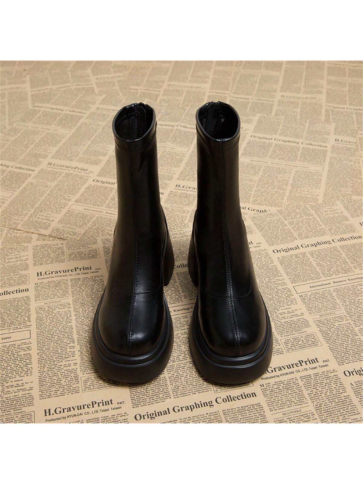 women French Style Chunky Heel Boots With Height-Boosting Thick Sole