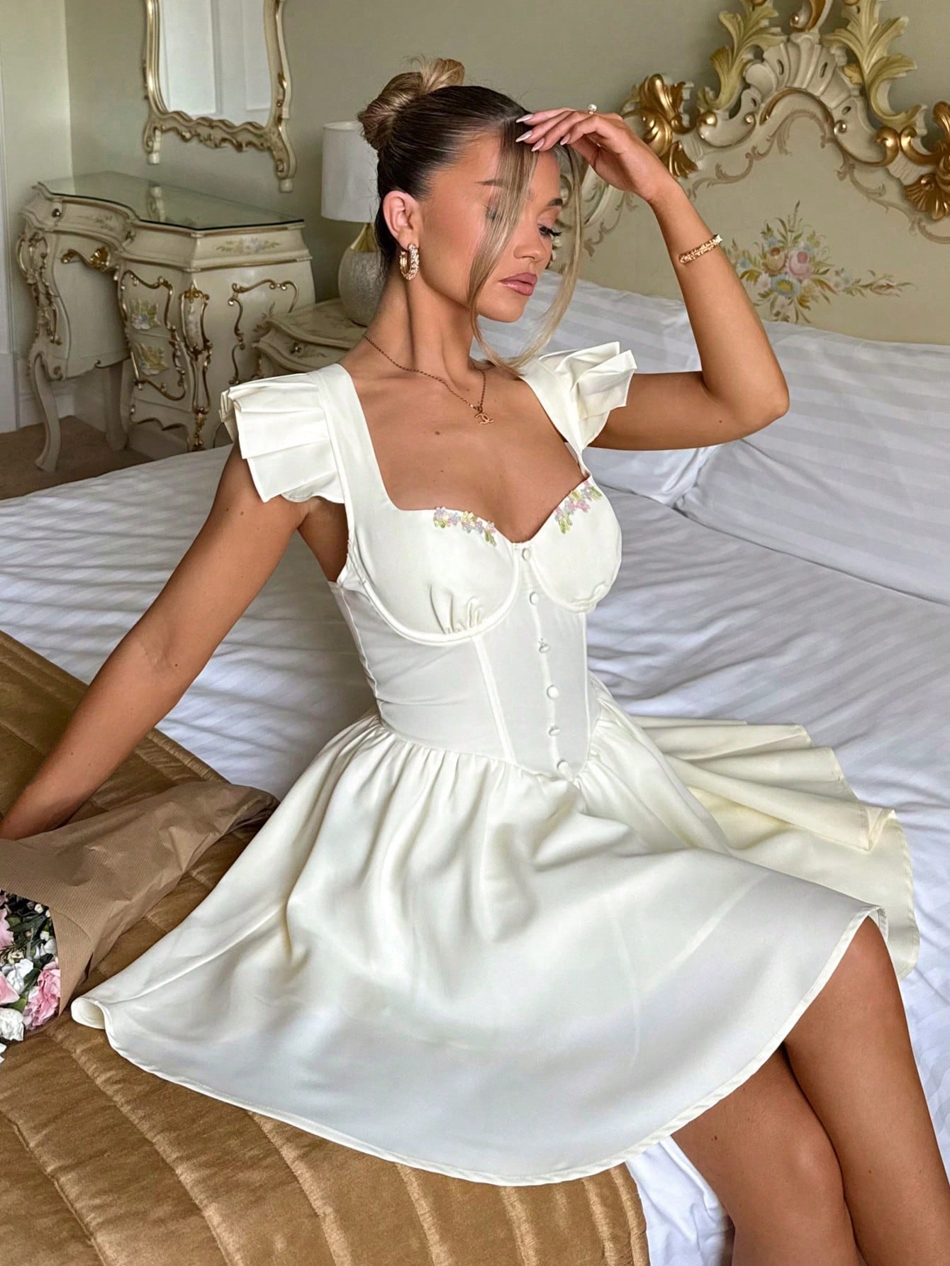 Glamine Women's Elegant Summer Ruffled Details Camisole Dress