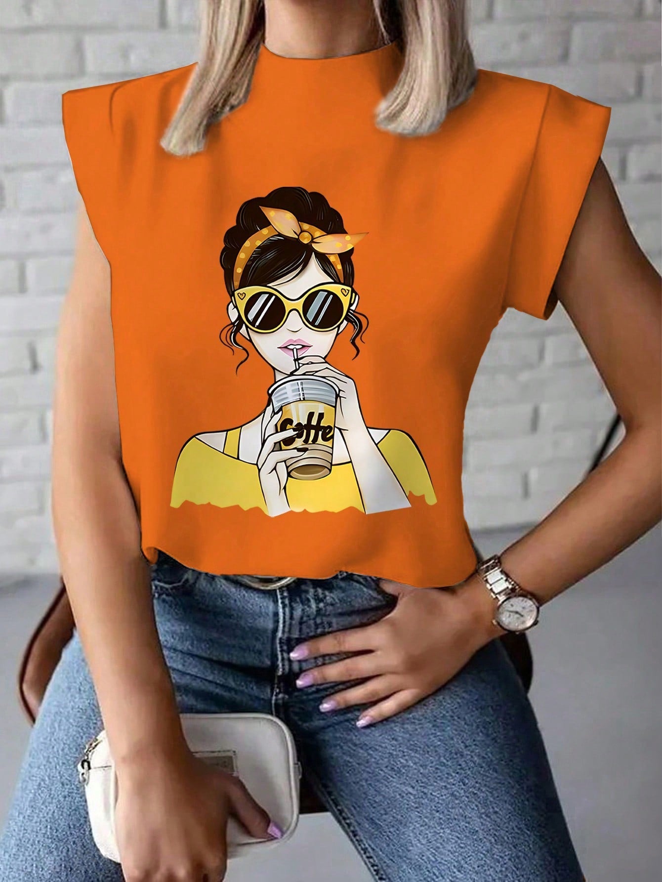 INAWLY Women Cartoon Girl Print Round Neck Short Sleeve Loose Casual T-Shirt