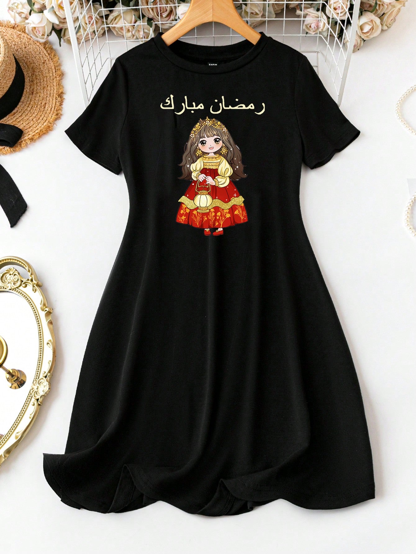 فستان LUNE متوسط الطول بأكمام قصيرة للنساء والفتيات بمقاسات كبيرة، مناسب لشهر رمضان