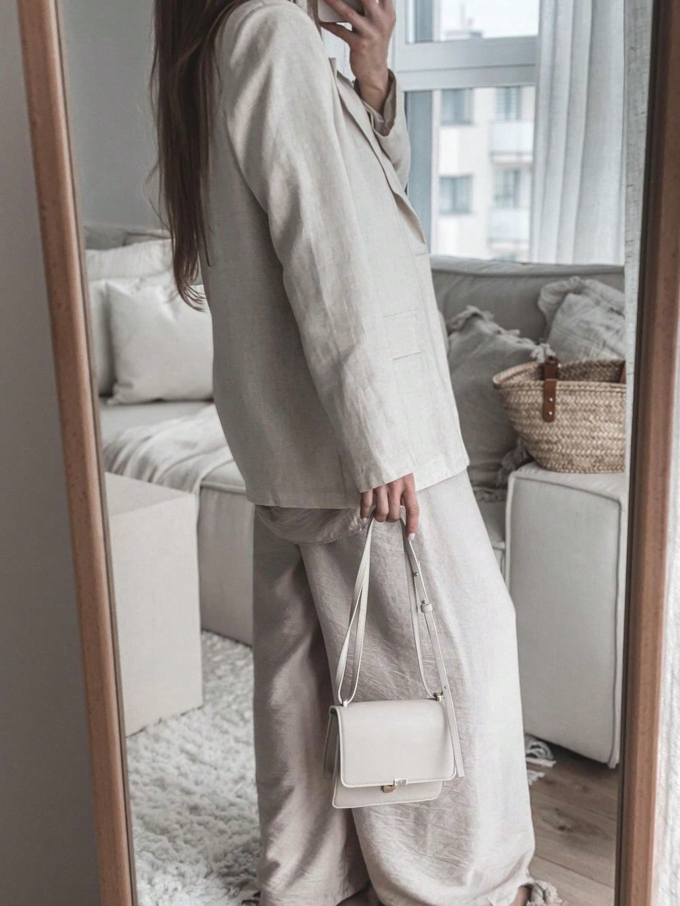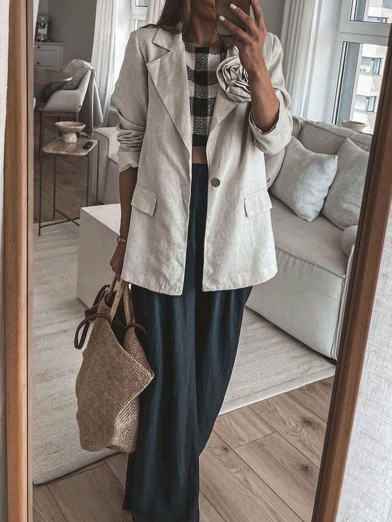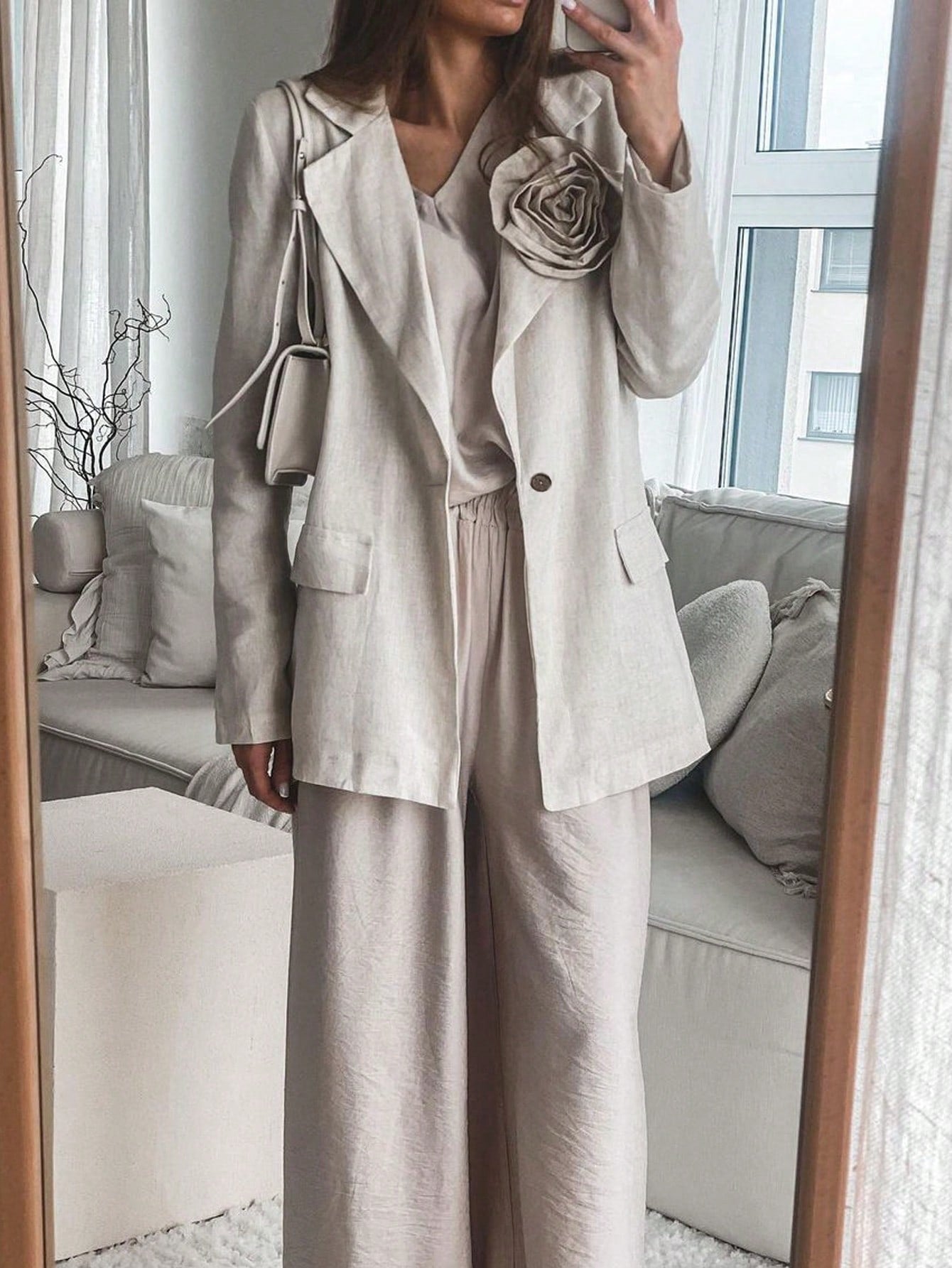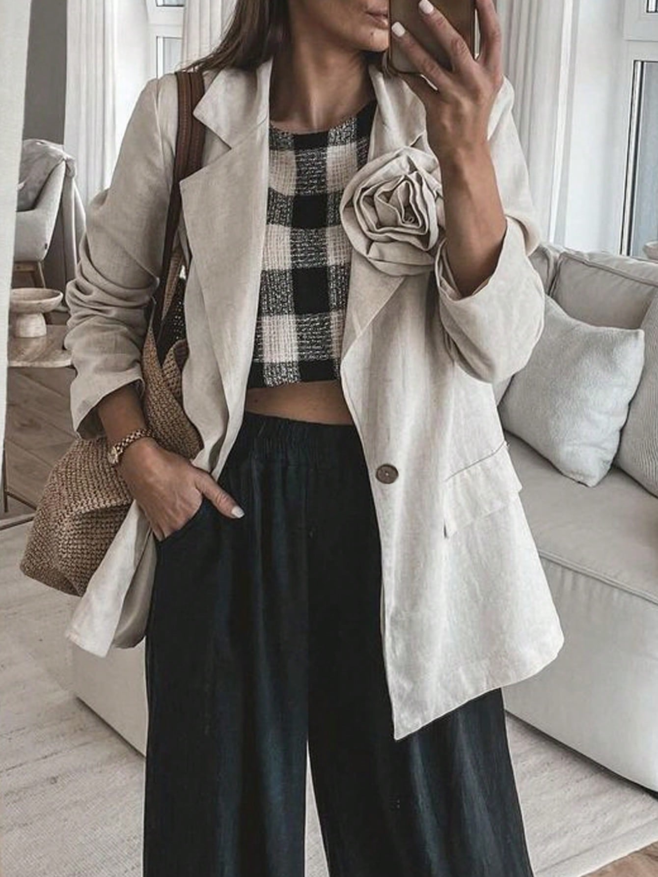 LUNE Spring/Summer Casual 3D Flower Decoration Linen Blazer Fall Cloth For Women