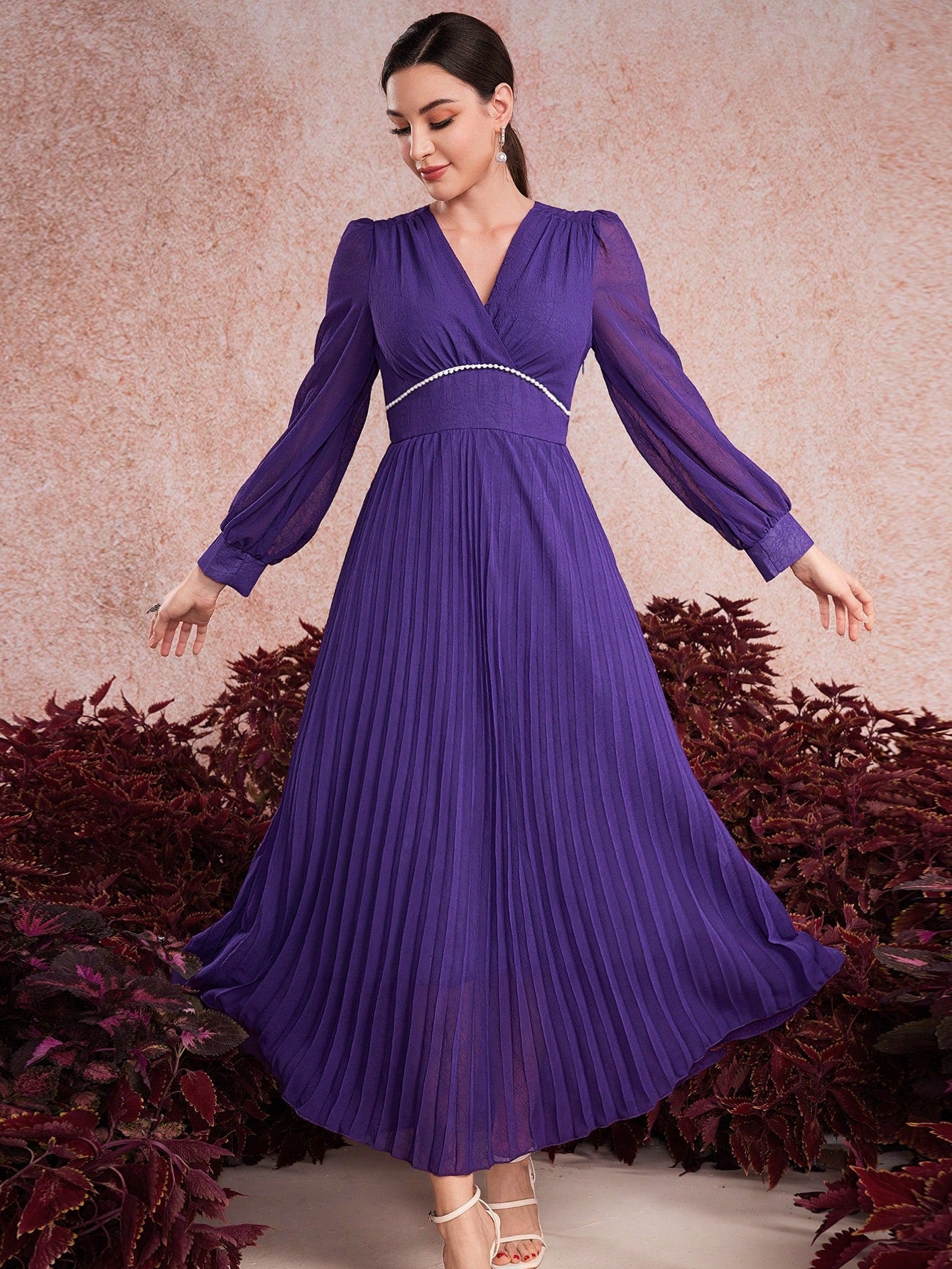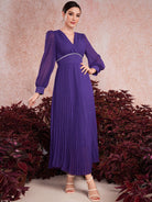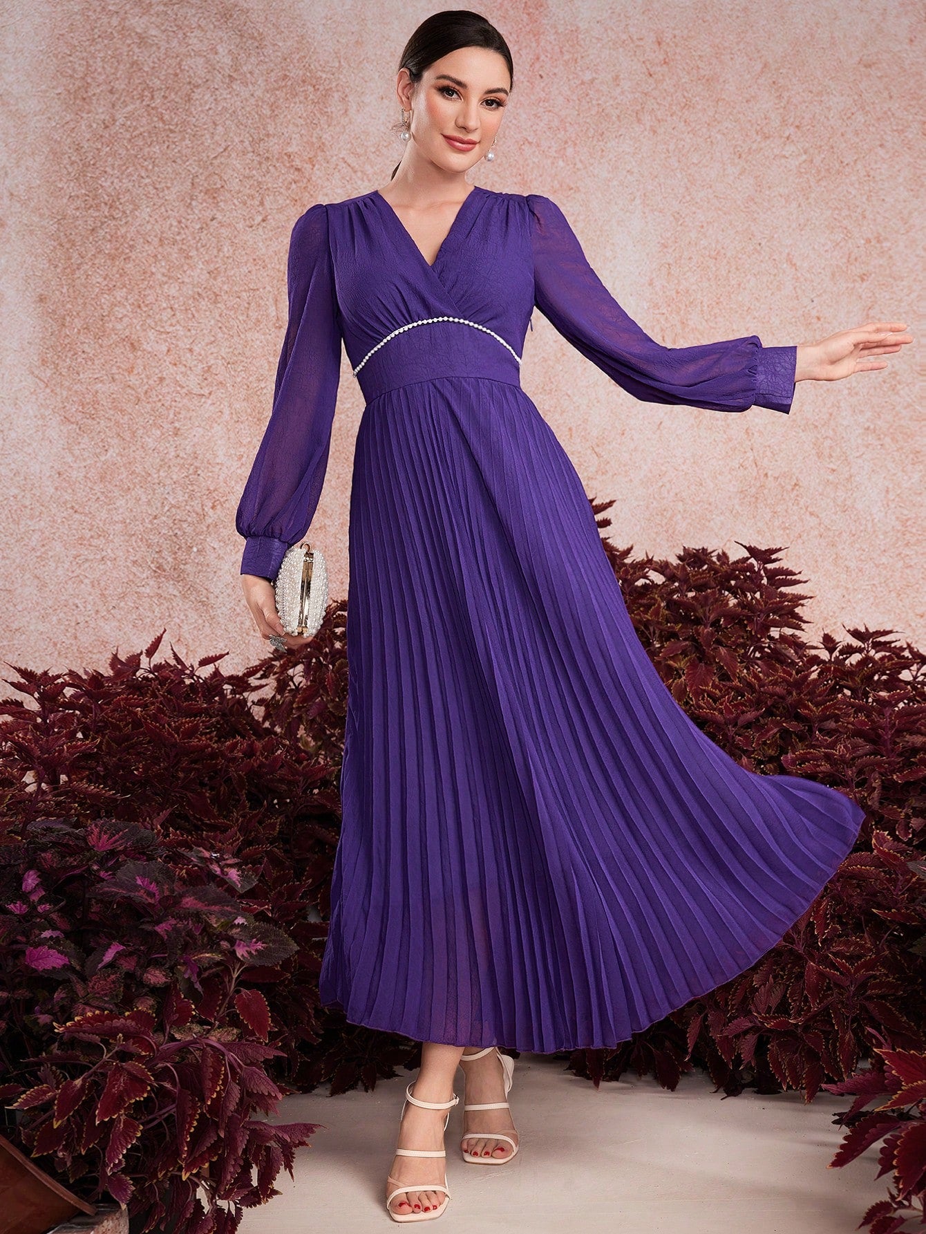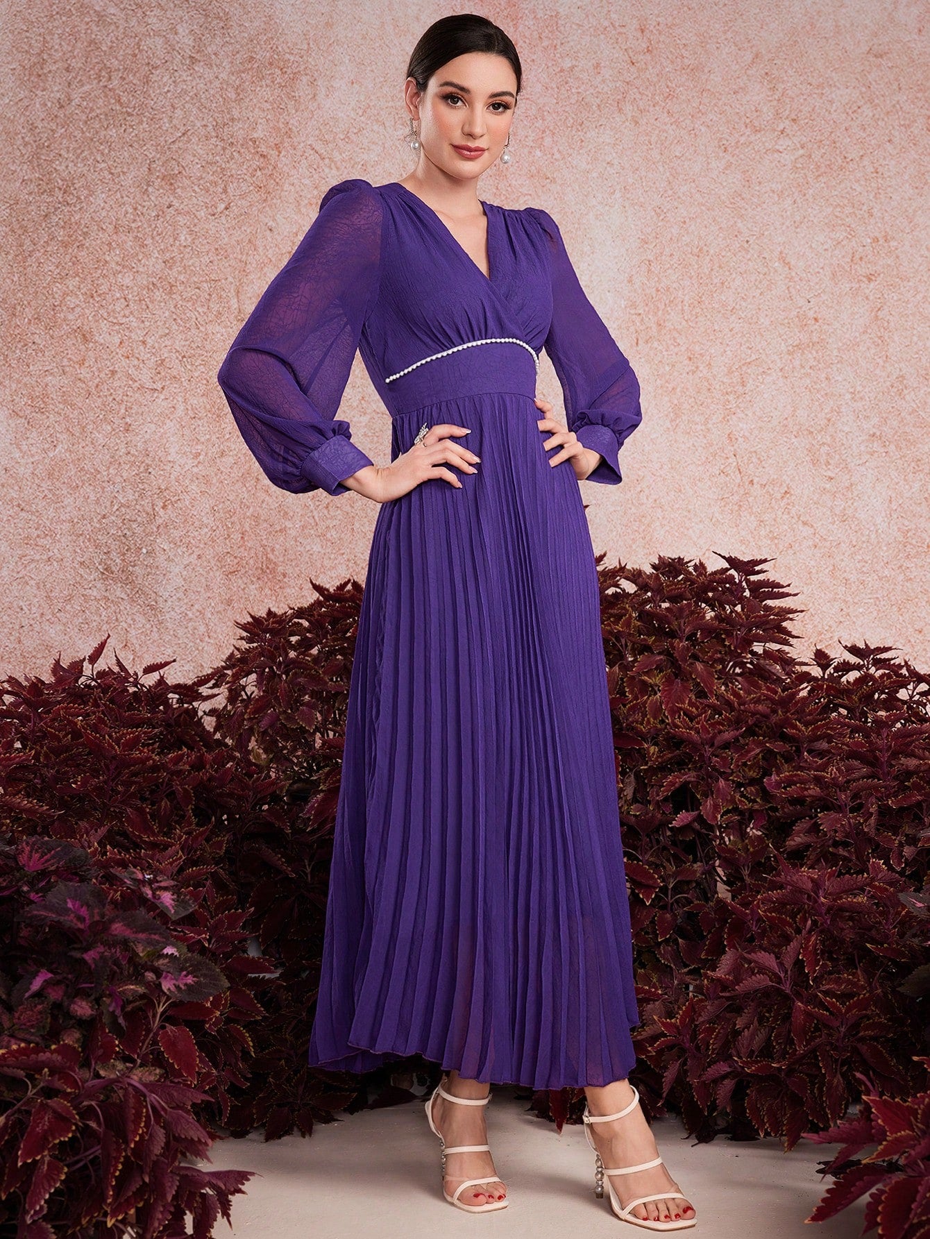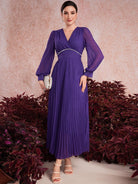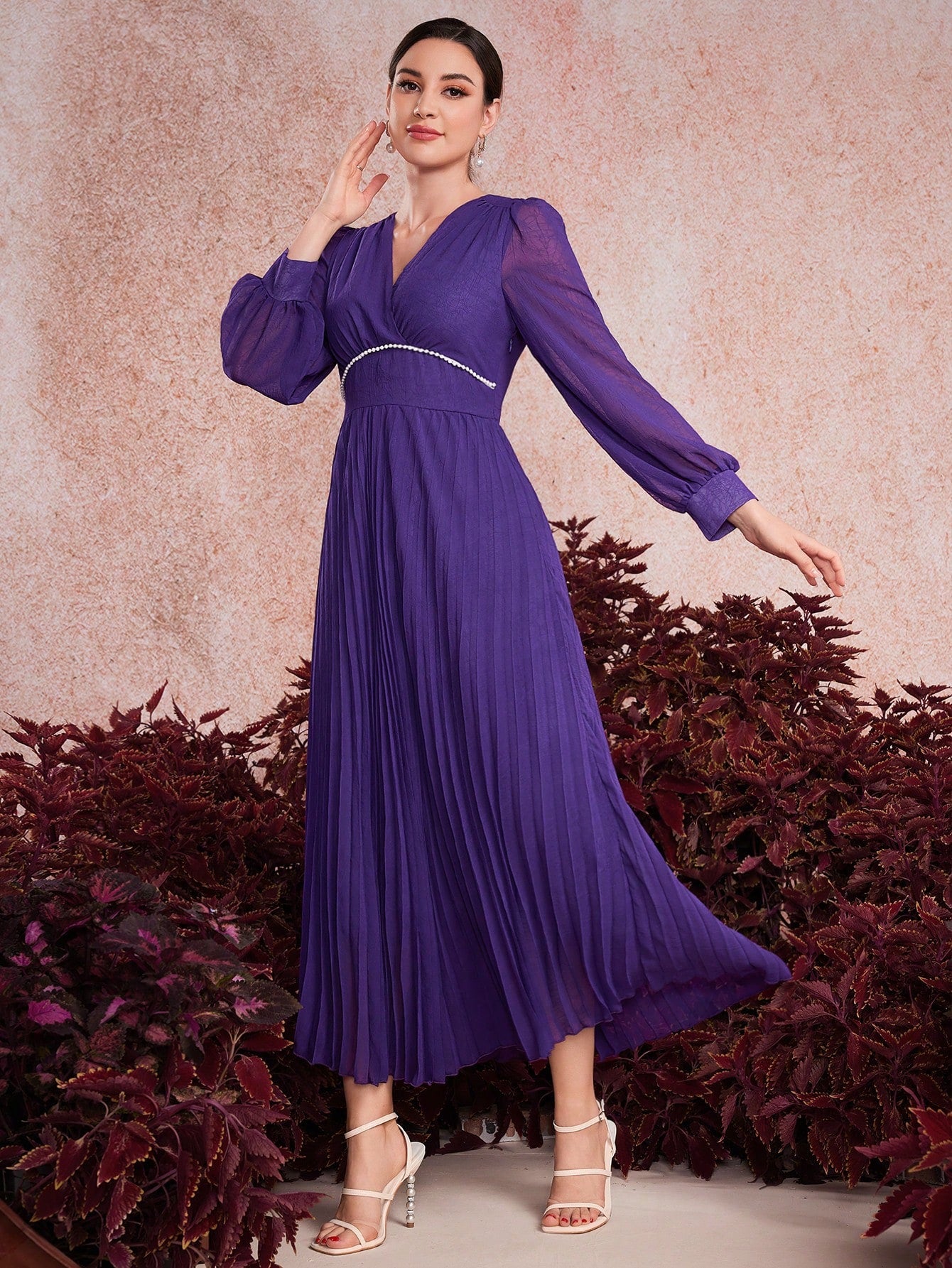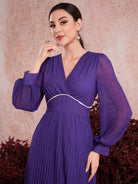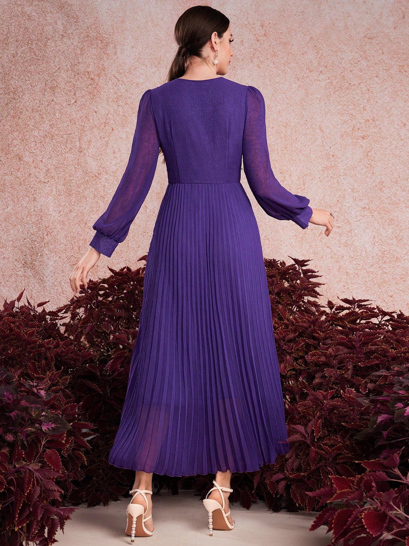 Modelyn Women's Puff Sleeve Waist-Press Pleated Dress
