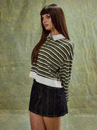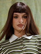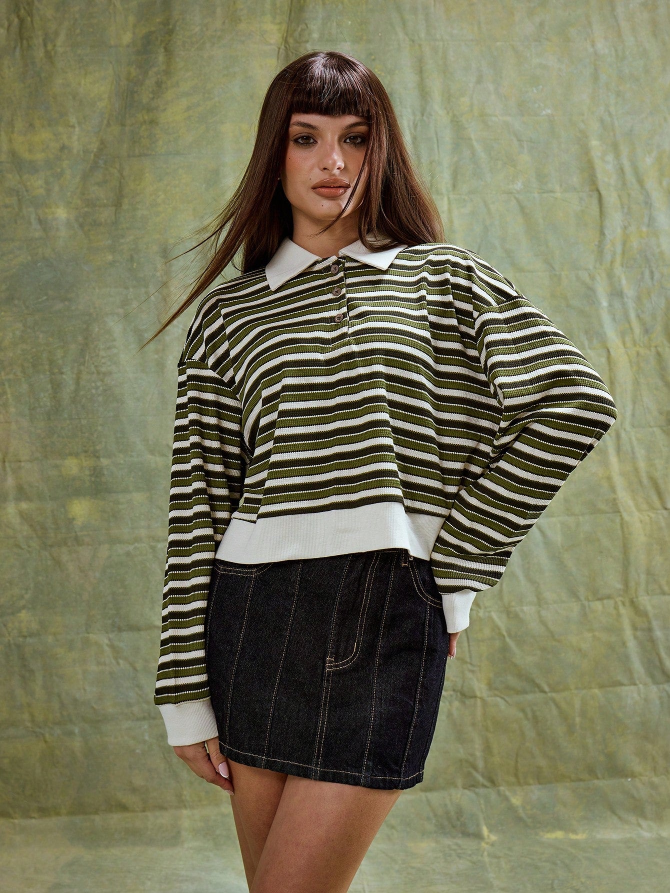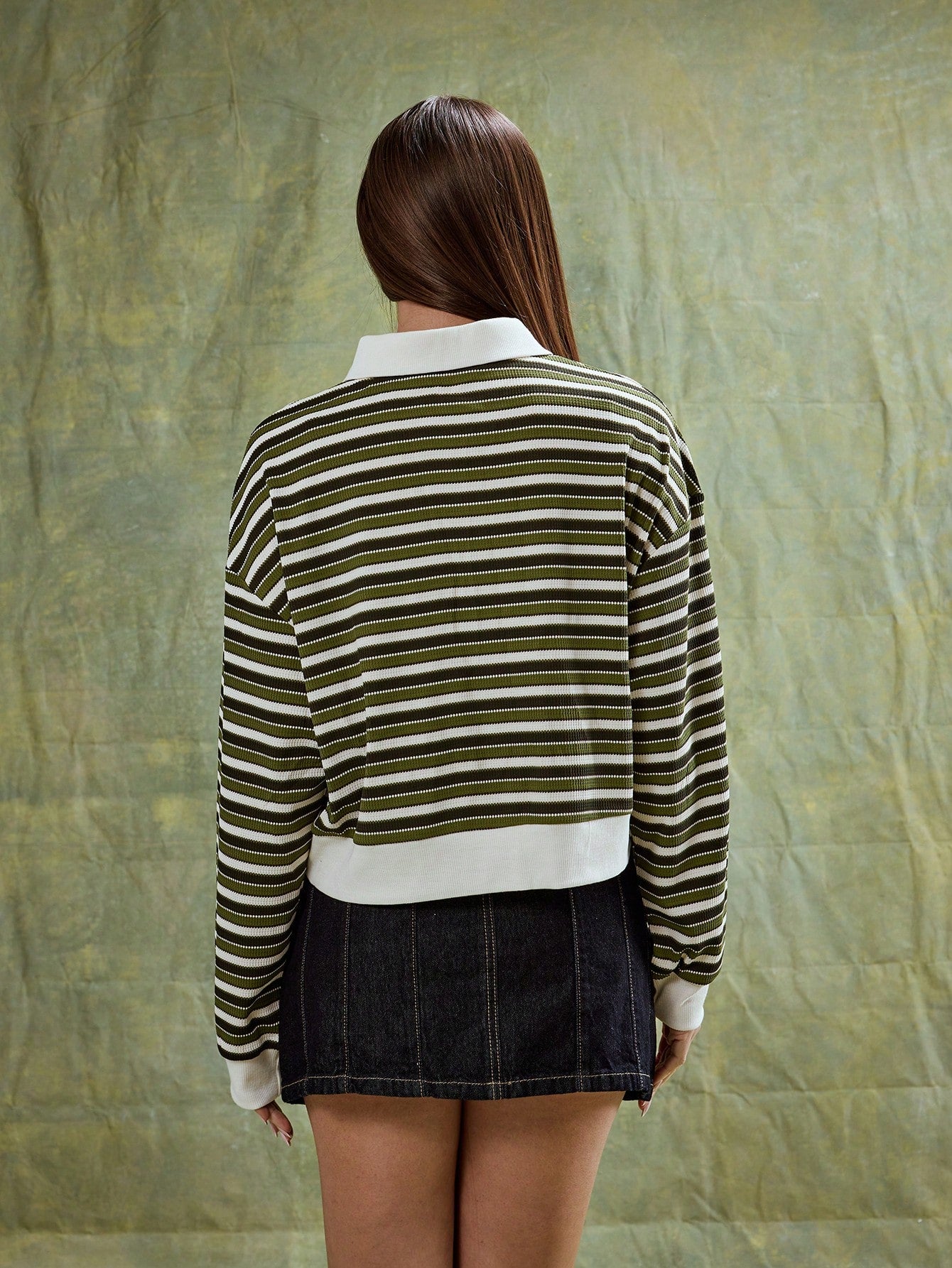 MUSERA Collared Striped Long Sleeve Top Spring Casual Summer
