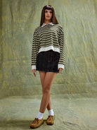 بلوزة موسيرا مخططة بأكمام طويلة وياقة، مناسبة للربيع والصيف