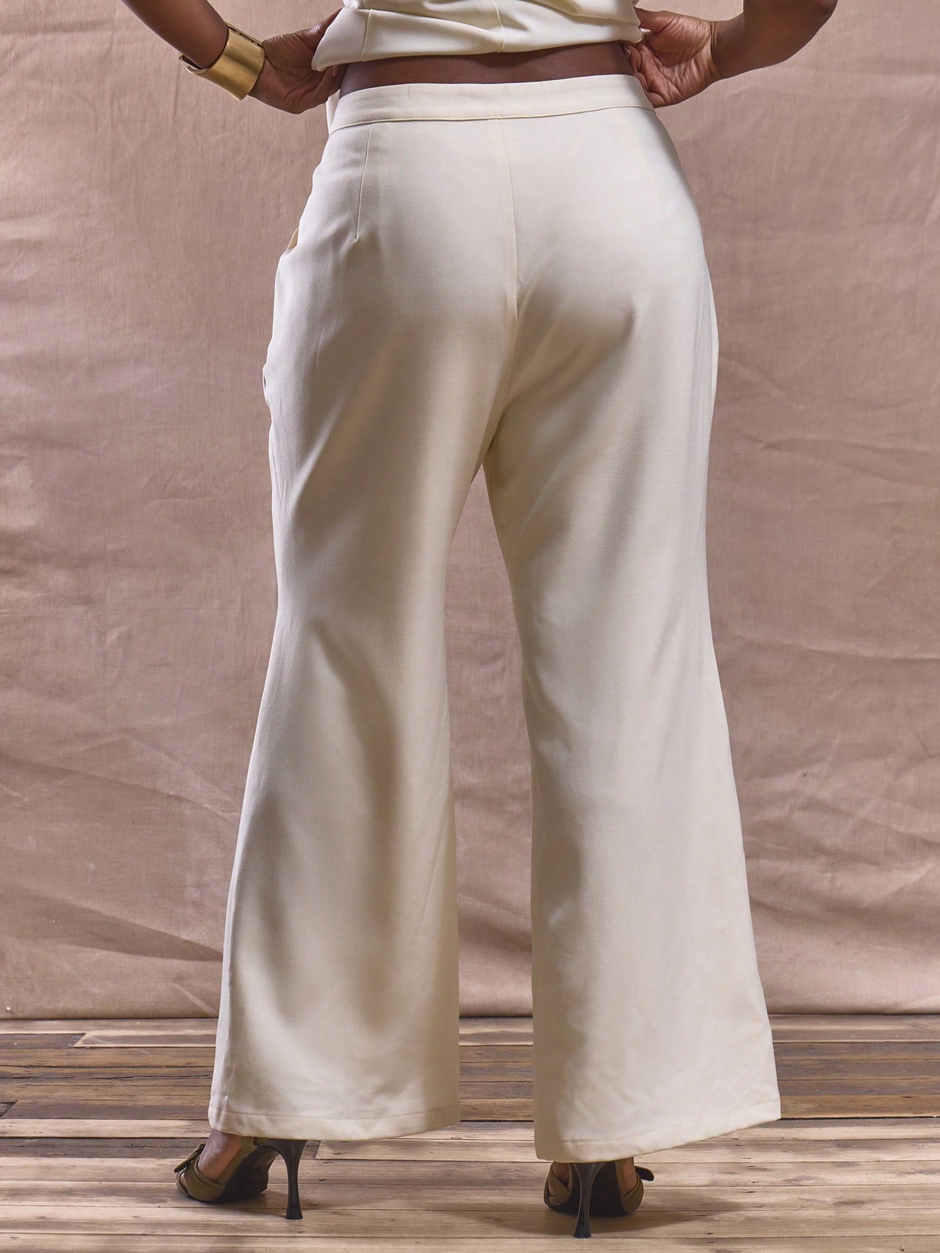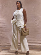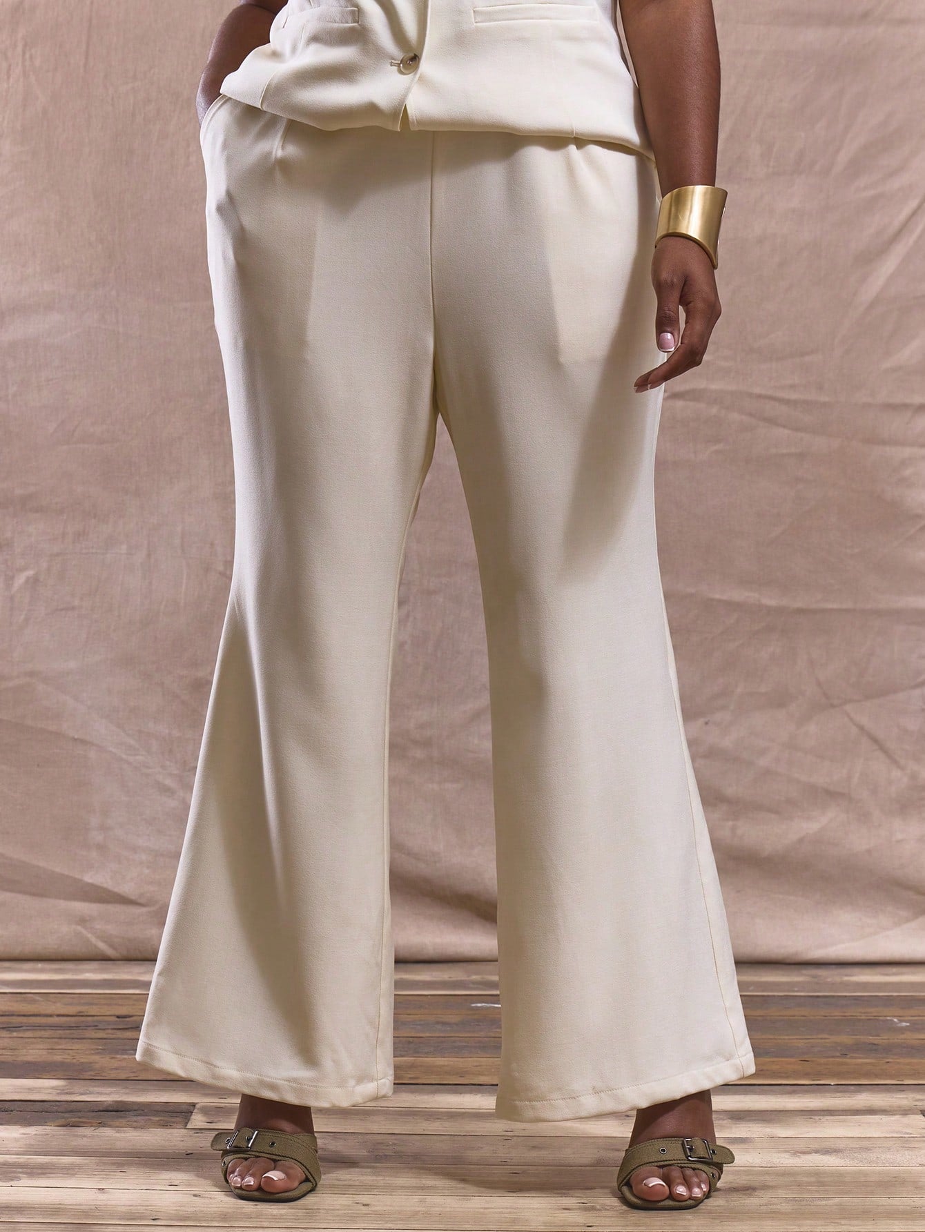 MUSERA Plus Size Mid Rise Fitted Flared Trousers Bottom Only Spring Summer Cute Elegant Vacation Business